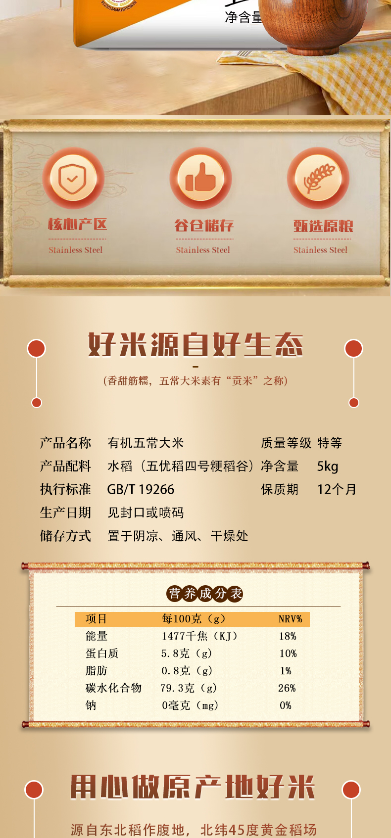 【2000积分+69元】光辉穗月 五常大米 5kg/袋 清白透亮粒粒饱满
