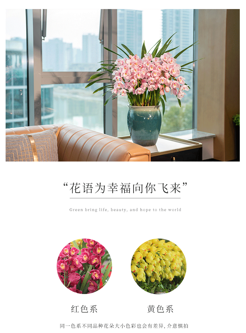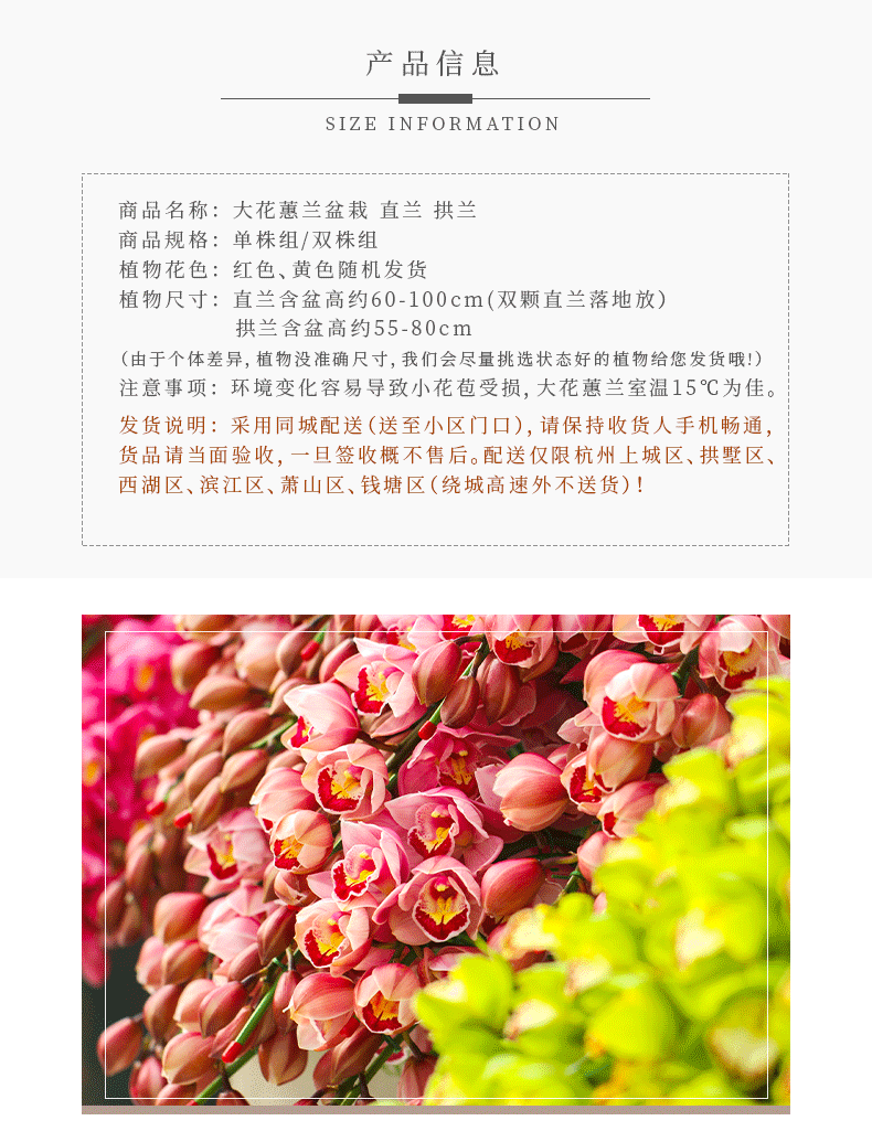 传化大花蕙兰盆栽,直兰拱兰,(红色和黄色默认随机发货,有喜欢色可备注或联系客服)