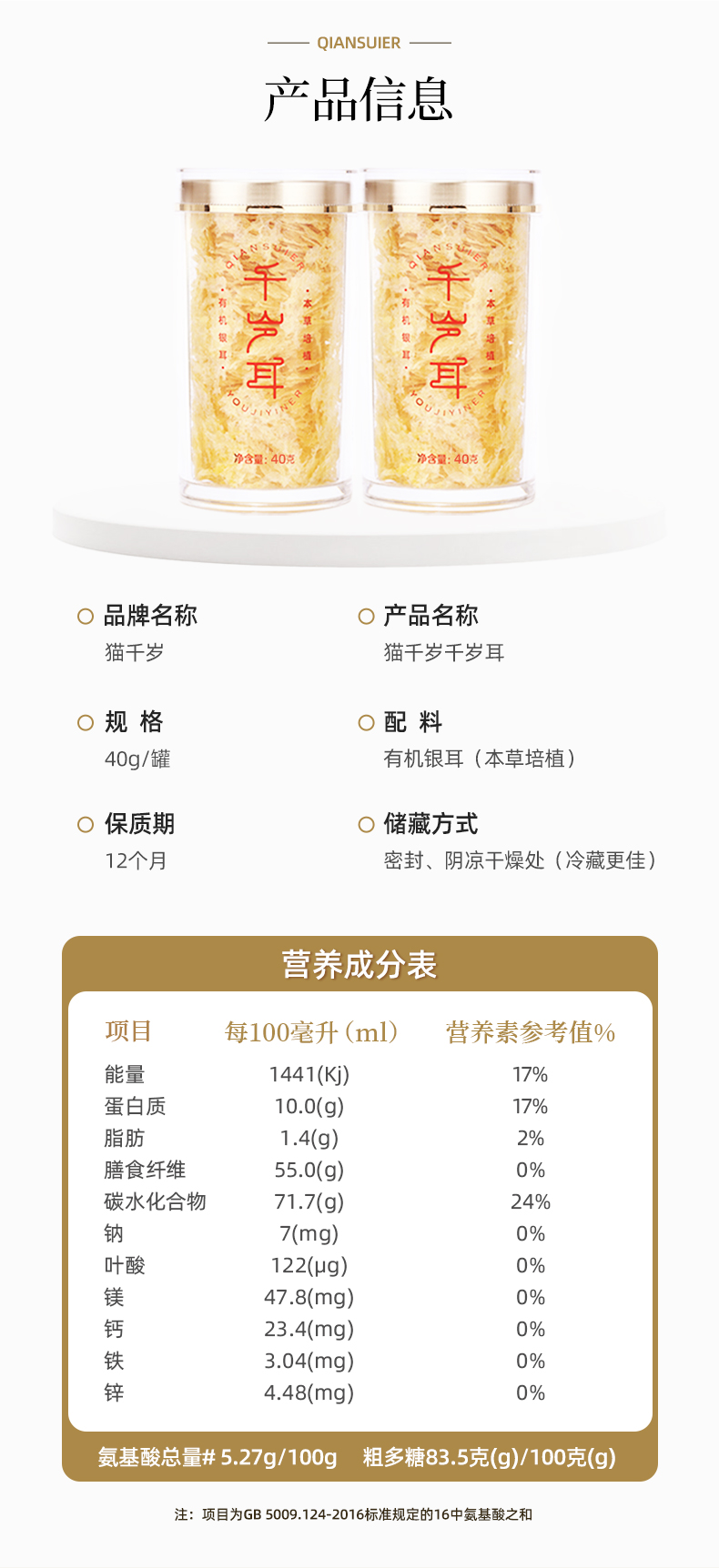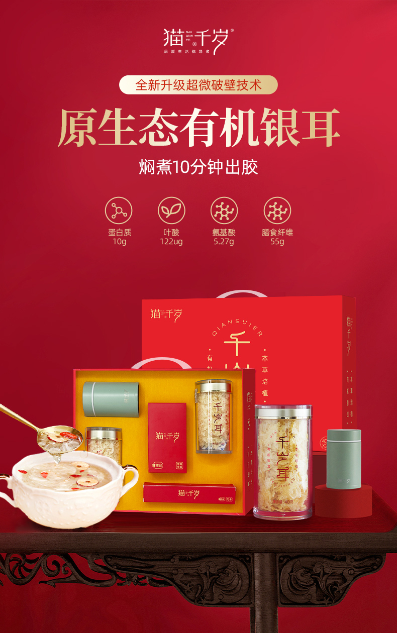 【规格2】千岁耳快递箱款:有机千岁耳40g/罐*6(薄罐)+50g银耳伴侣2包