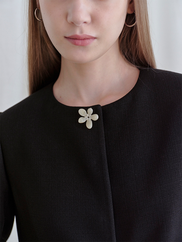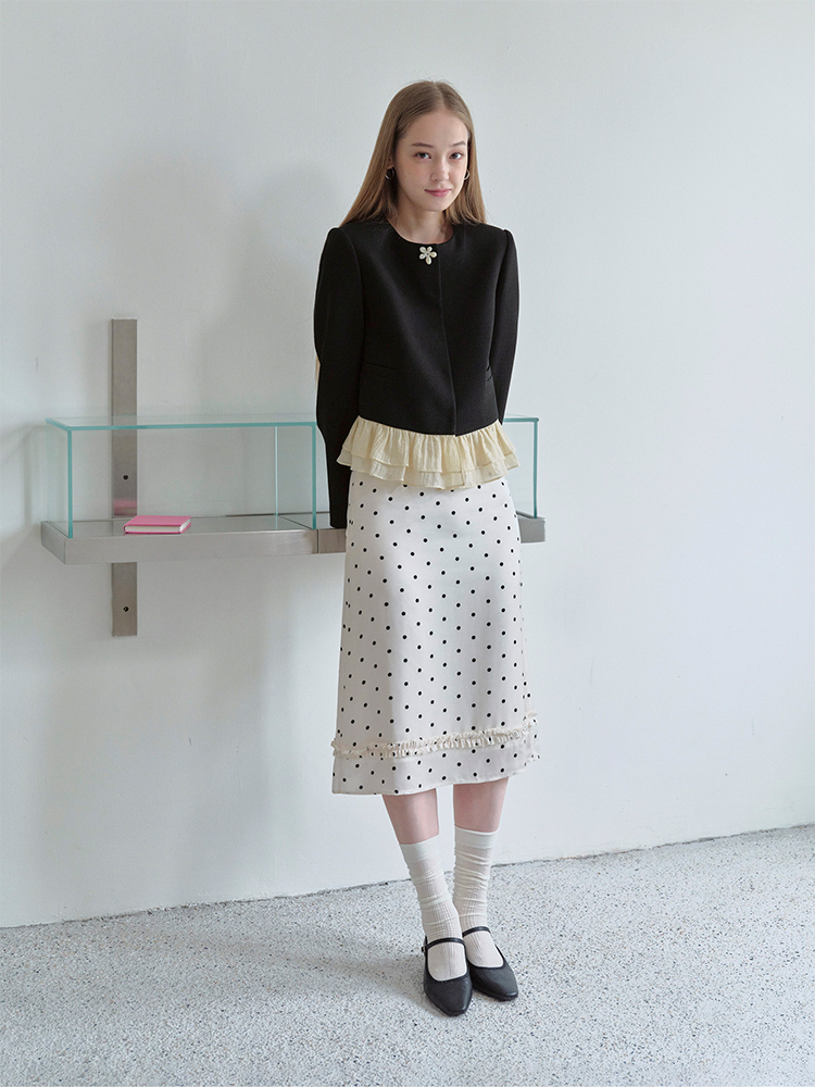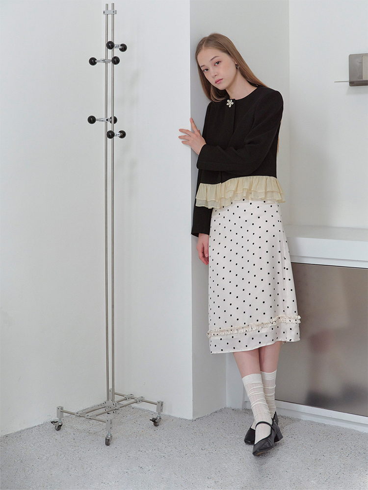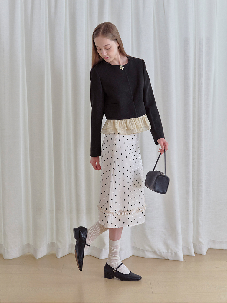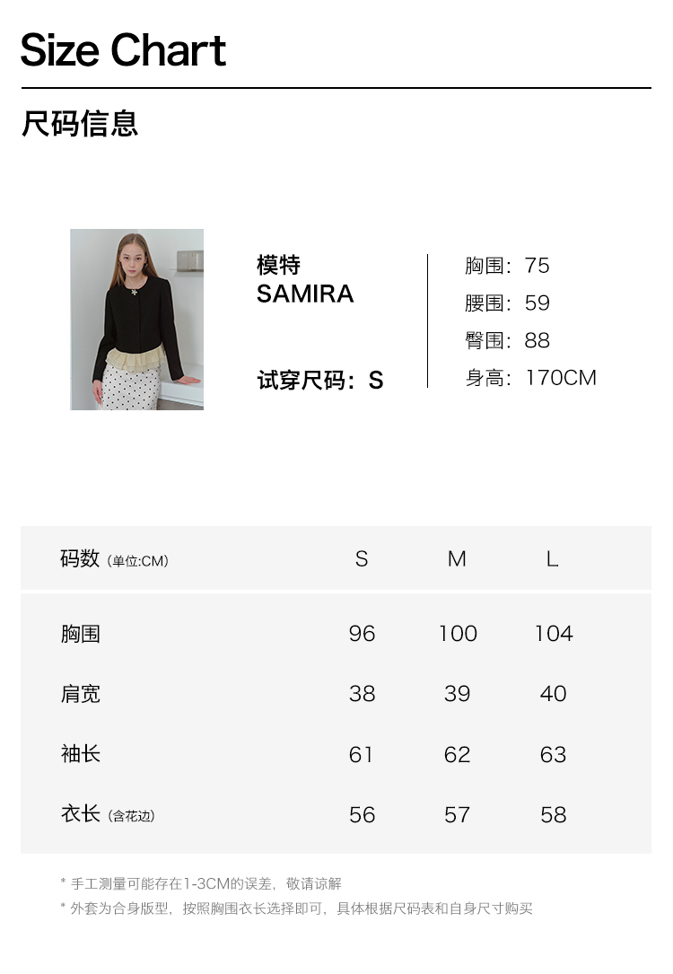ForPoem 现货 25/FW原创设计花朵装饰荷叶边拼色醋酸短款小香风外套