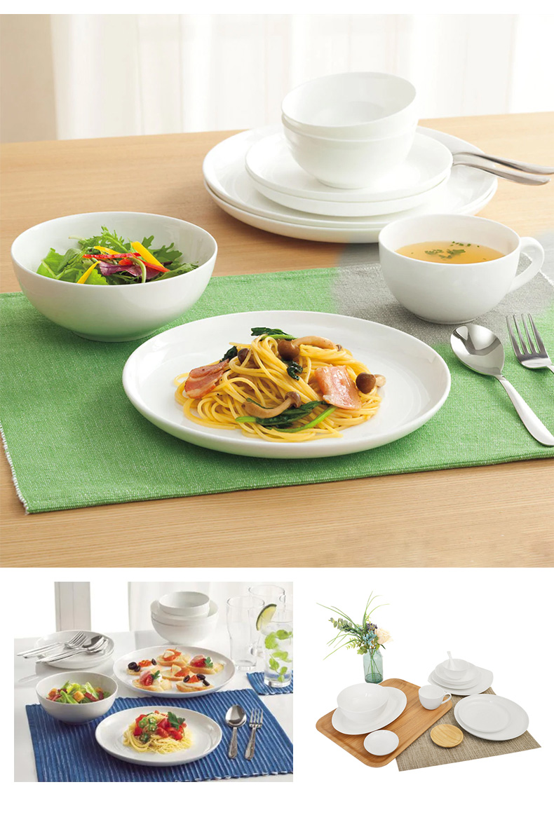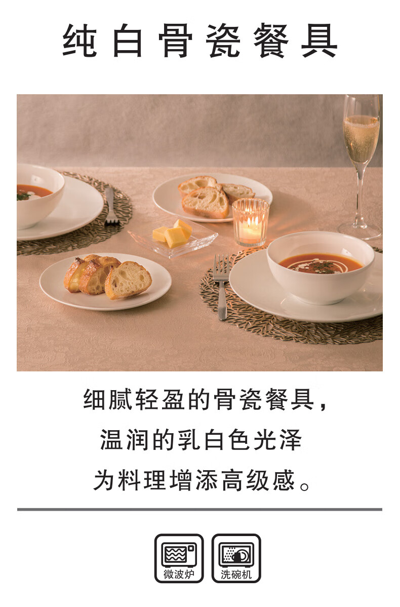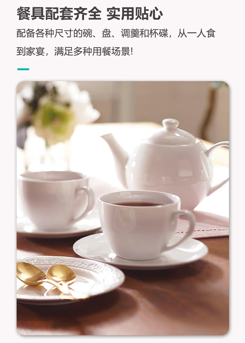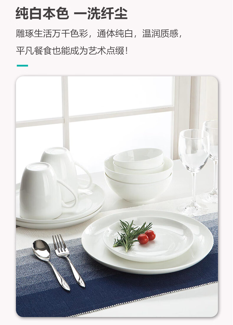 现代简约碗碟盘子圆盘汤勺纯白骨瓷系列餐具套装