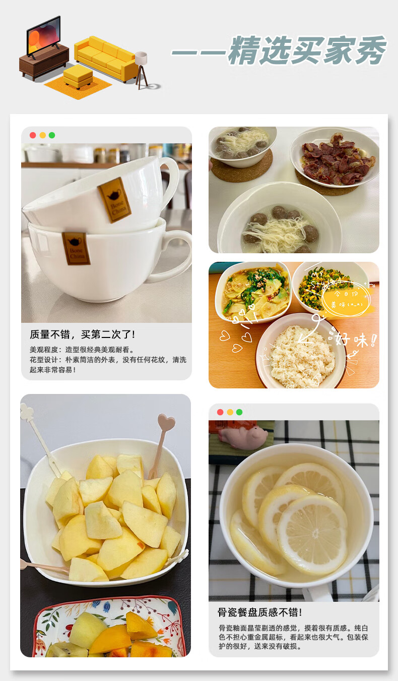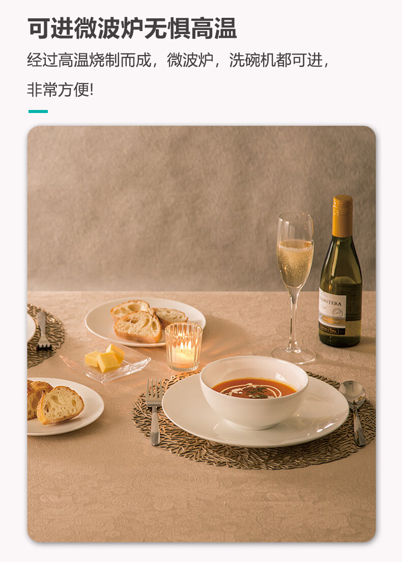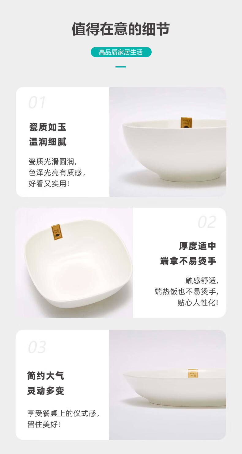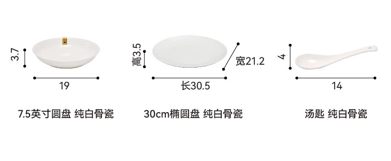 现代简约碗碟盘子圆盘汤勺纯白骨瓷系列餐具套装