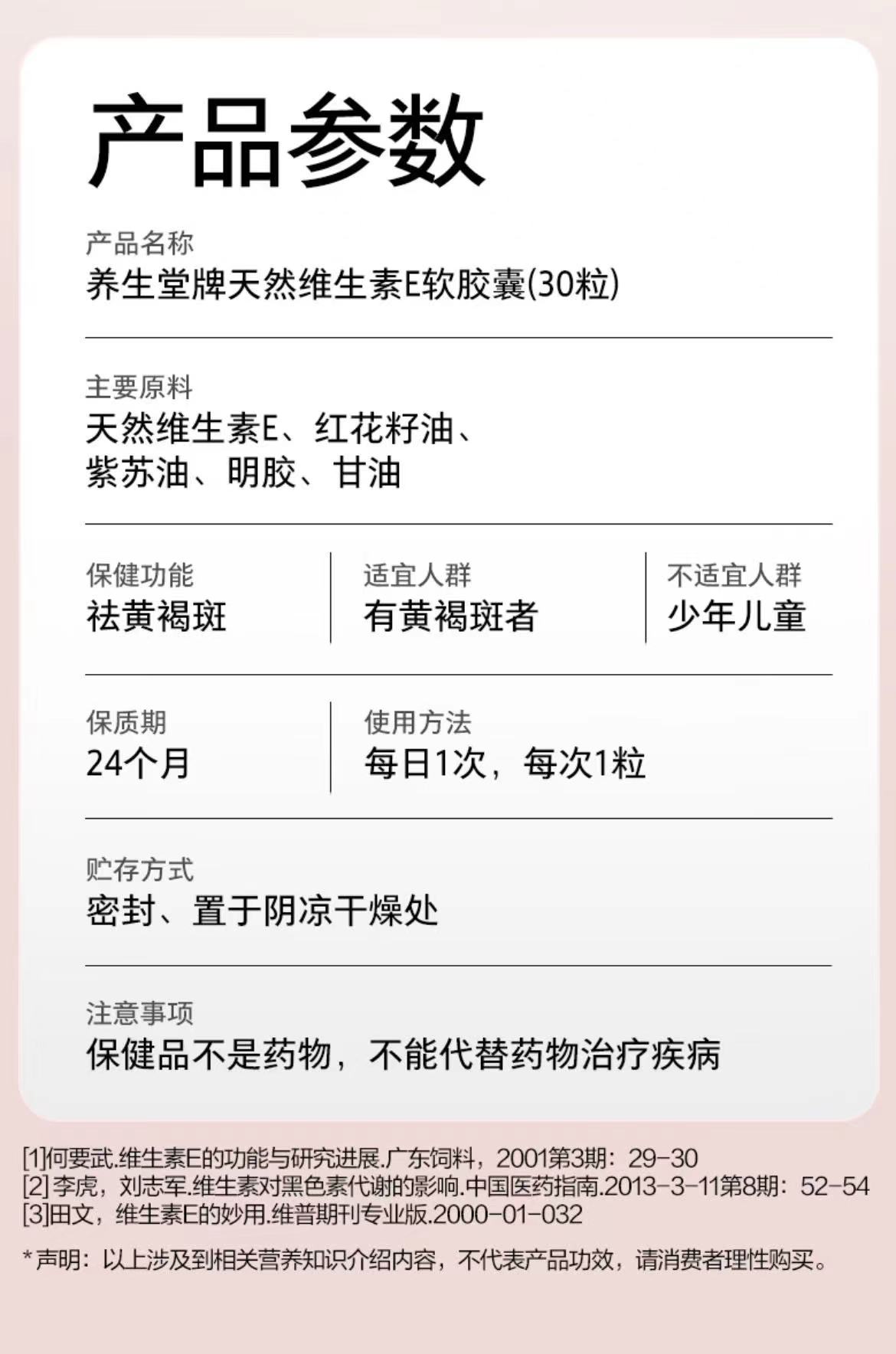 买一送一💅【养生堂VE/30粒装】内调护肤,素颜都是白月光,小小一瓶出门也方便携带