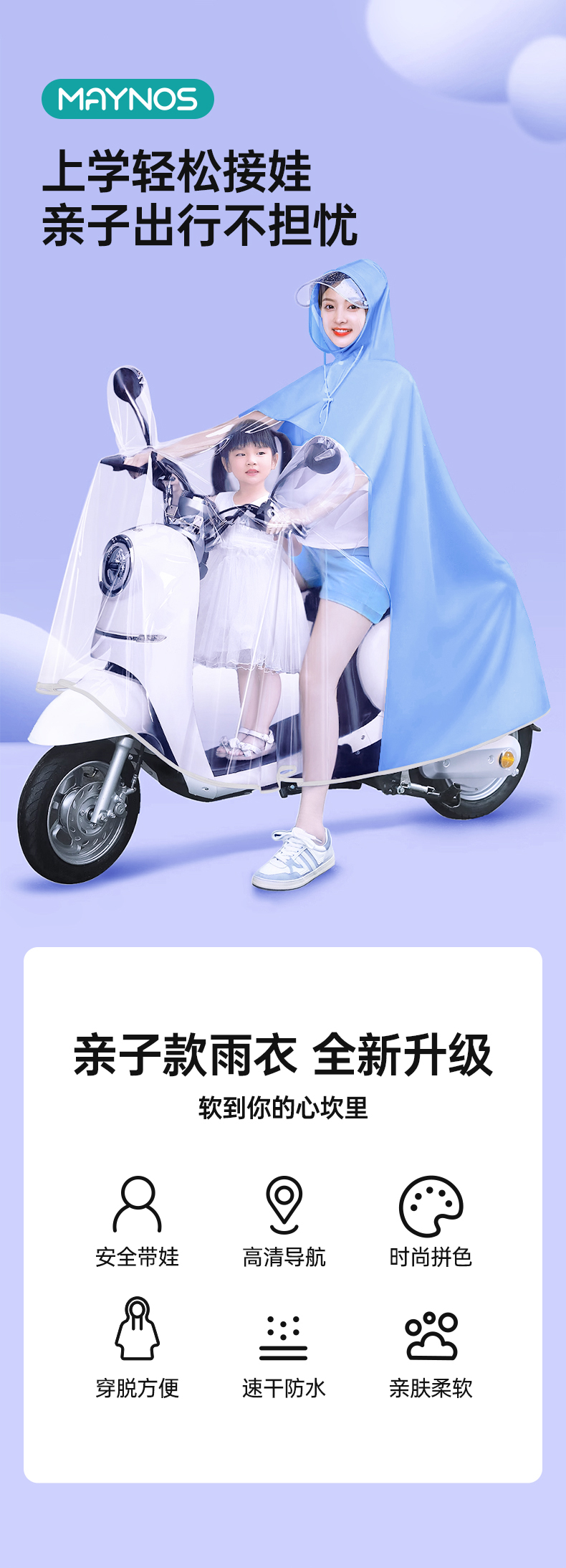 【加大加宽无惧风雨】MAYNOS电动车亲子共用雨衣