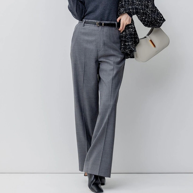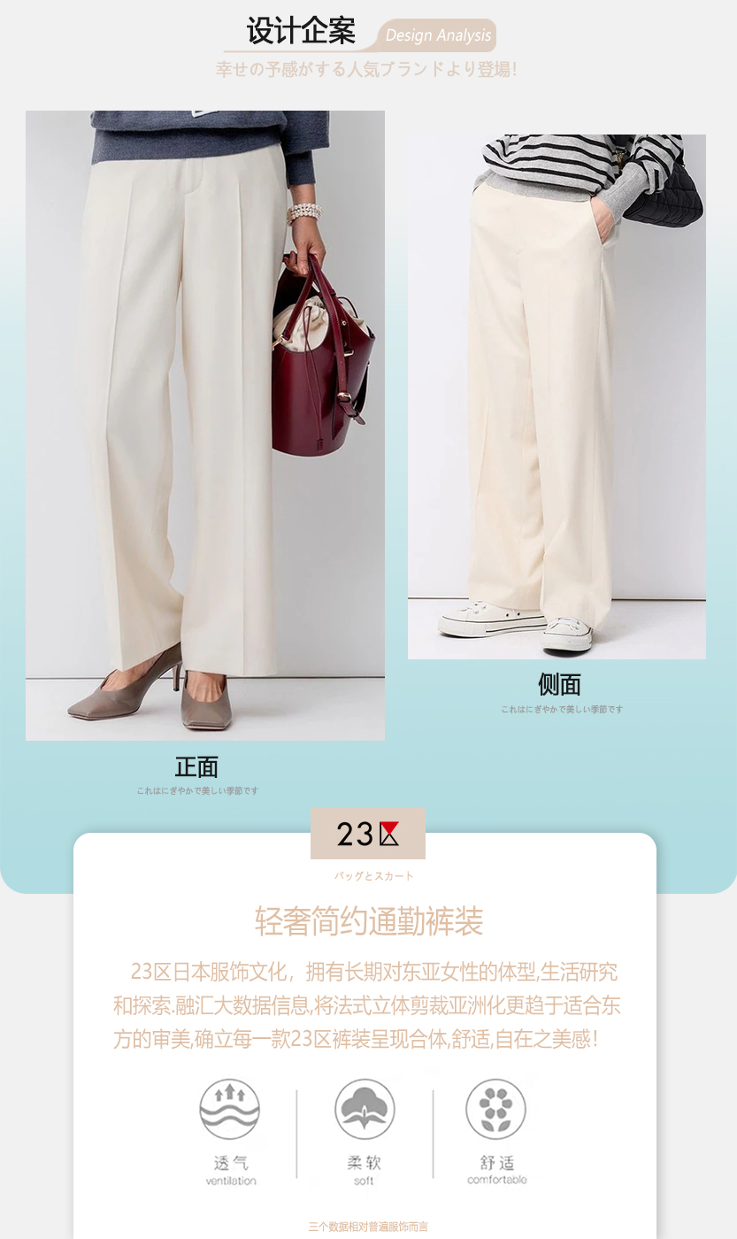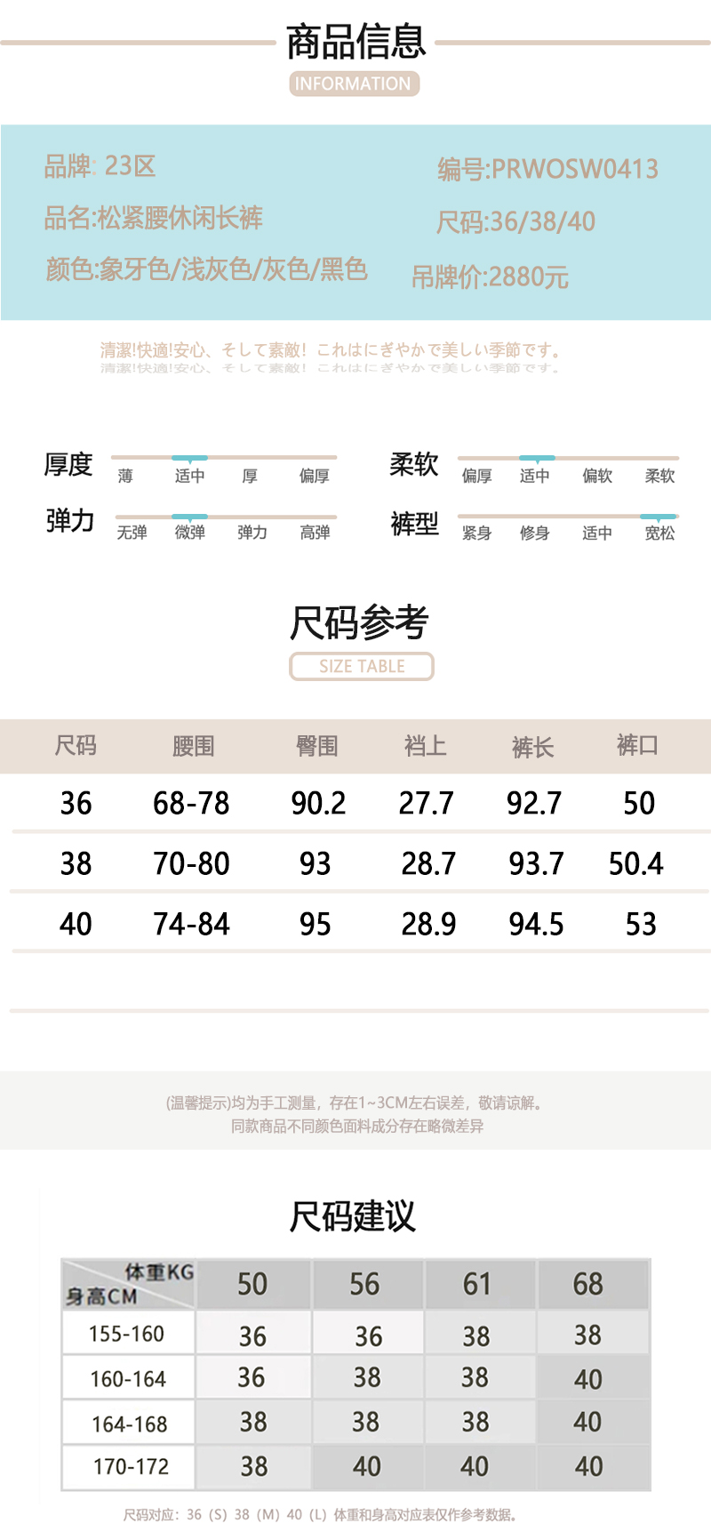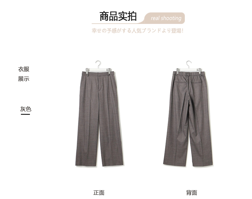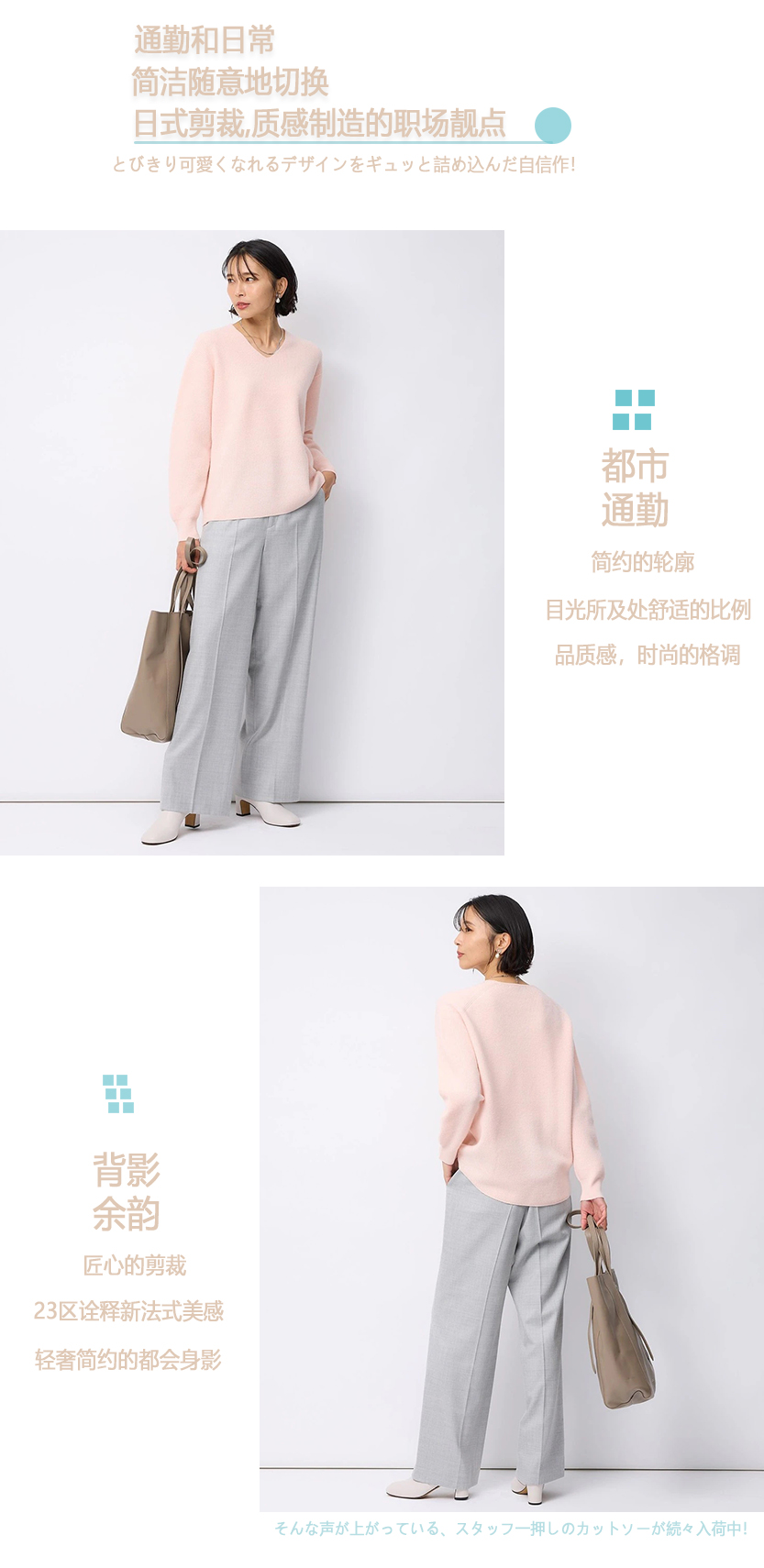 23区日系春季通勤羊毛混纺半松紧腰直筒长裤休闲阔腿裤商场同款