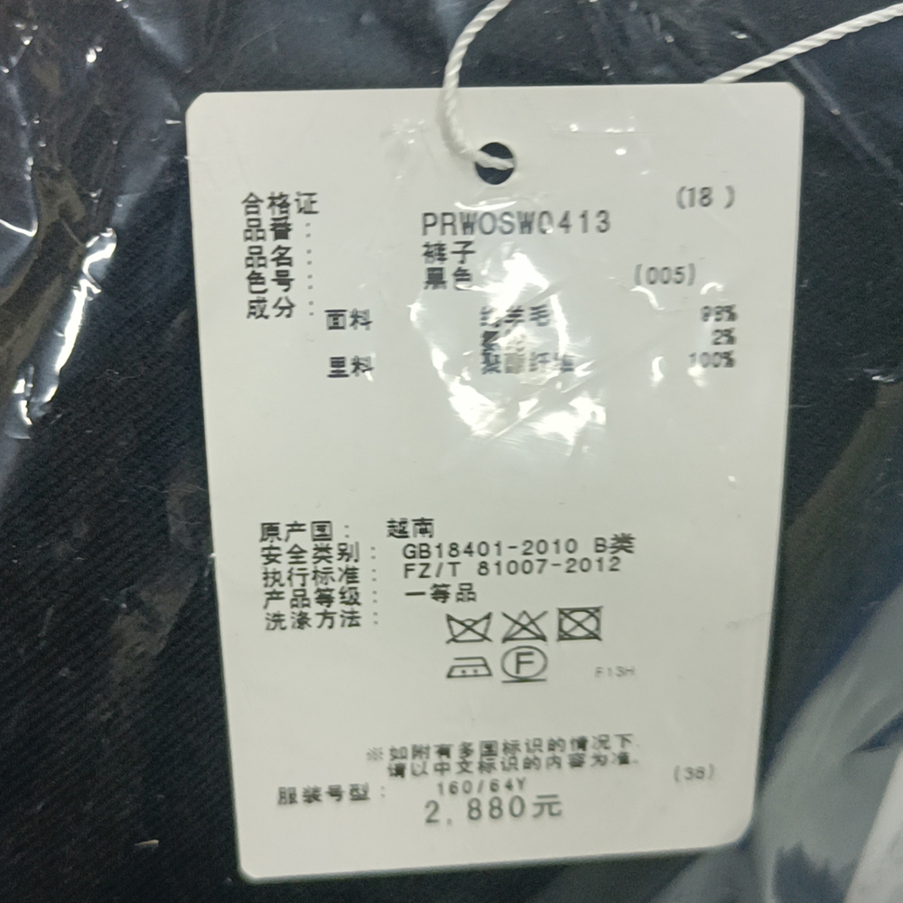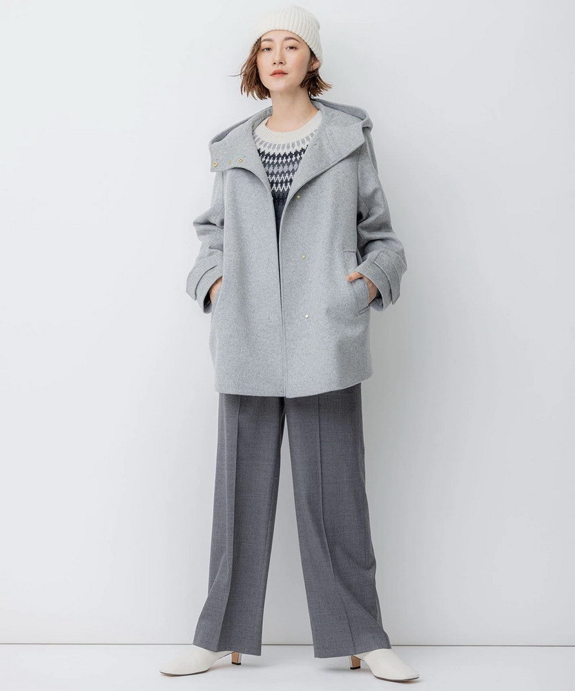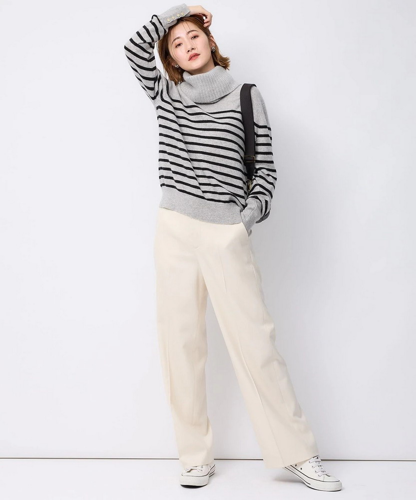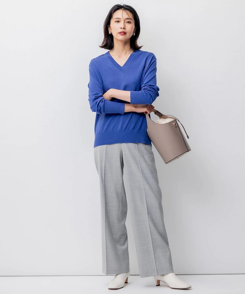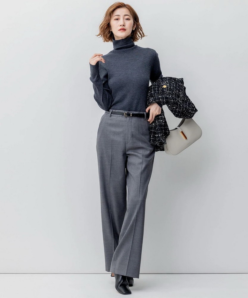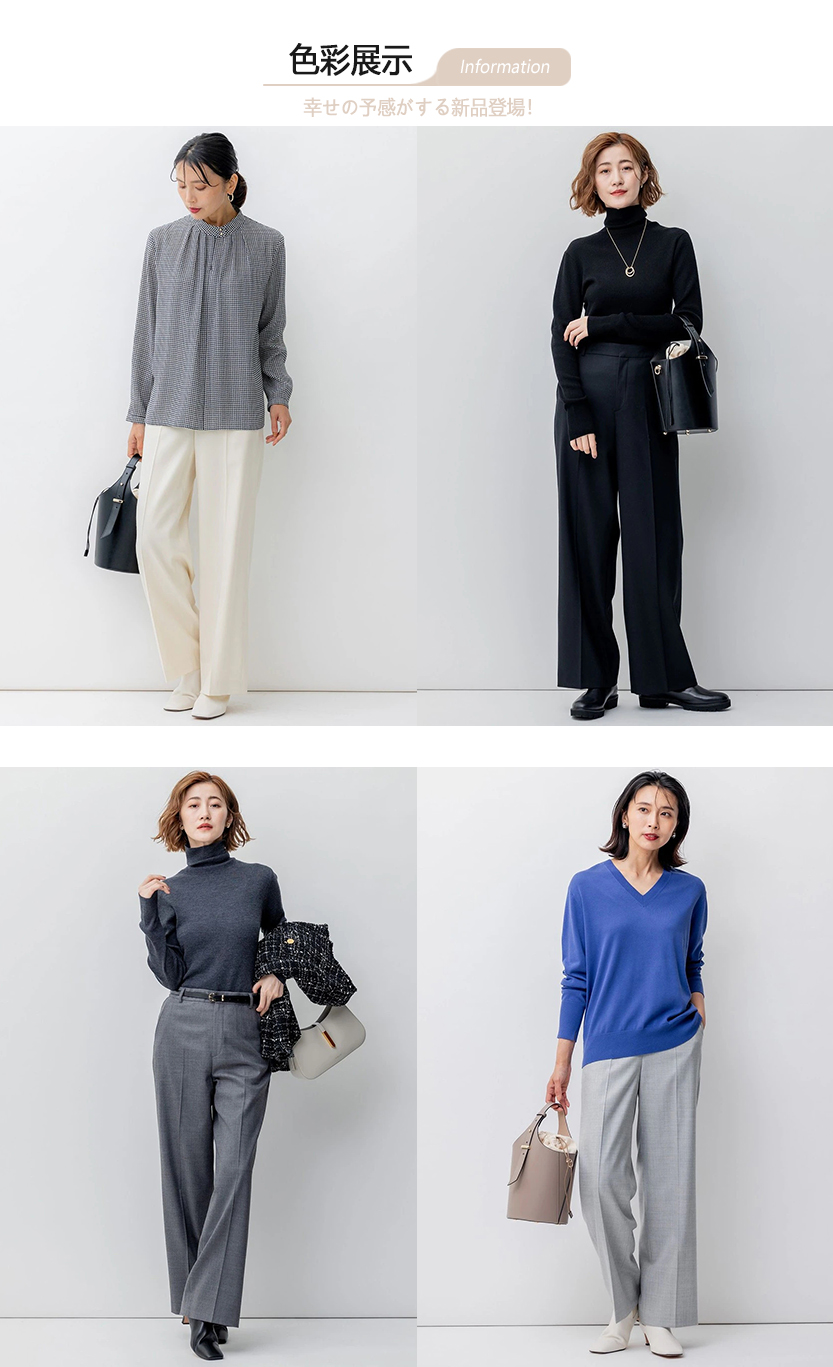 23区日系春季通勤羊毛混纺半松紧腰直筒长裤休闲阔腿裤商场同款