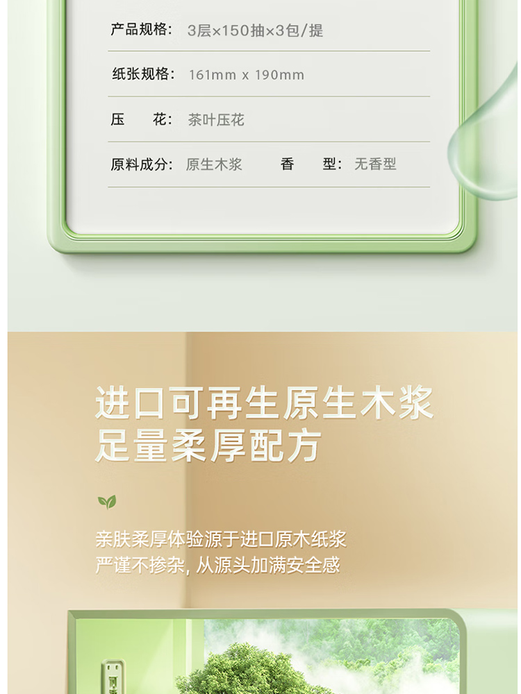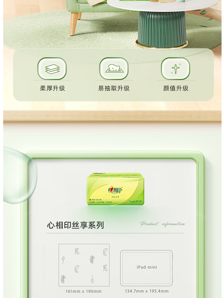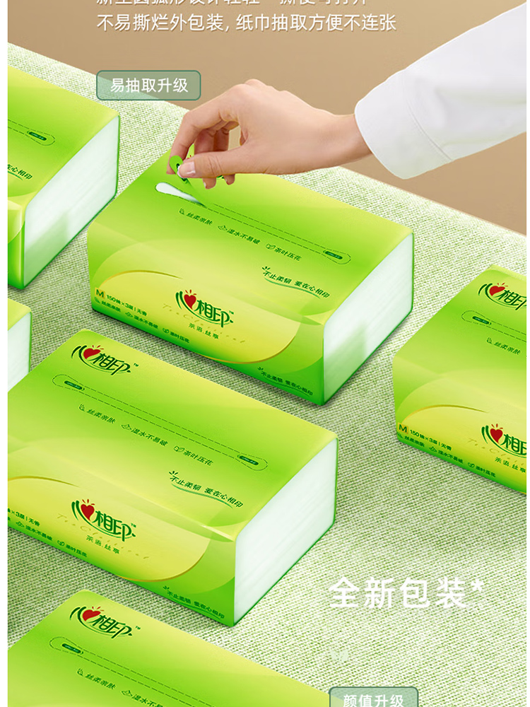 DT32150 心相印茶语丝享系列150抽三层塑装纸面巾 4提 12包