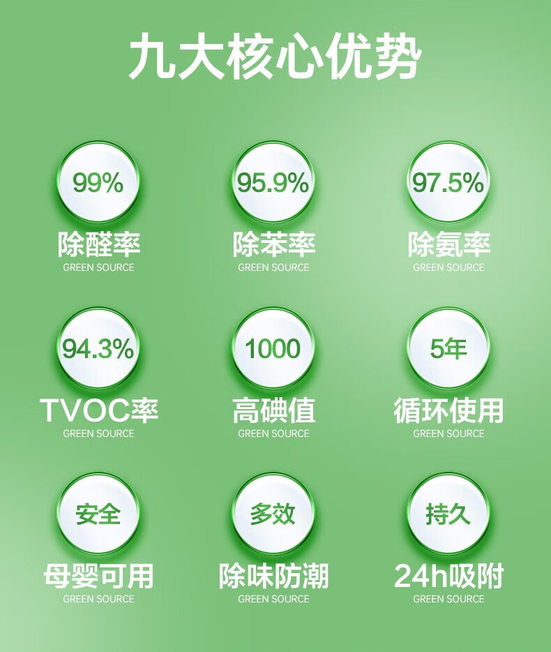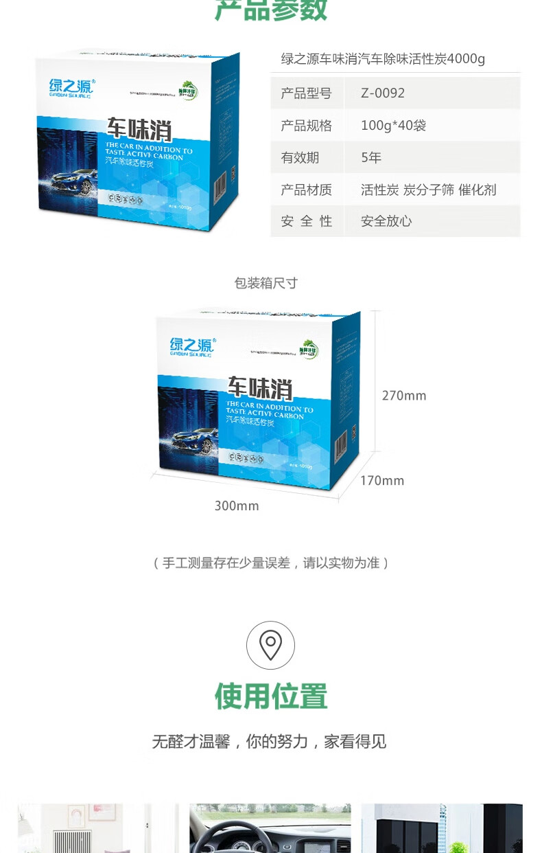 绿之源活性碳包车家两用新车汽车除味除甲醛车味消1kg/4kg新老包装交替发货