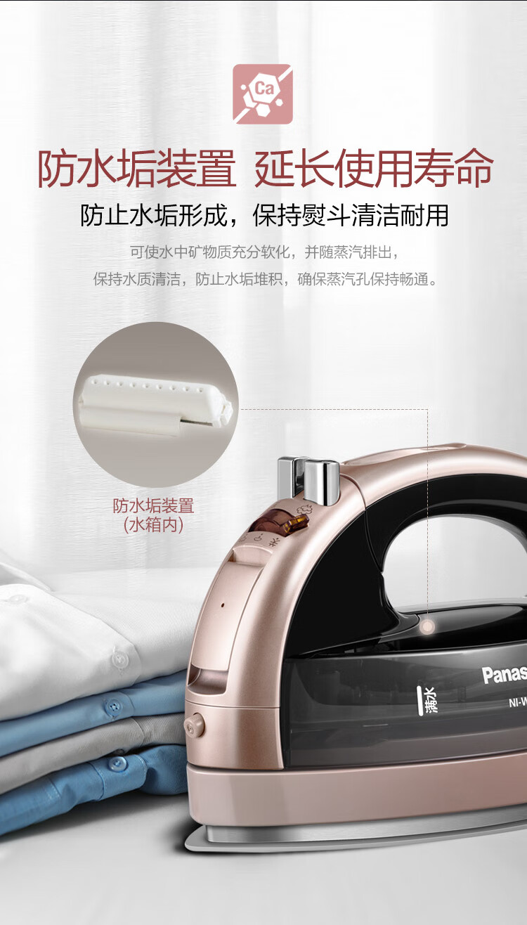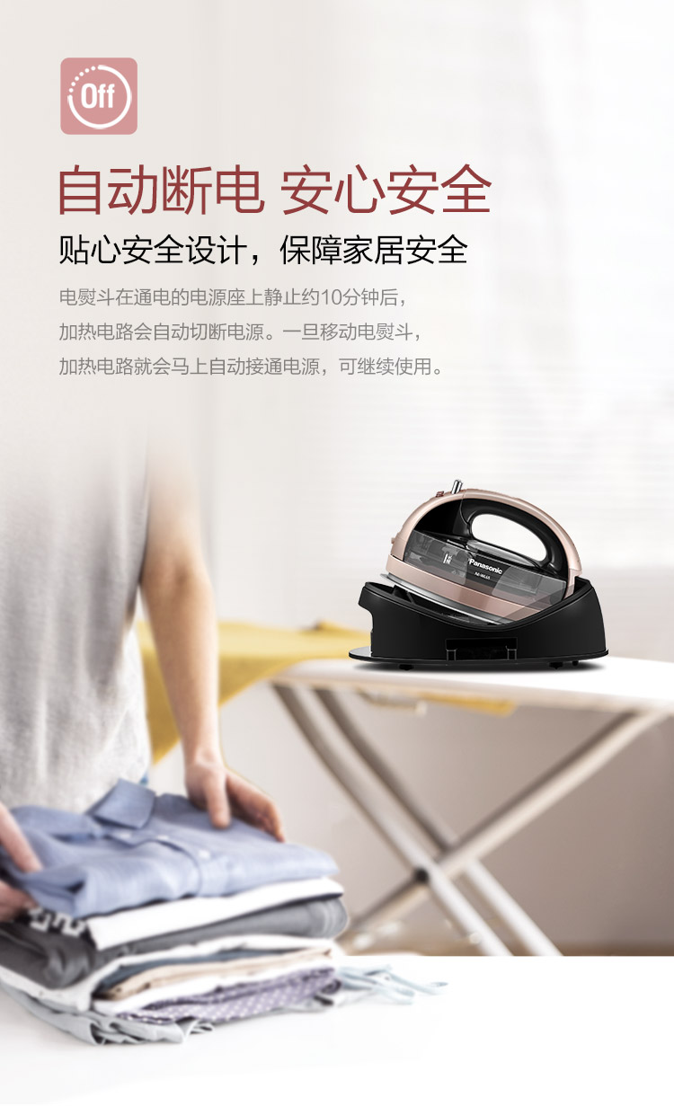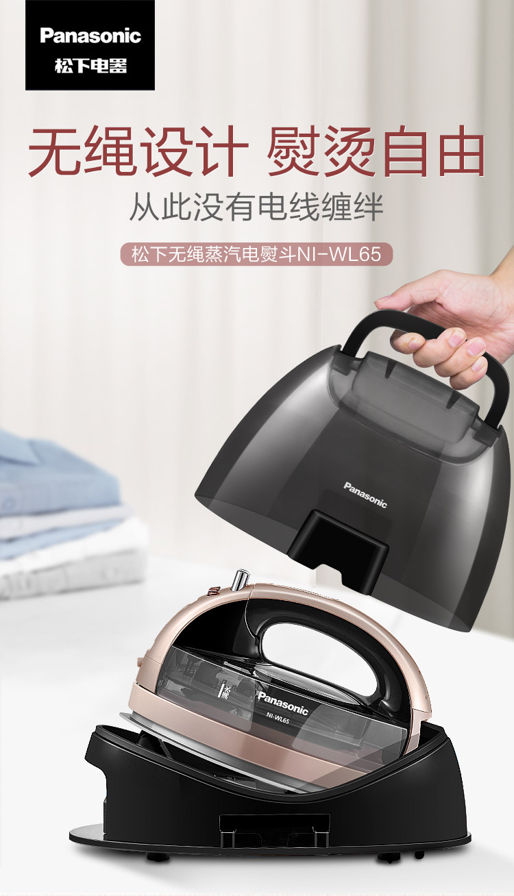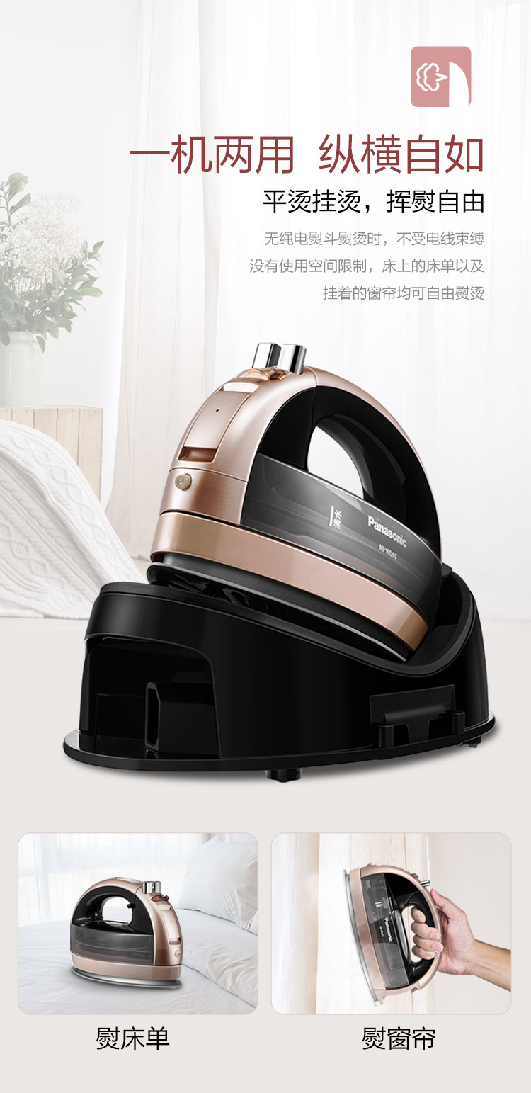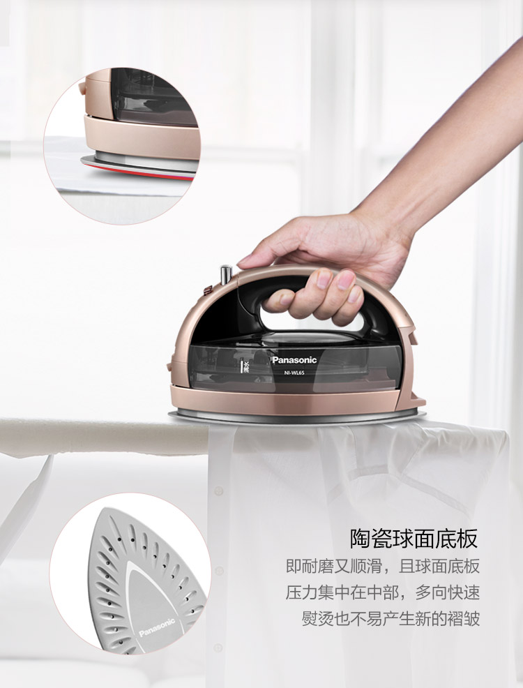 松下(Panasonic)电熨斗家用 手持无线挂烫机 电子恒温感应 自动断电 NI-WL65-PN