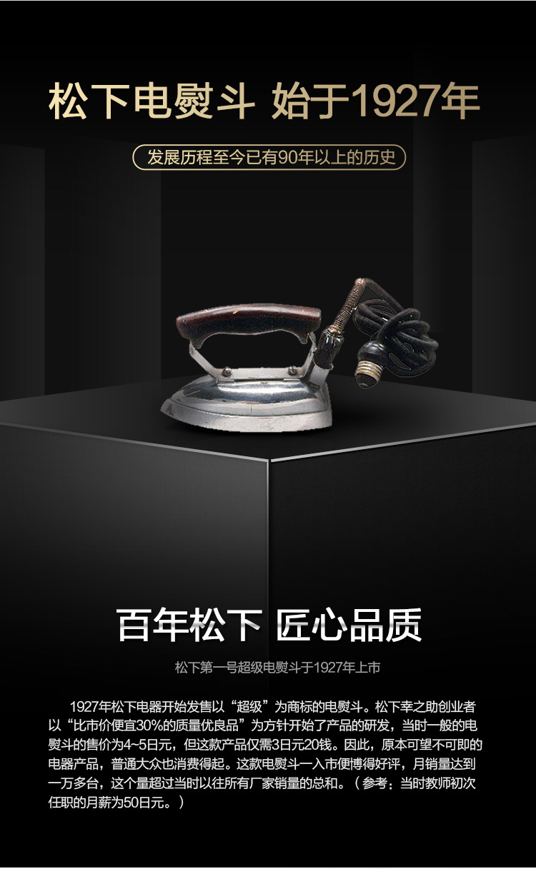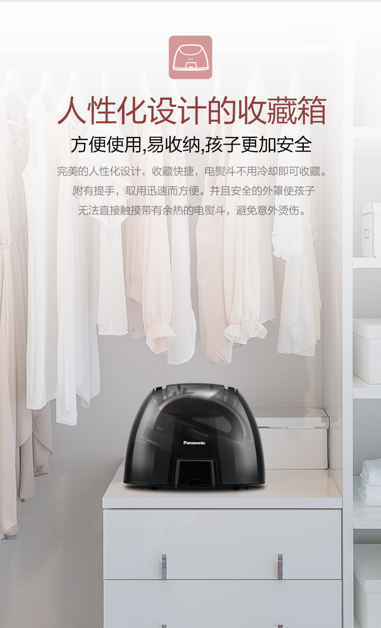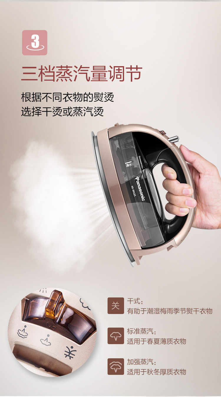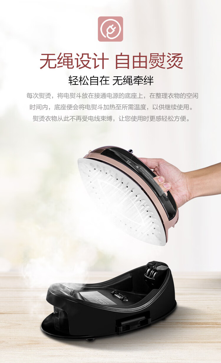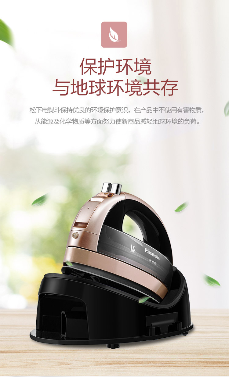 松下(Panasonic)电熨斗家用 手持无线挂烫机 电子恒温感应 自动断电 NI-WL65-PN
