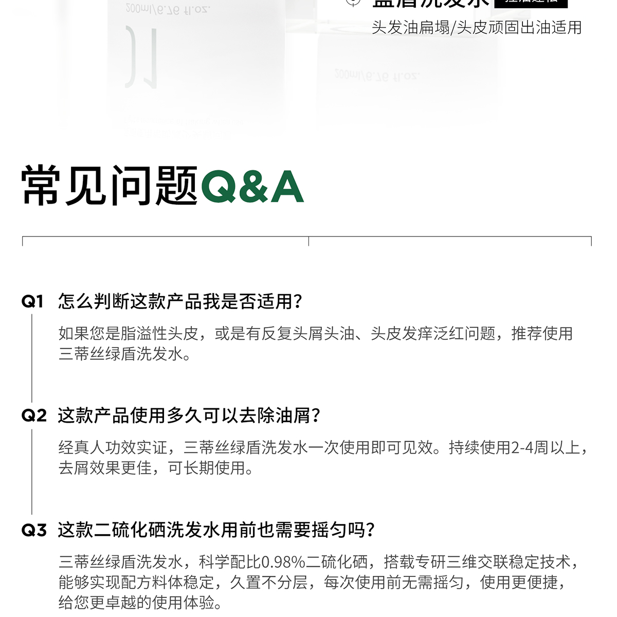 【油屑头适用】3odice三蒂丝 控油去屑洗发水 绿盾洗发水