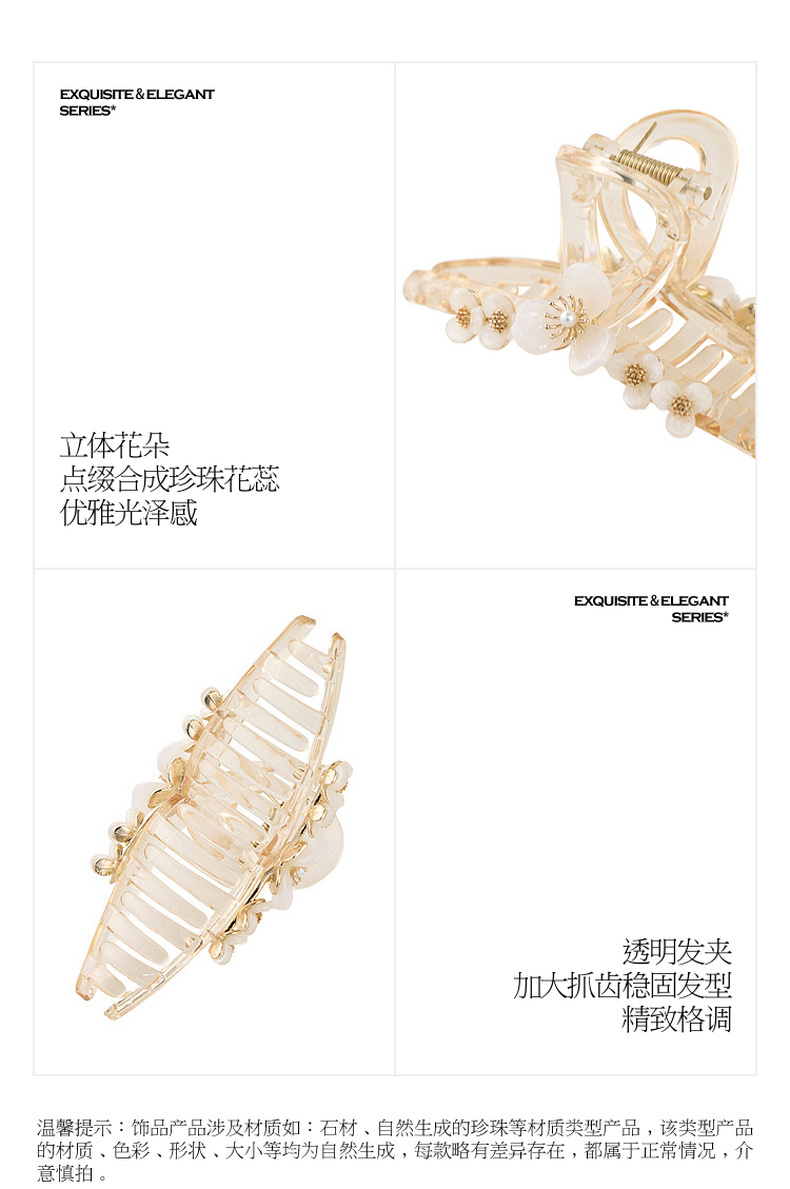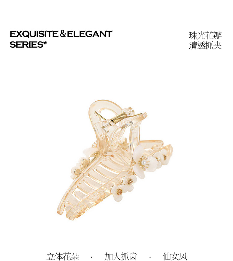 三彩2026新款立体花朵仿珍珠透明抓夹发夹轻盈百搭半扎发通勤仙气