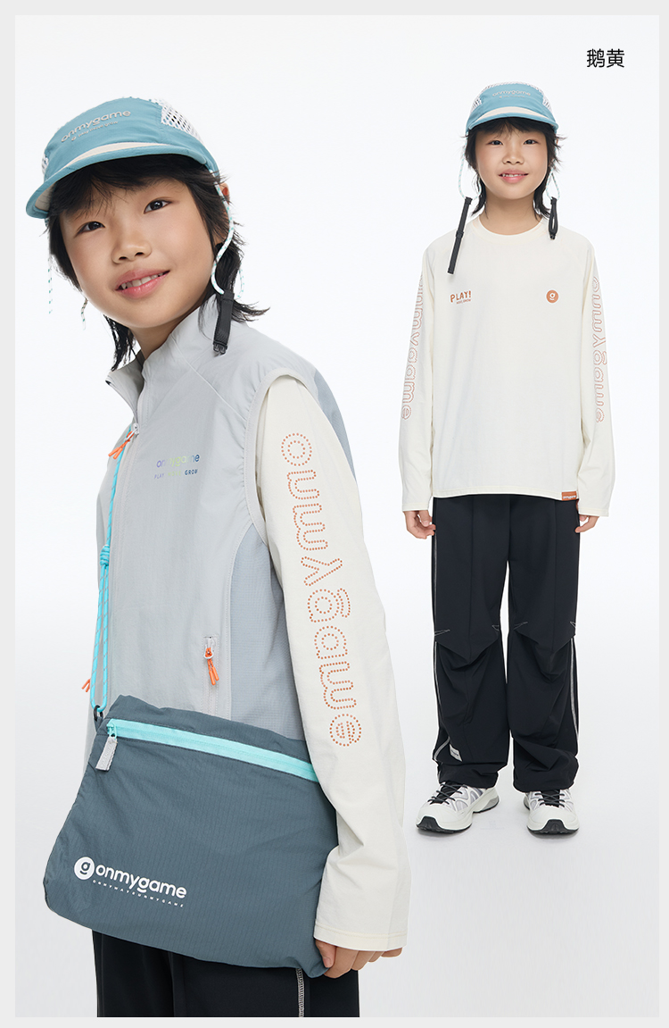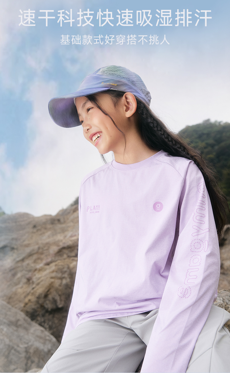 onmygame儿童速干T恤男女童纯色运动吸湿速干打底衫2026春新款GQ11119570