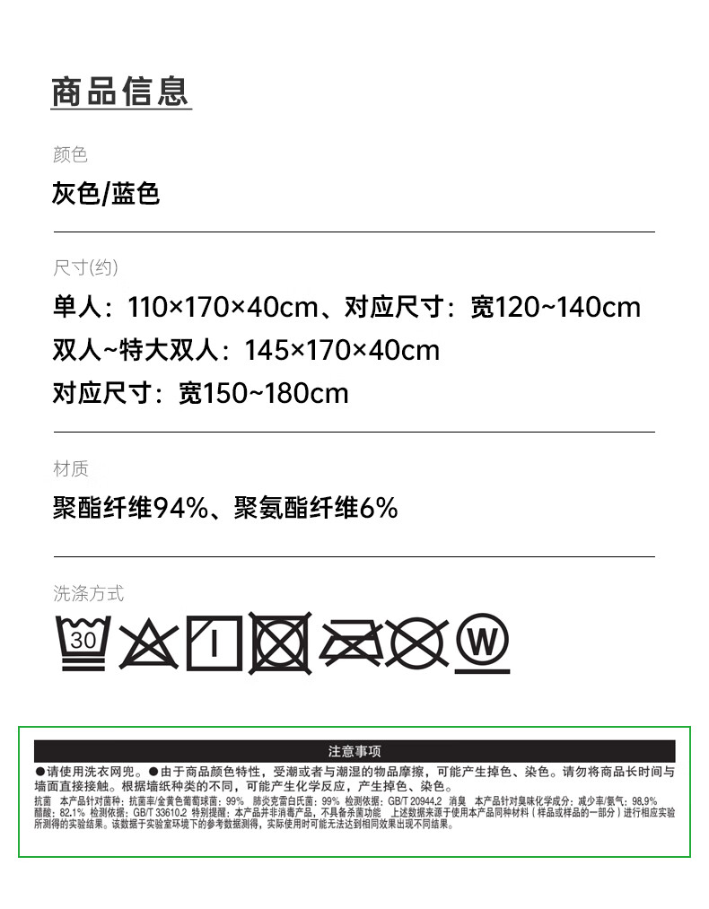 冷感高弹床笠 灰色/蓝色 单人/双人-特大双人通用