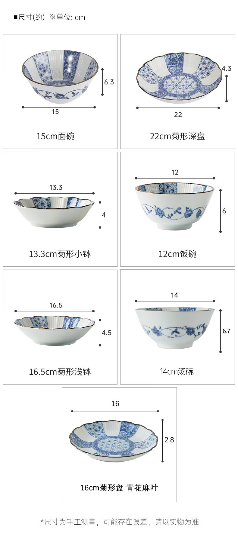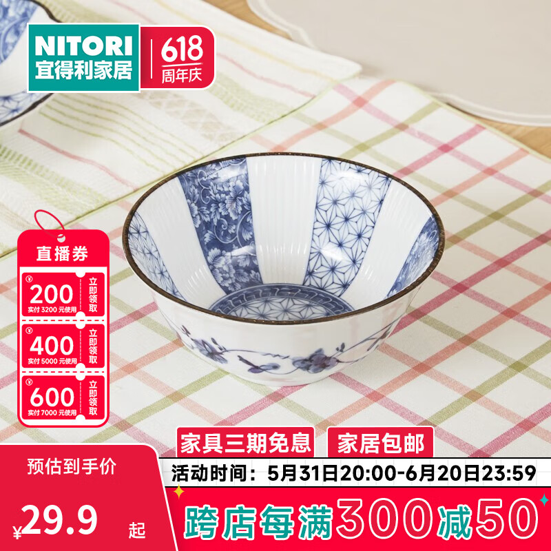 NITORI宜得利家居 家用陶瓷餐具餐盘汤盘菜盘子简约盘子 青花麻叶