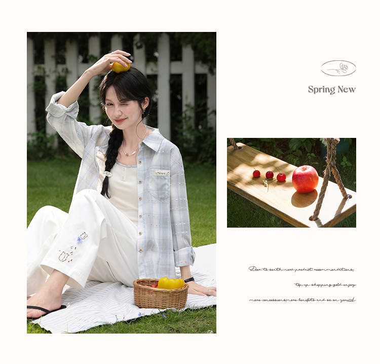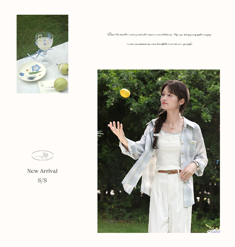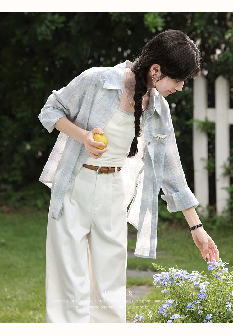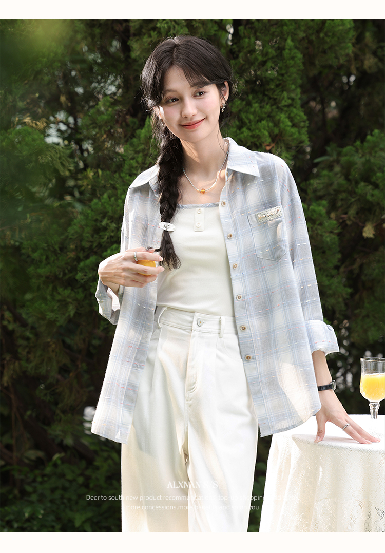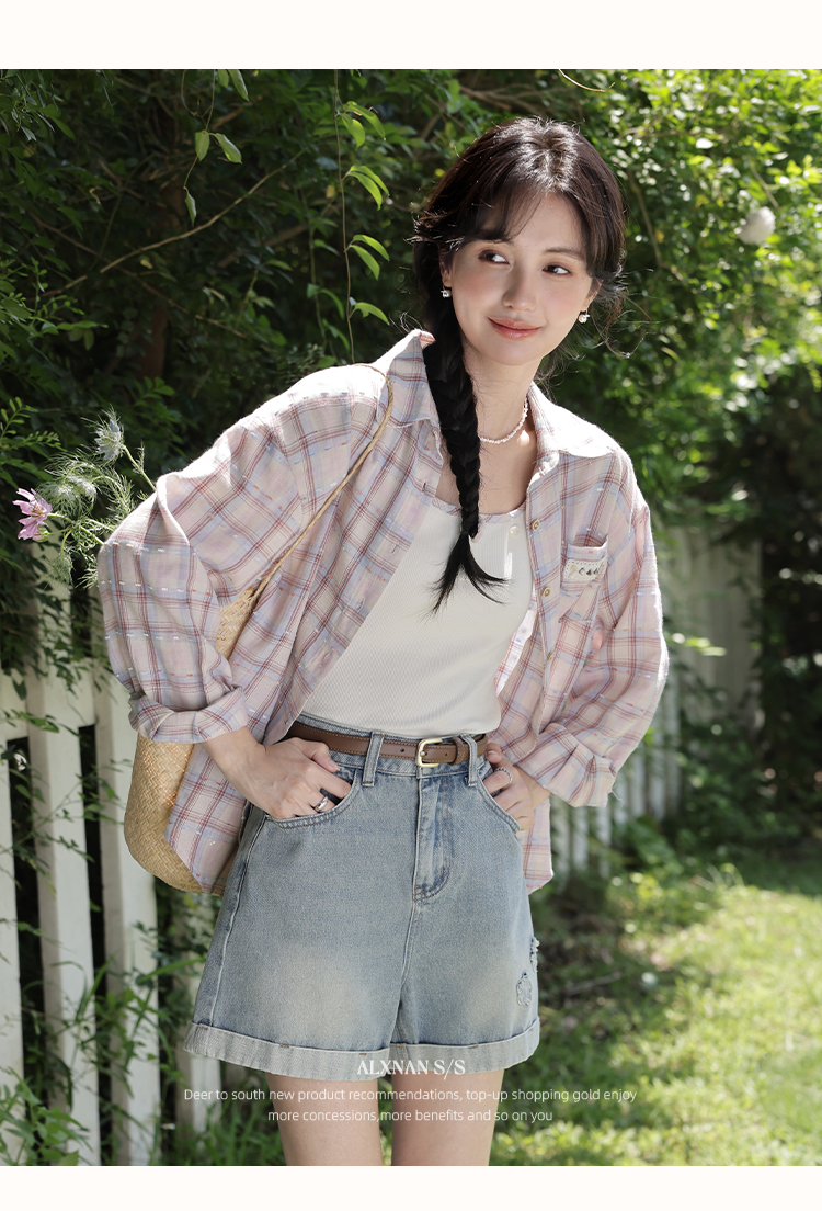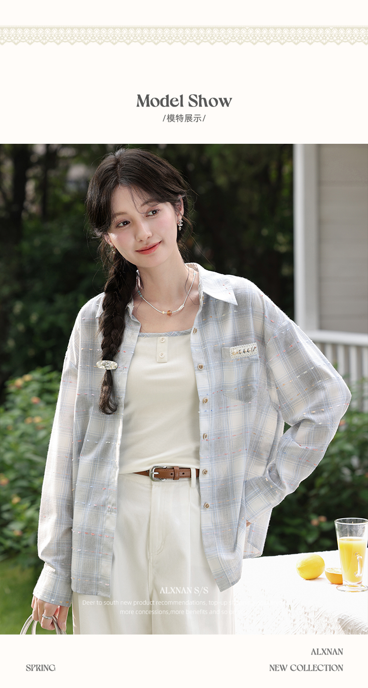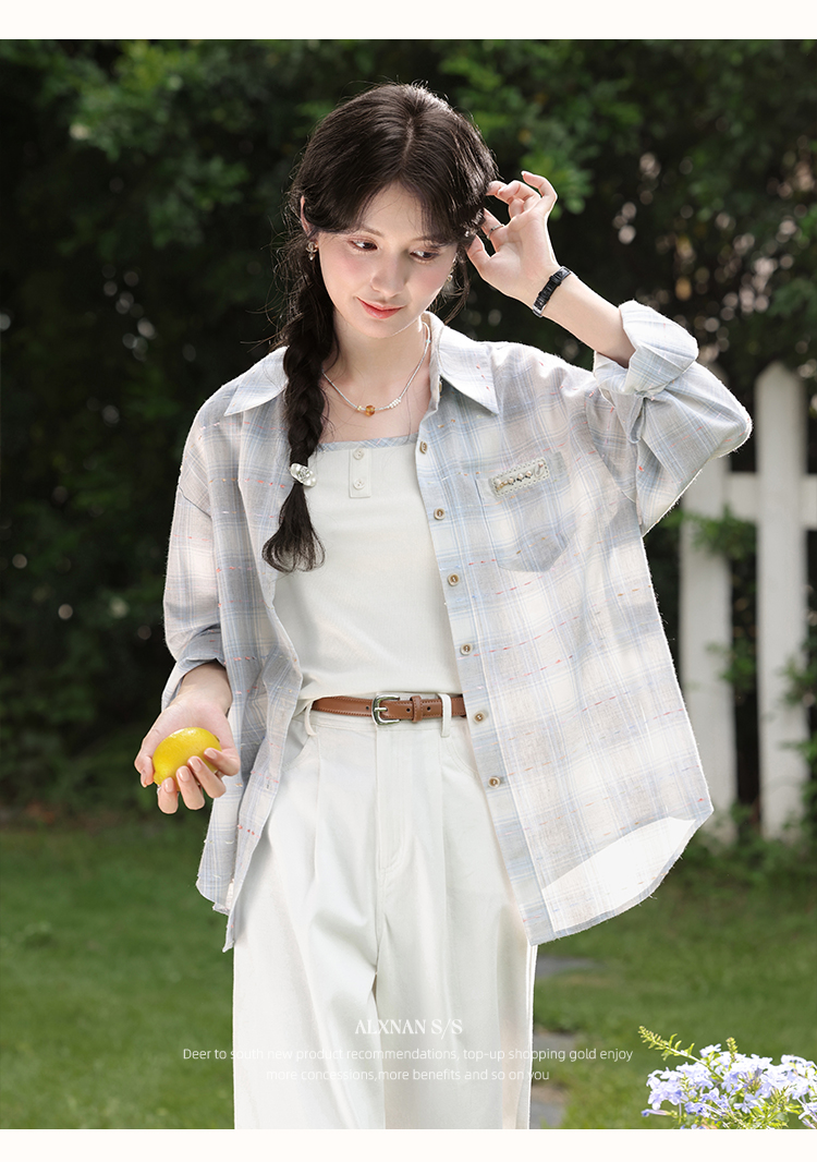 鹿向南「茉海听风」多色格纹长袖衬衫防晒衣女夏宽松时尚开衫上衣
