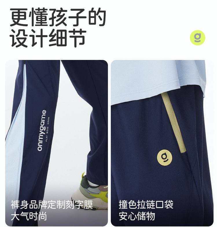 onmygame【双重魔法】男童裤子儿童拉链长裤夏季2025年新款机能风