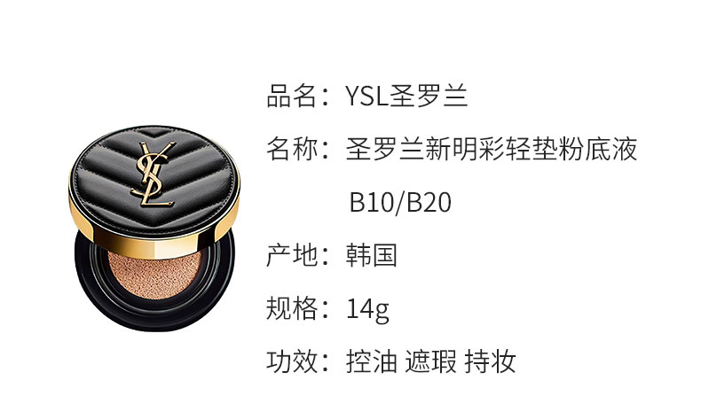 礼盒-圣罗兰无瑕彩妆礼盒 气垫#B10(偏白肤色)/气垫#B20(自然肤色)+小金条口红#1966