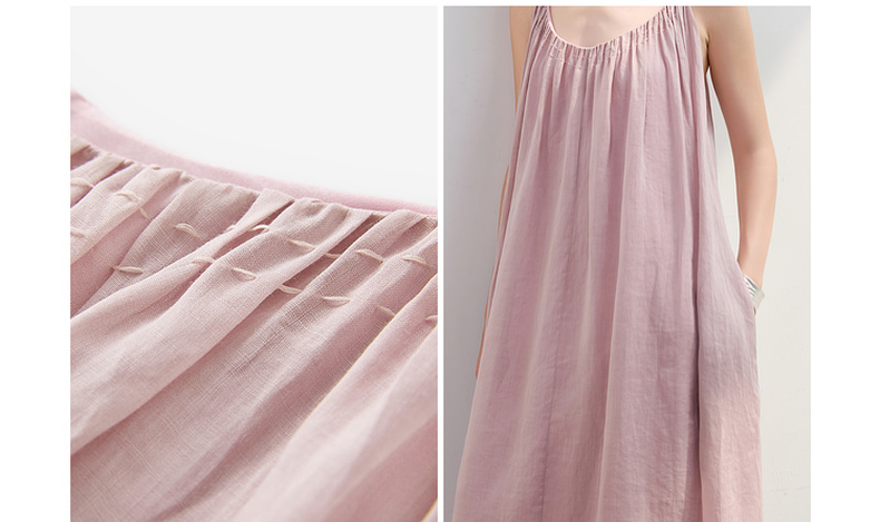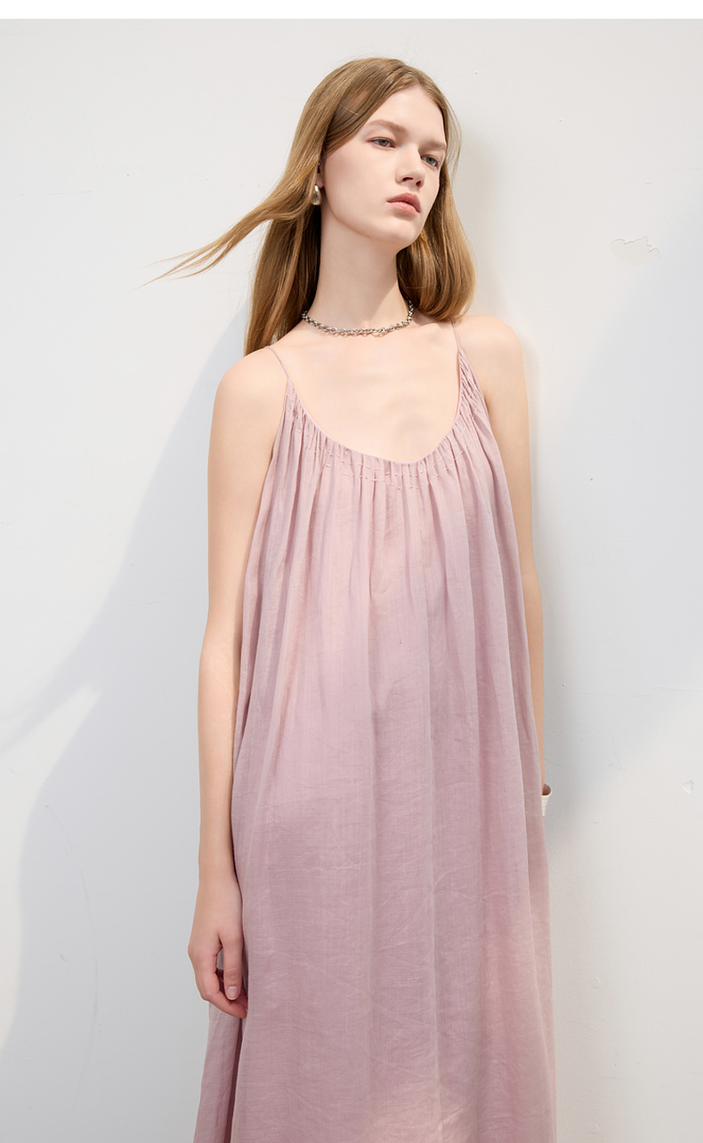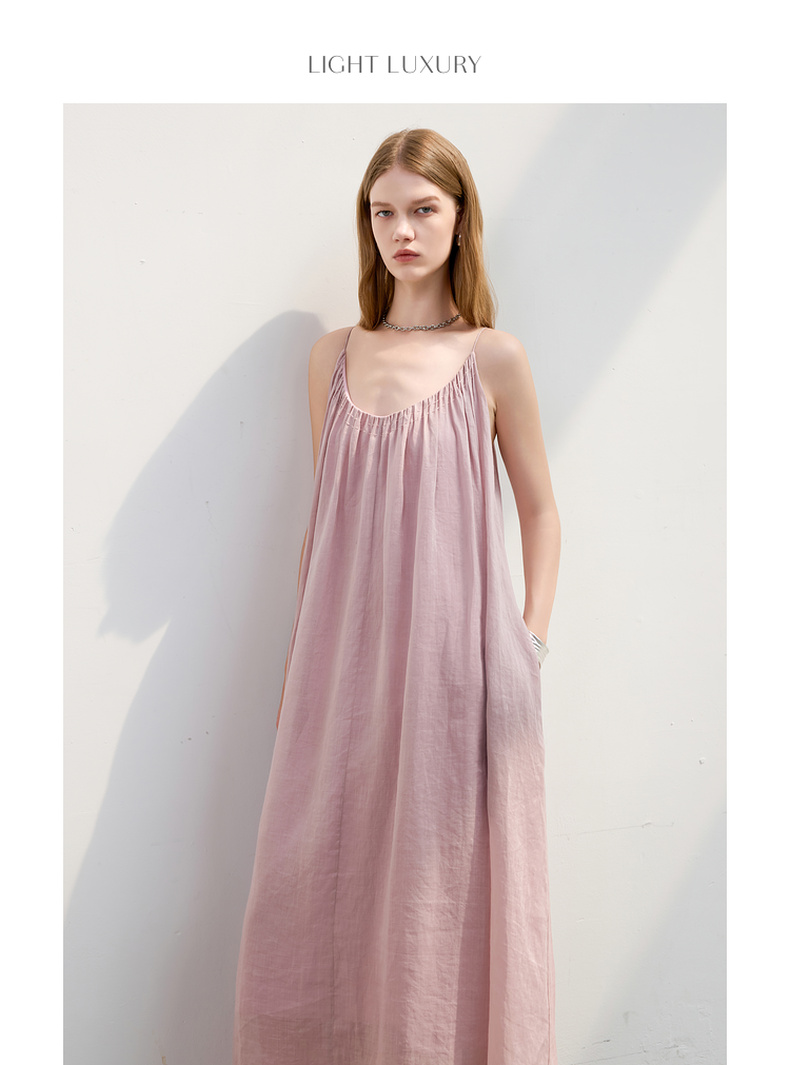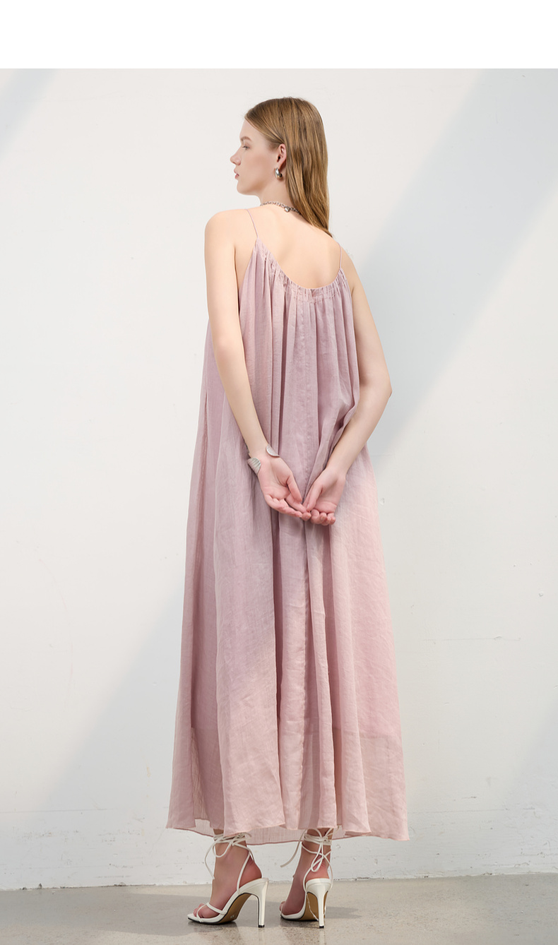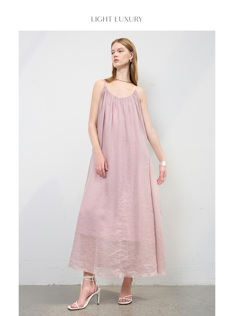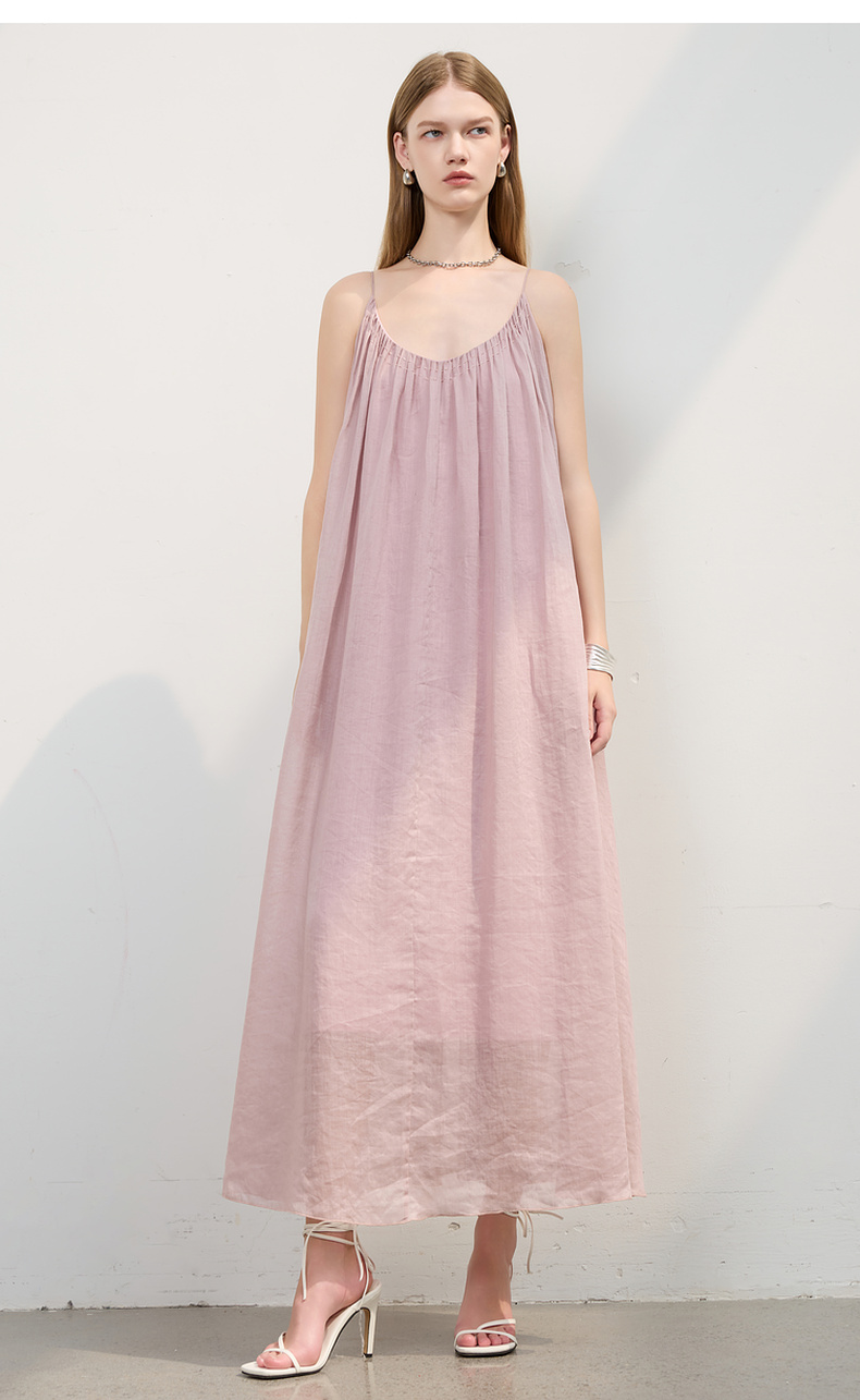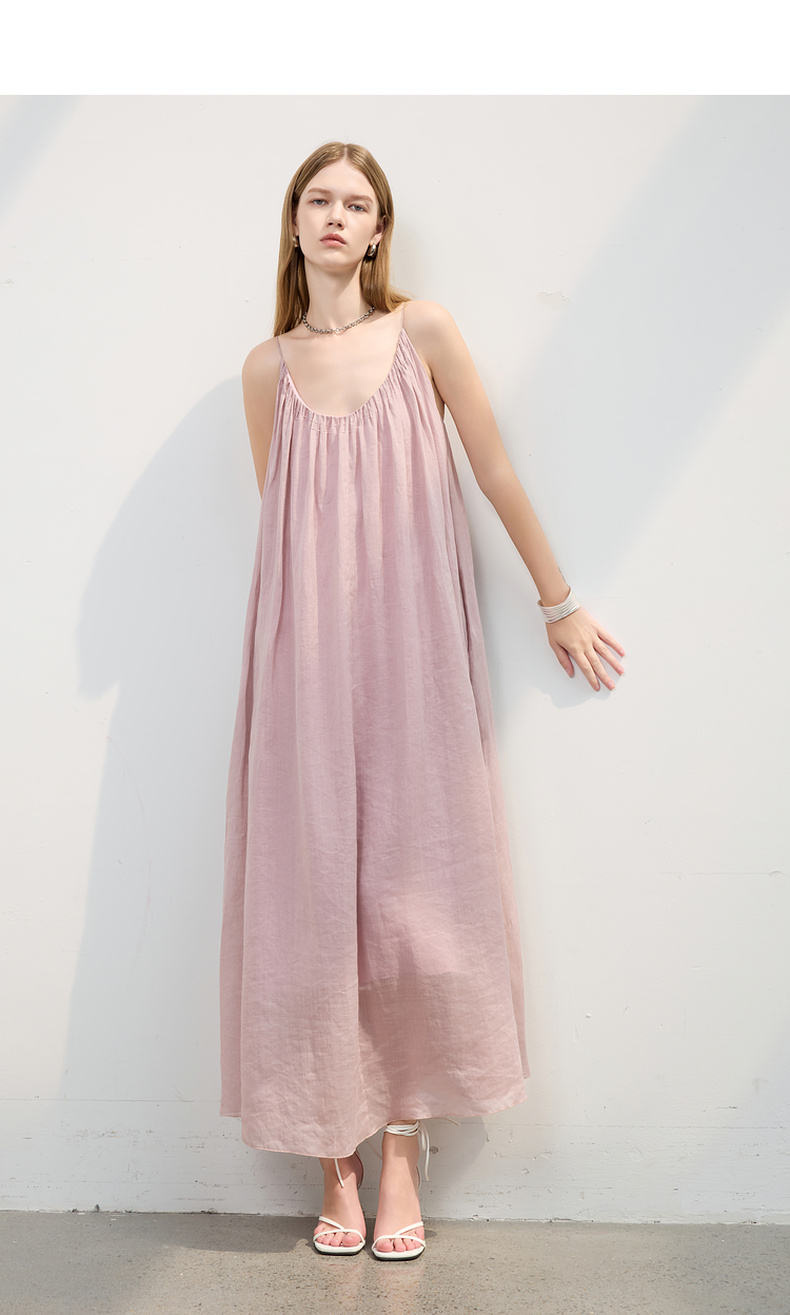 三彩2025夏季新款苎麻吊带裙U领无袖连衣裙宽松A字裙长裙度假S