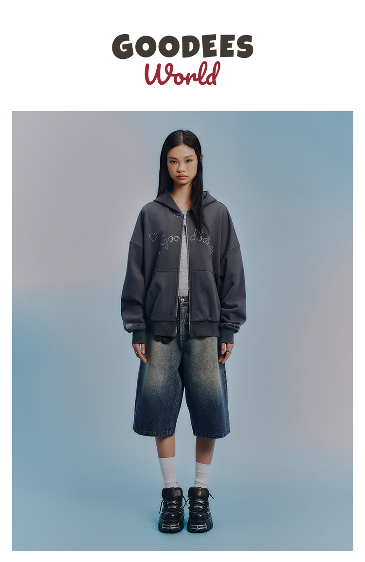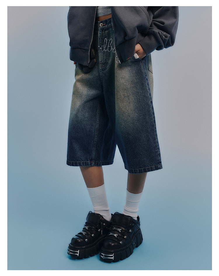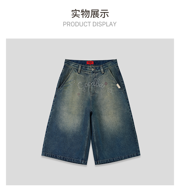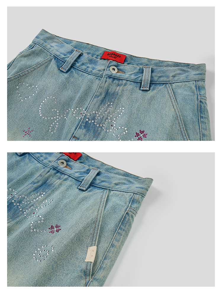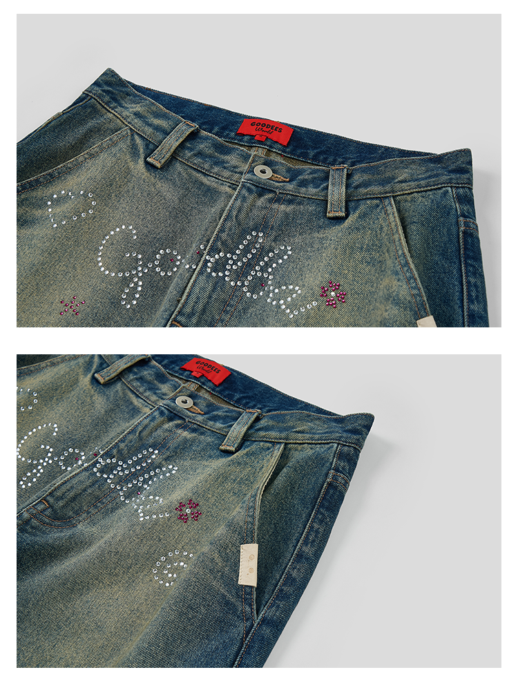 GOODBAI GOODEES烫钻logo水洗牛仔中裤