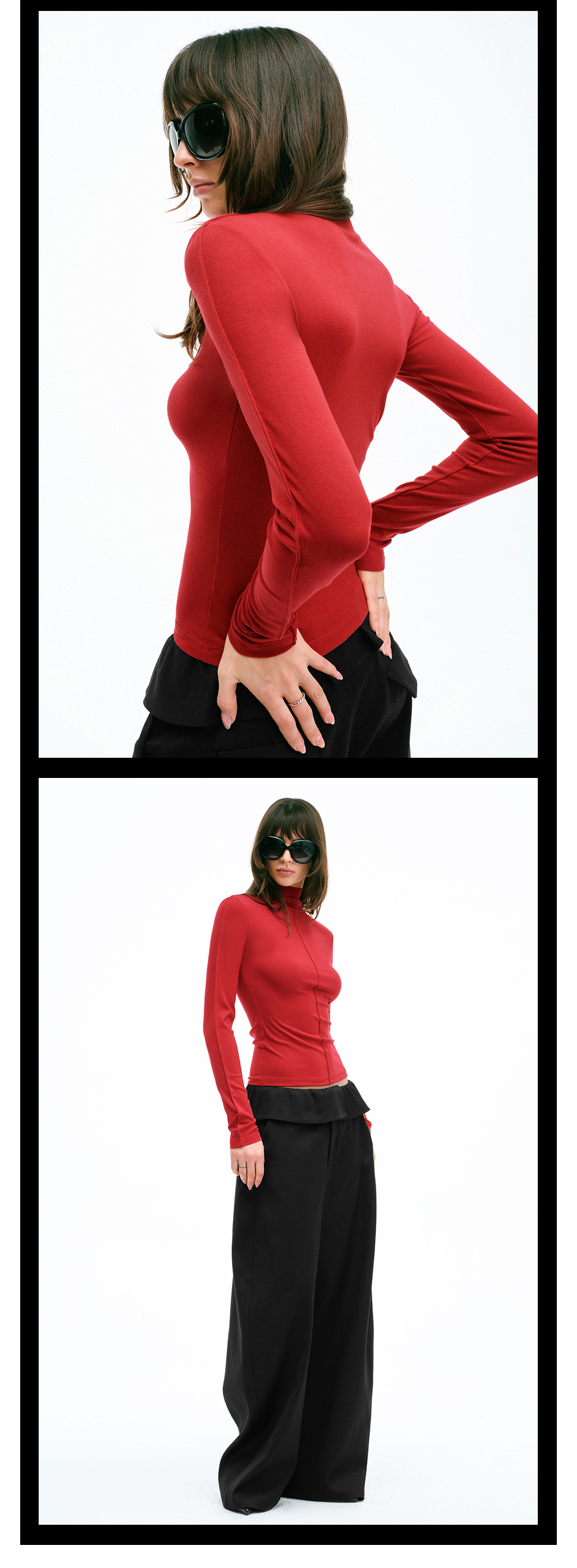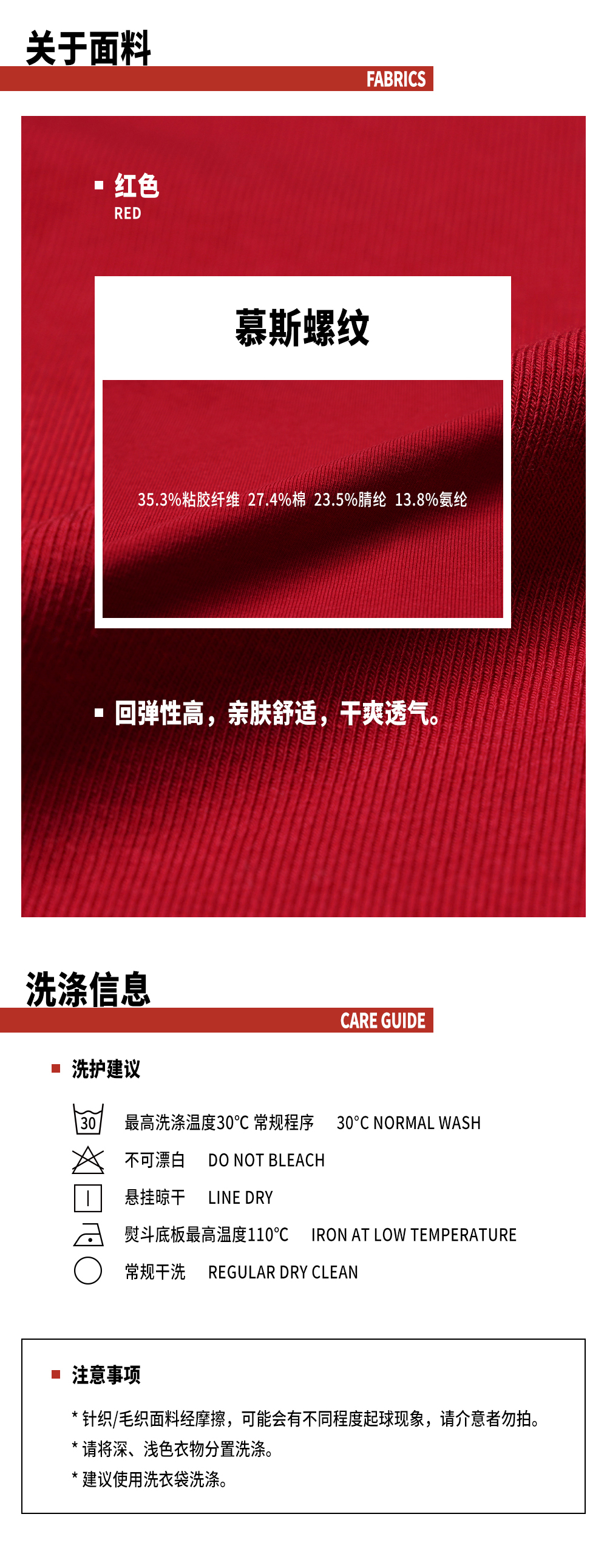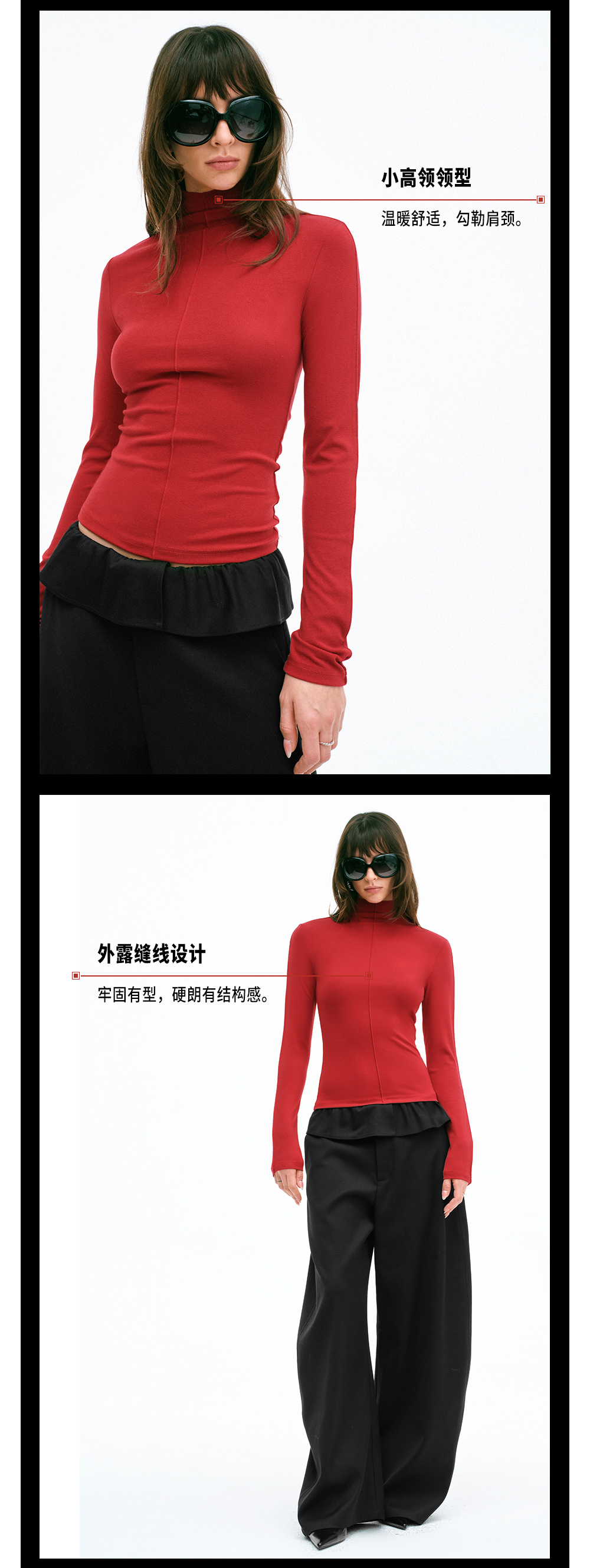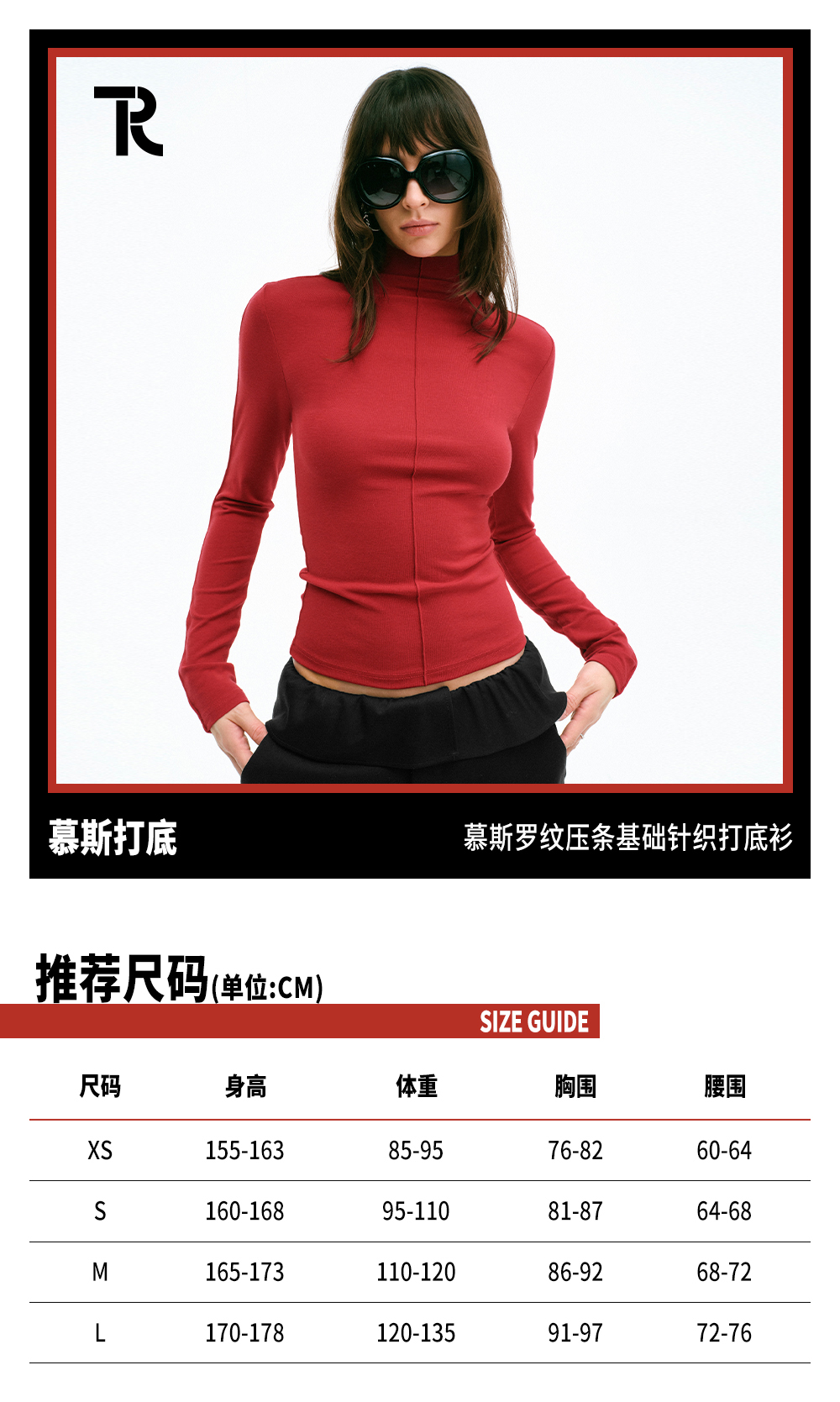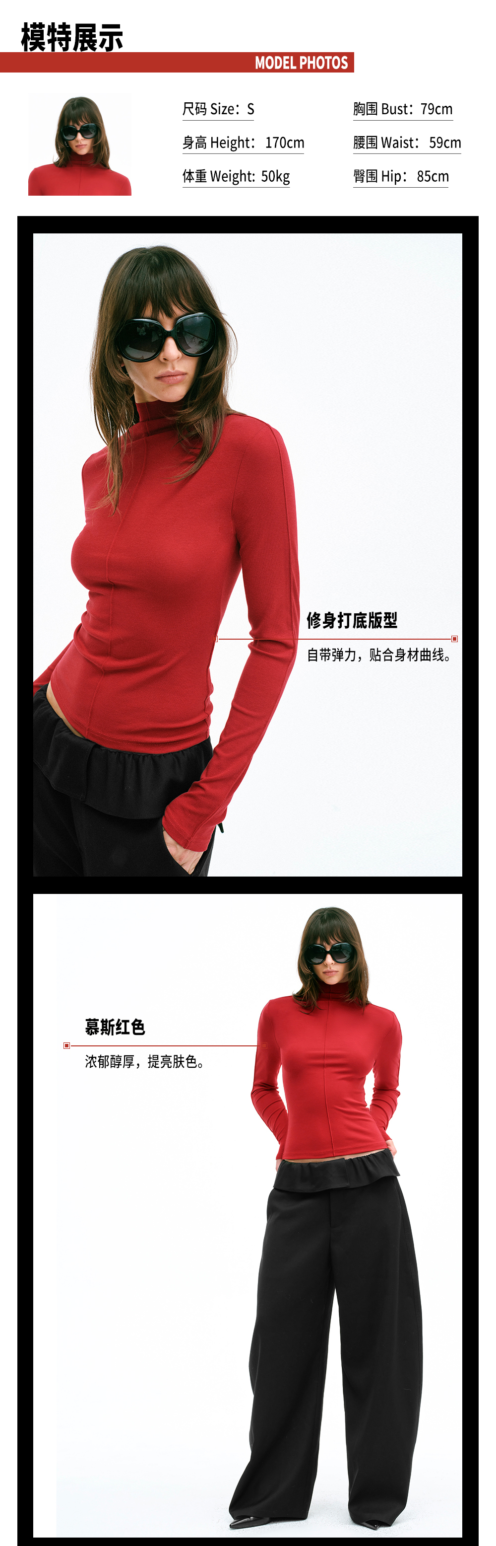 TR她热 慕斯打底 红色慕斯针织弹力复古修身基础款打底衫上衣