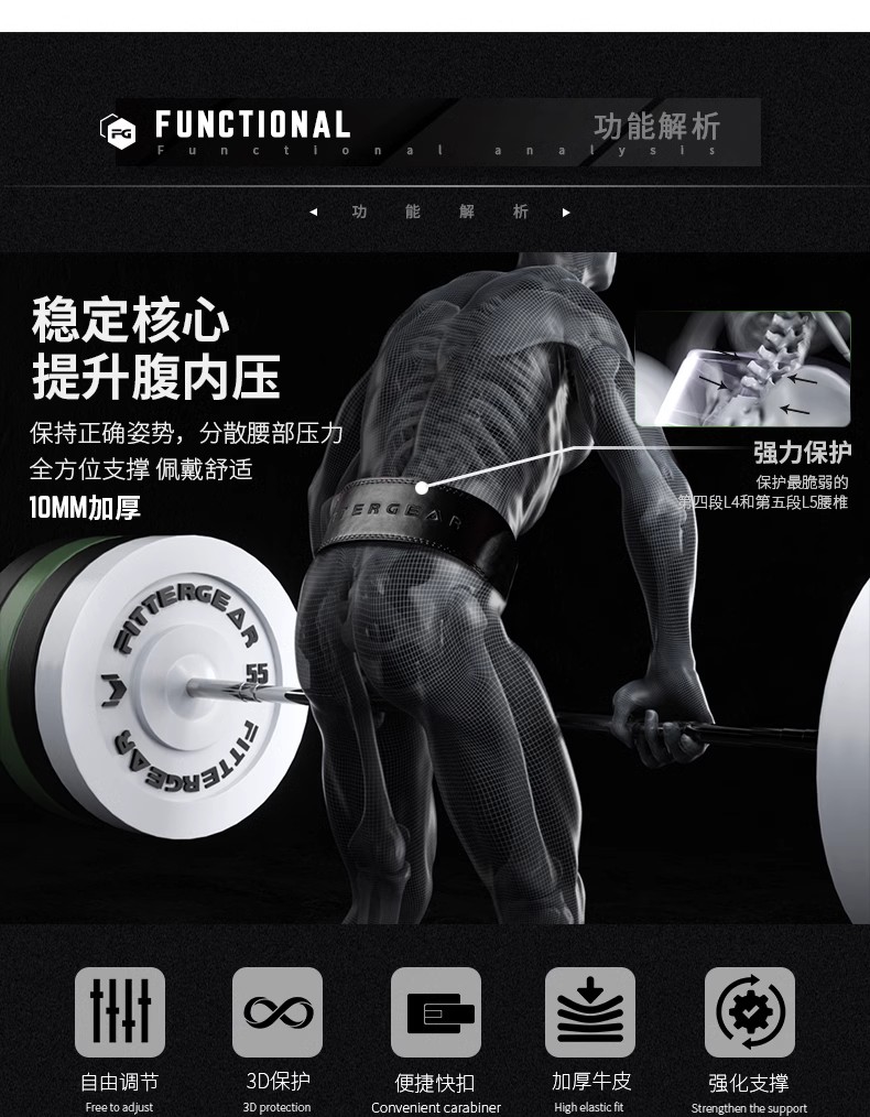 【执炼FitterGear】力量举健身腰带快扣深蹲硬拉牛皮FGKK