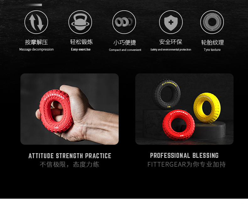 【执炼FitterGear】健身训练便携式轮胎橡胶握力器FGHG