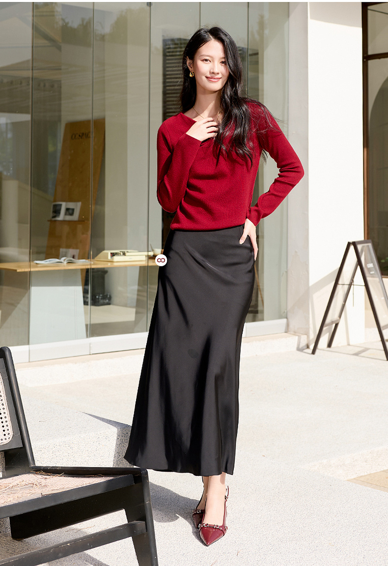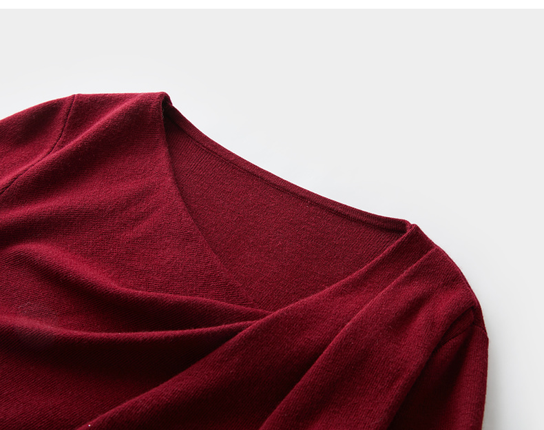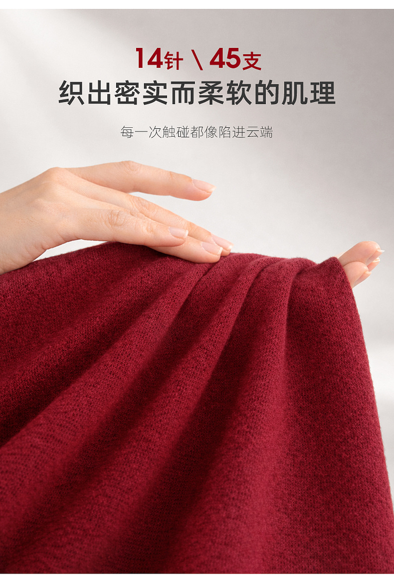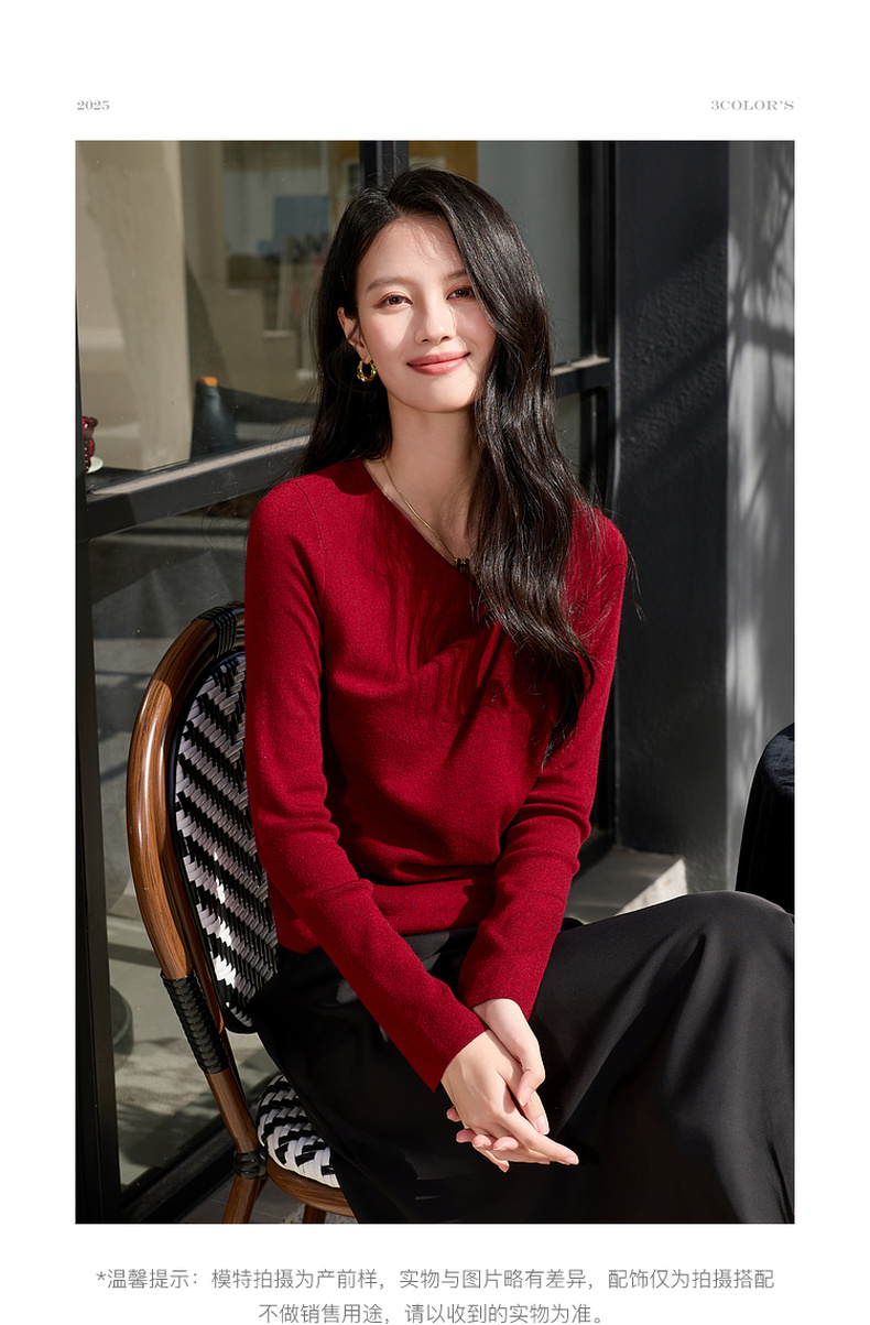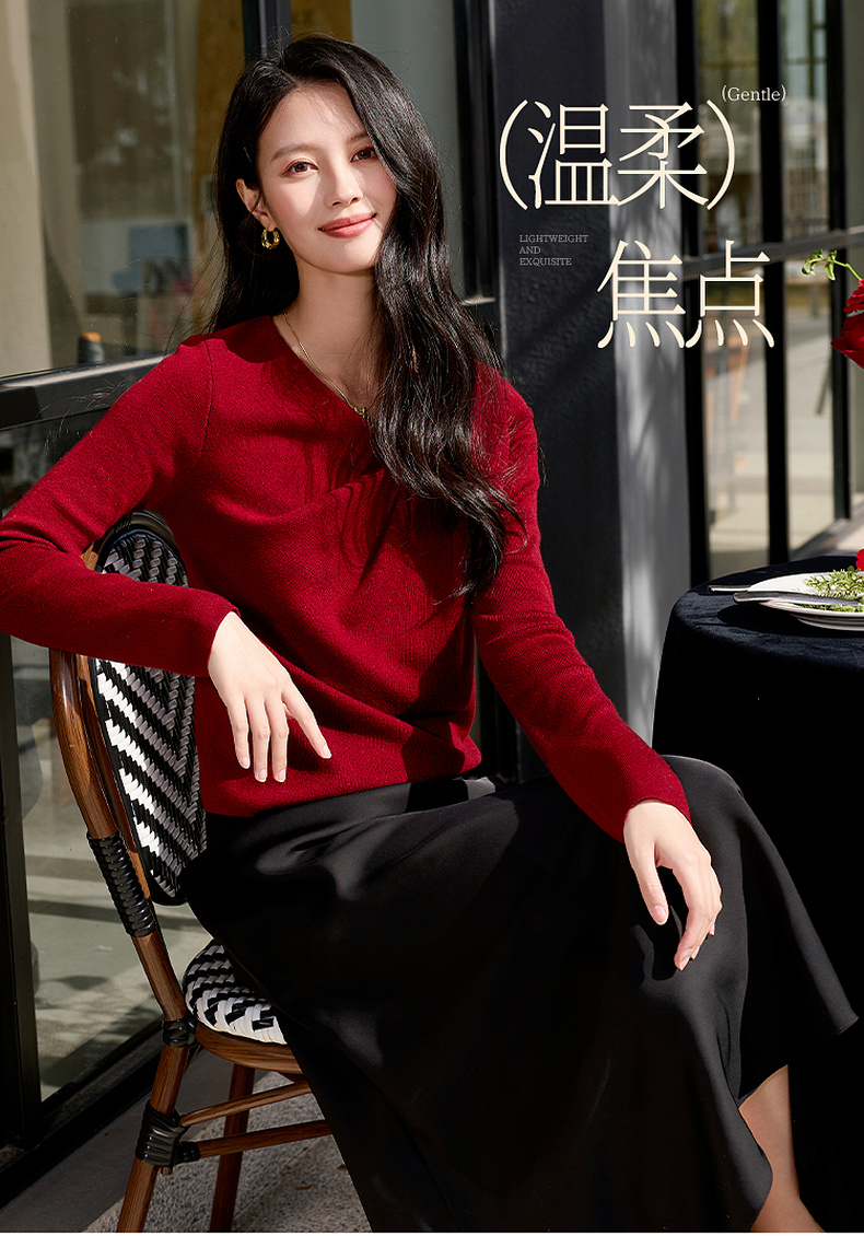 三彩2026春季新款设计感不规则荡领针织衫新年毛衫套头修身长袖S