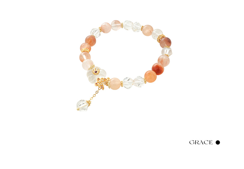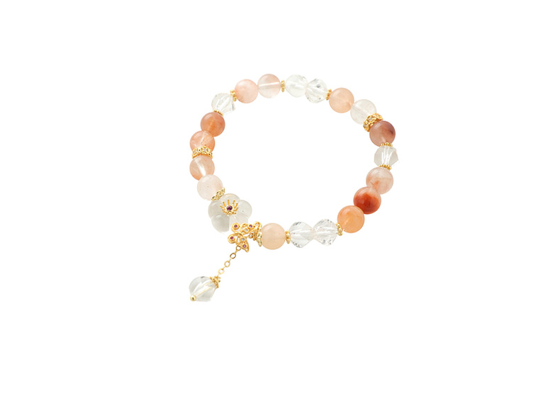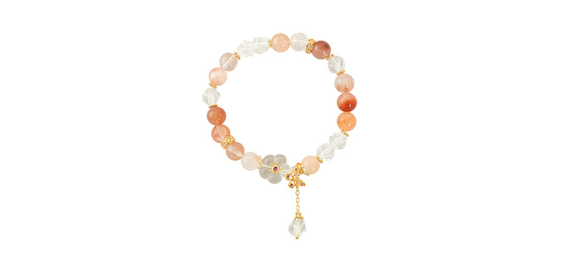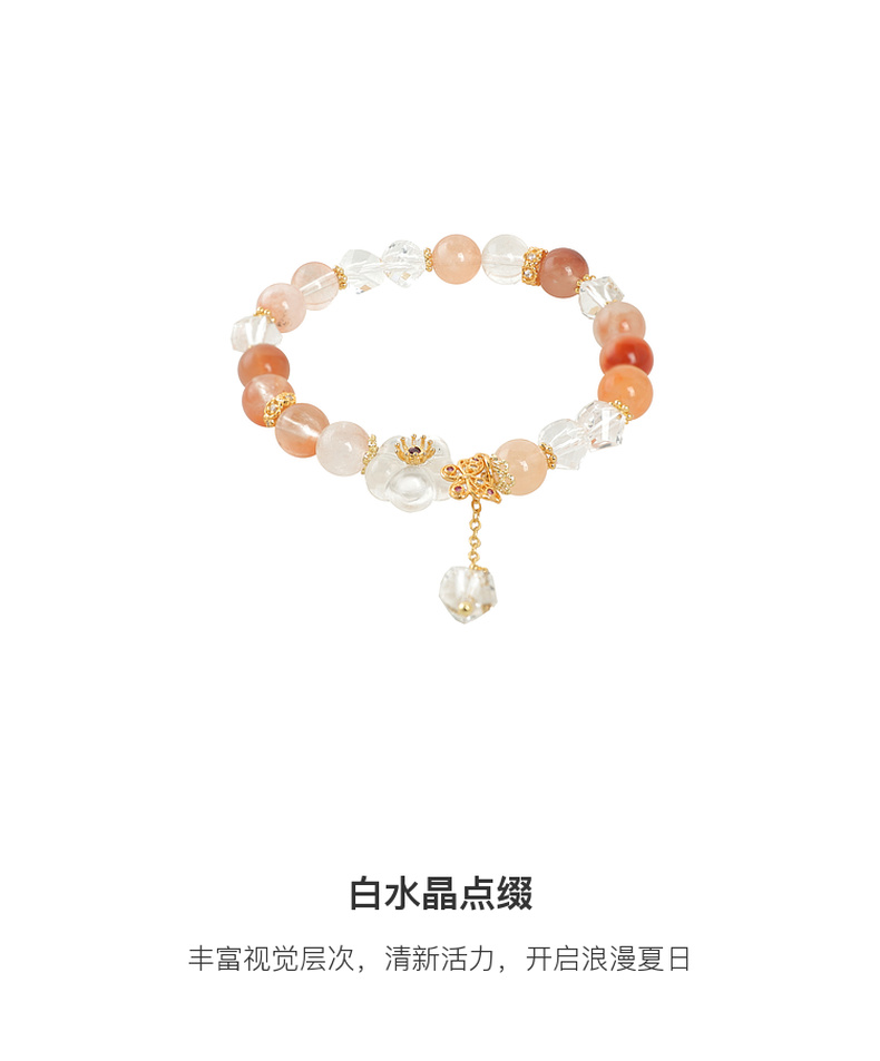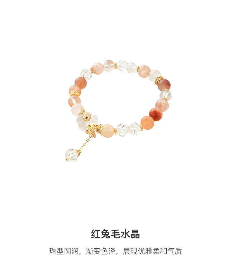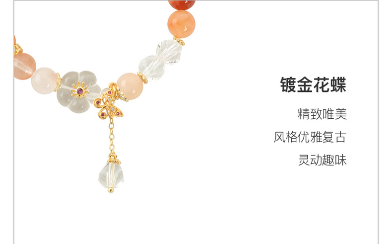 三彩2025新款夏日清新红兔毛水晶女式串珠手串手链花蝴蝶镀金复古