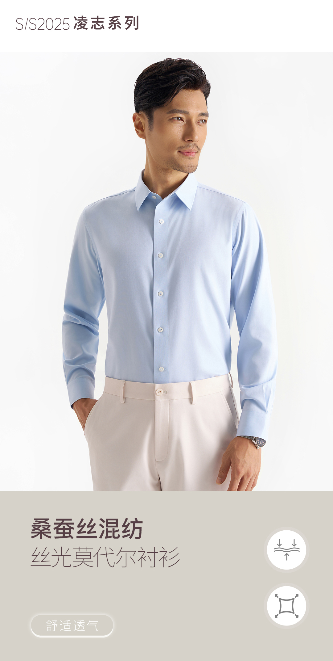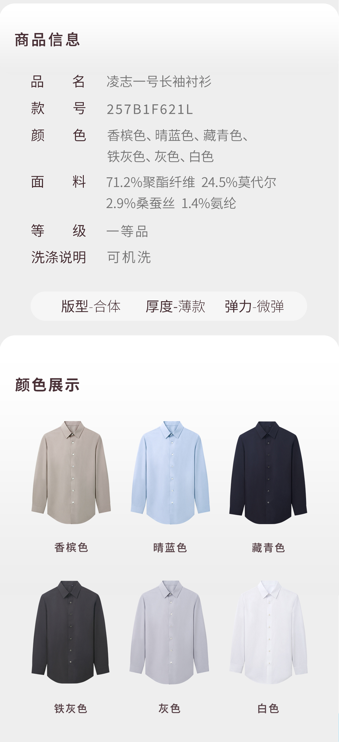【凌志一号】二代桑蚕丝莫代尔抗皱透气长袖衬衫257B1F621L
