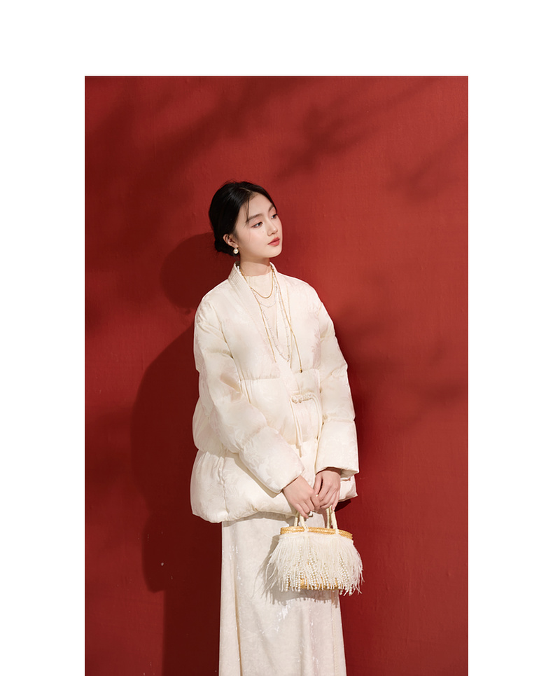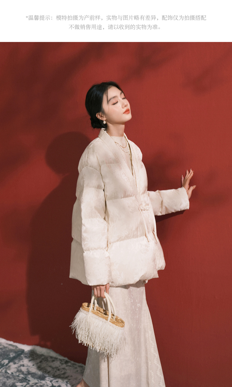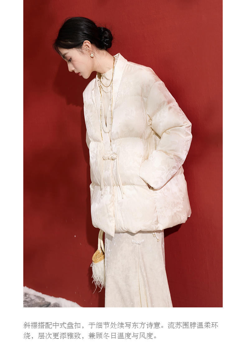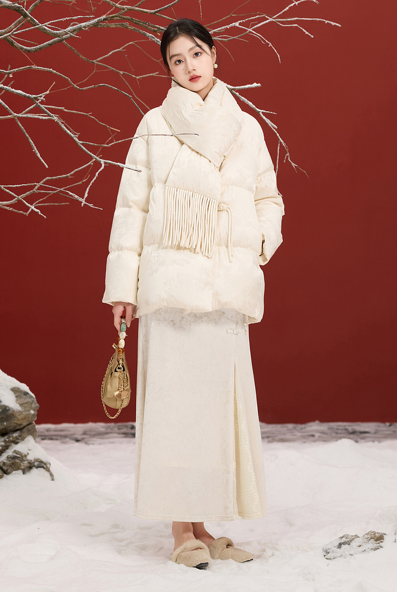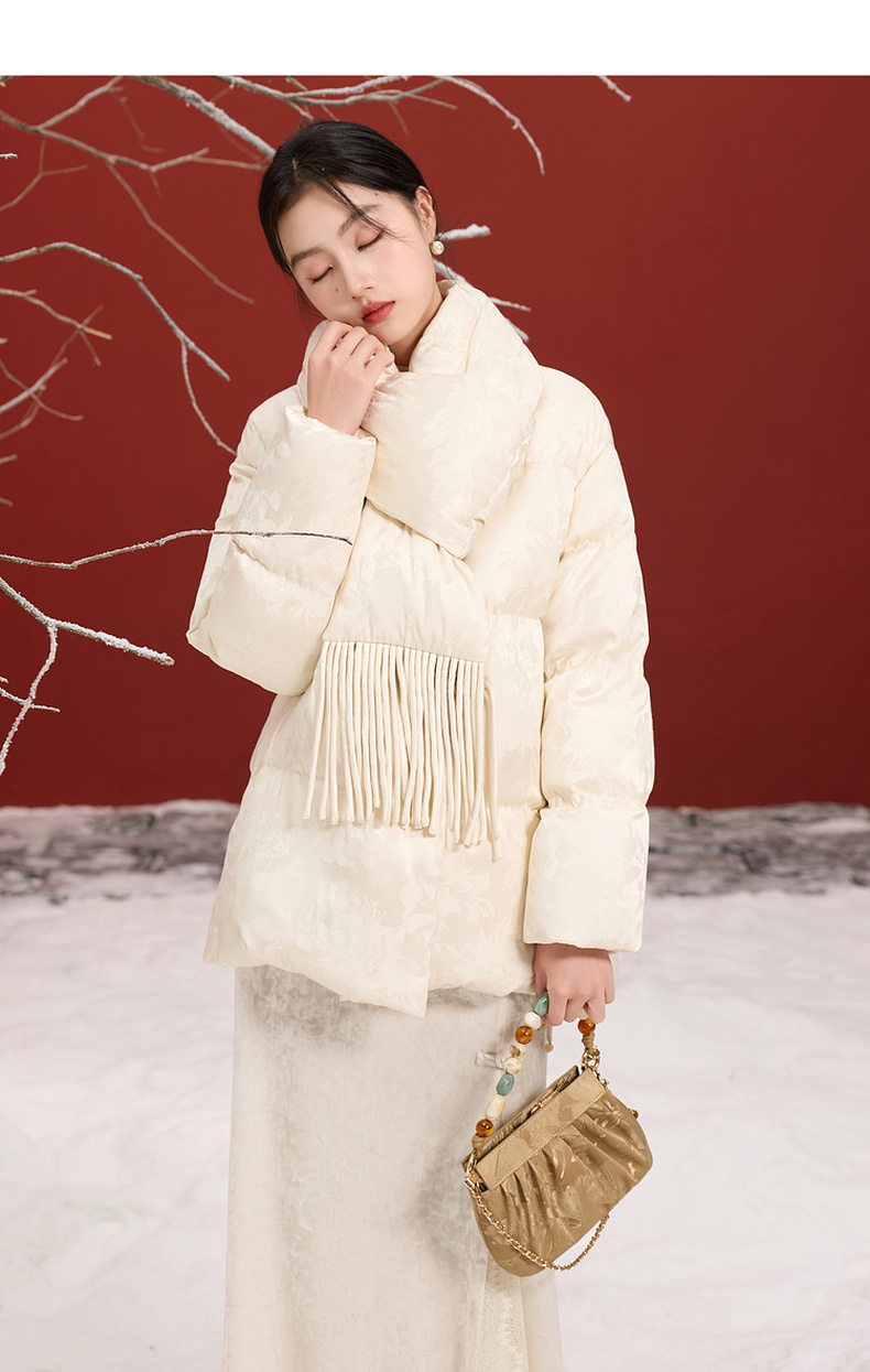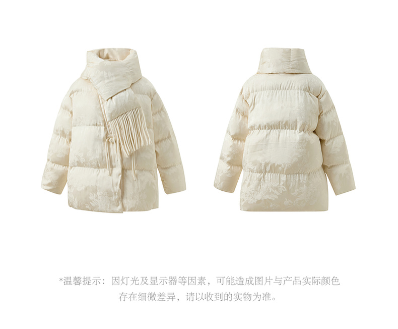 三彩【花影入梦】2025冬季新款90白鸭绒羽绒服宽松保暖围脖C