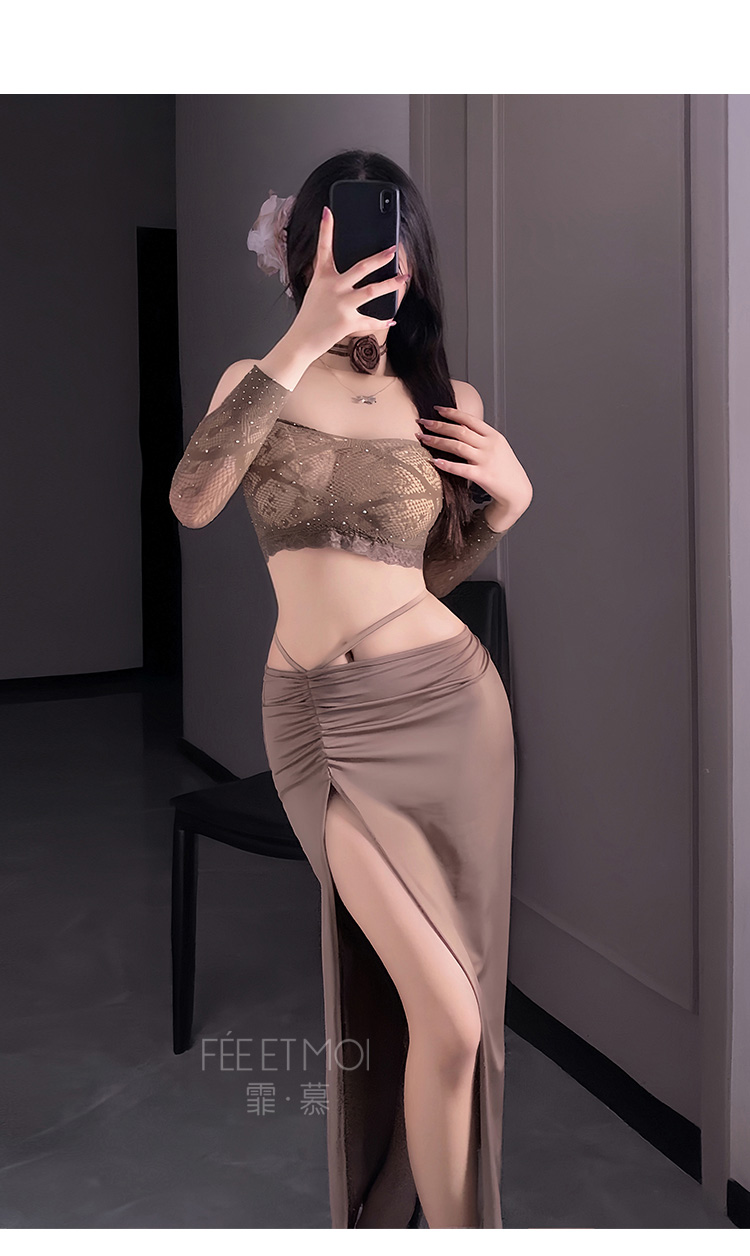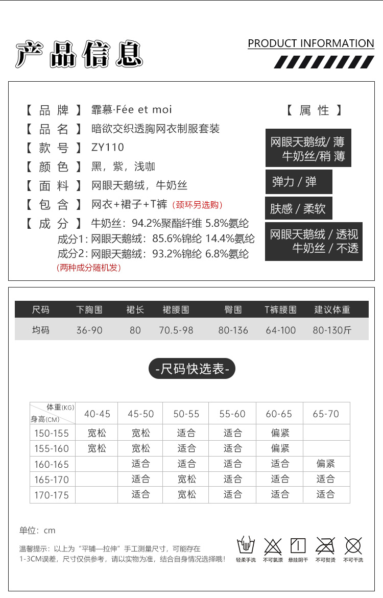 【情趣内衣】霏慕 暗欲交织透胸网衣制服套装ZY110