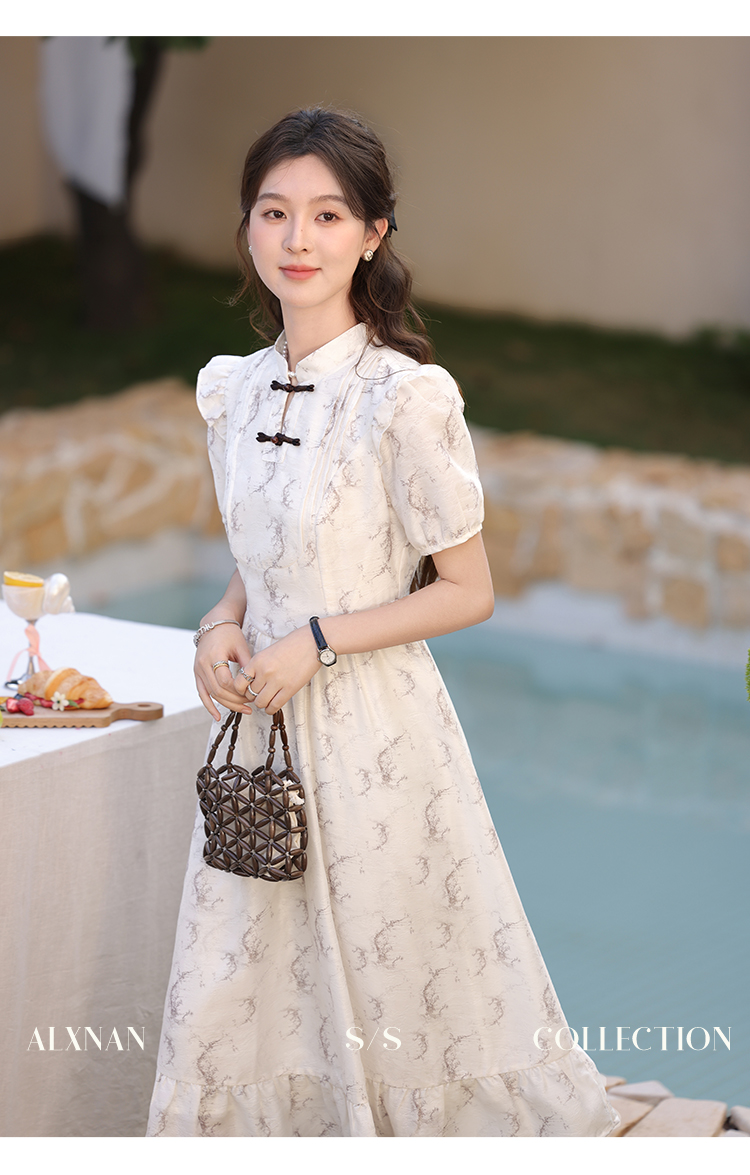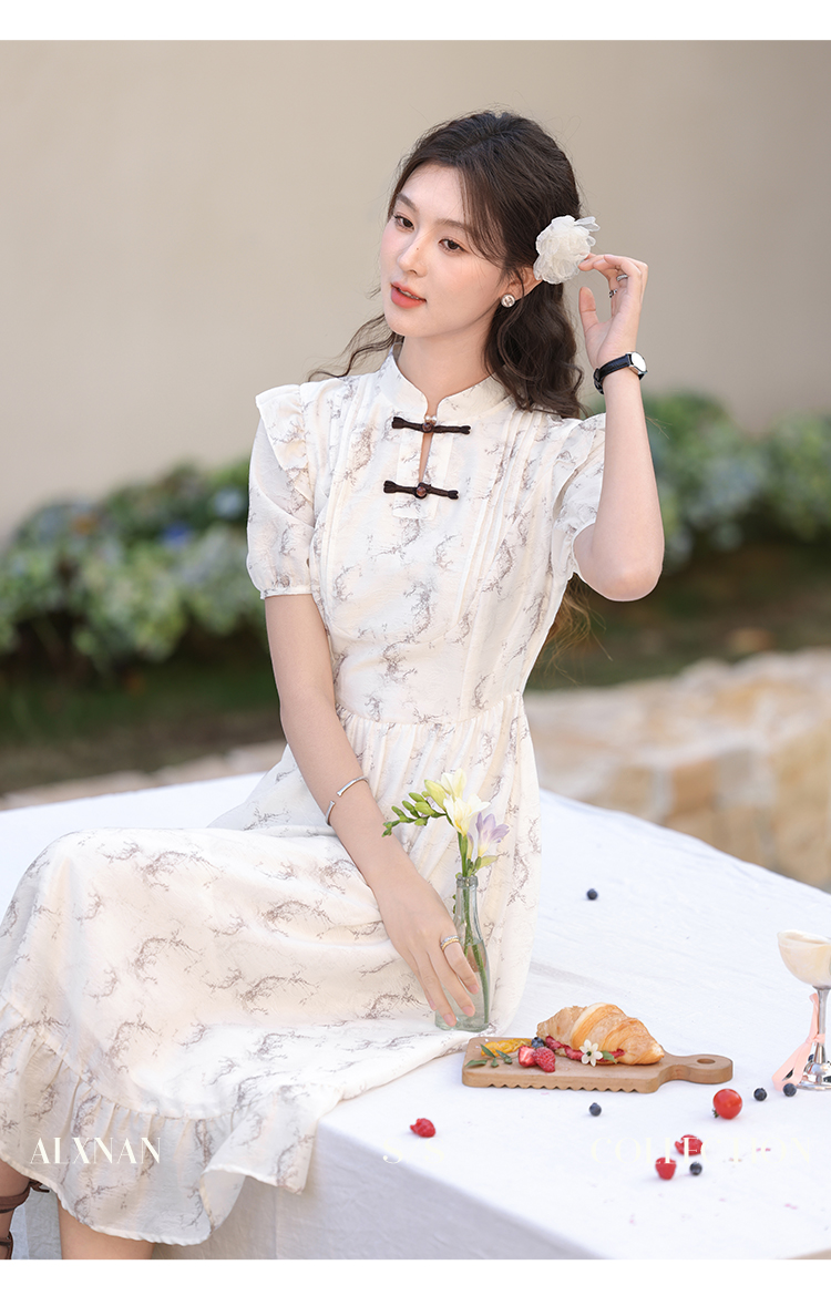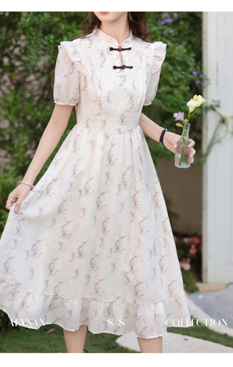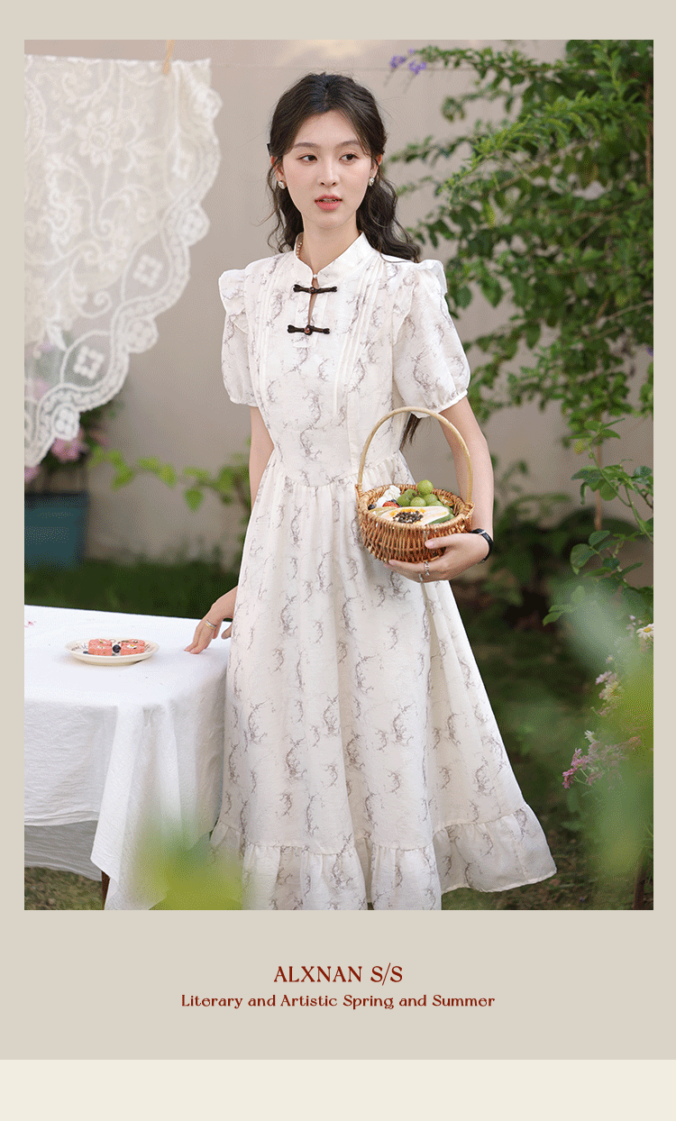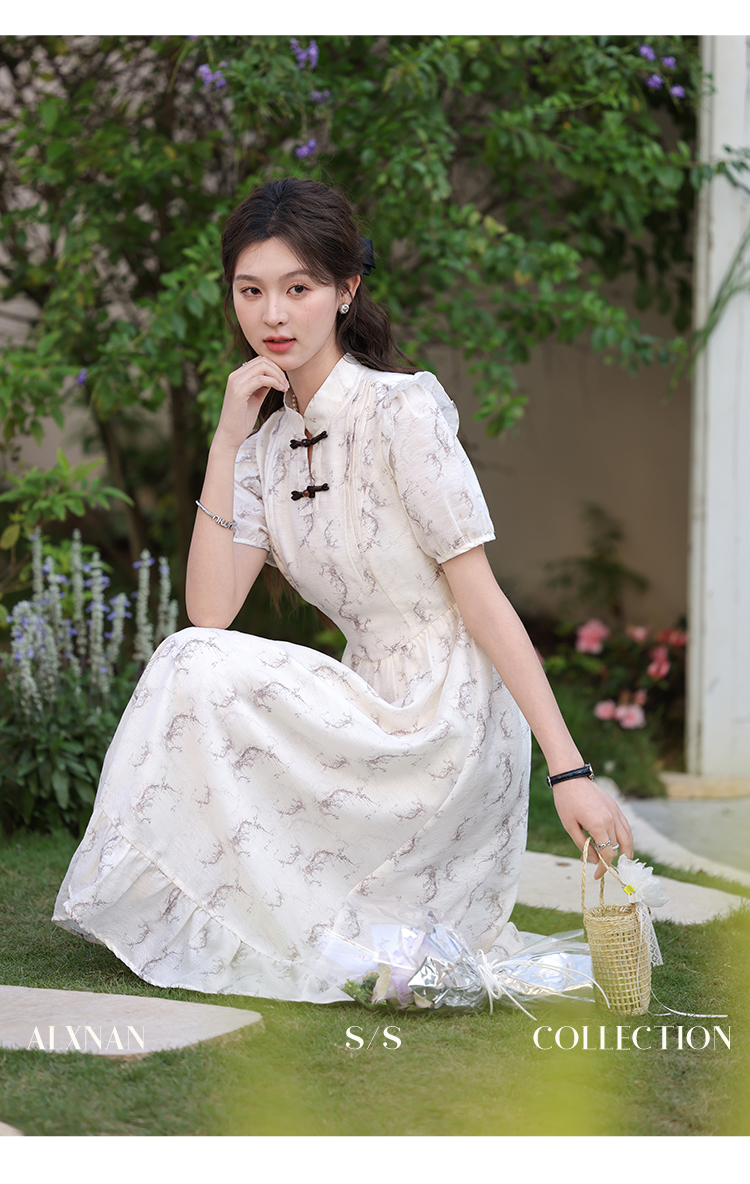 鹿向南《点春枝》新中式印花连衣裙L35265 商品图1