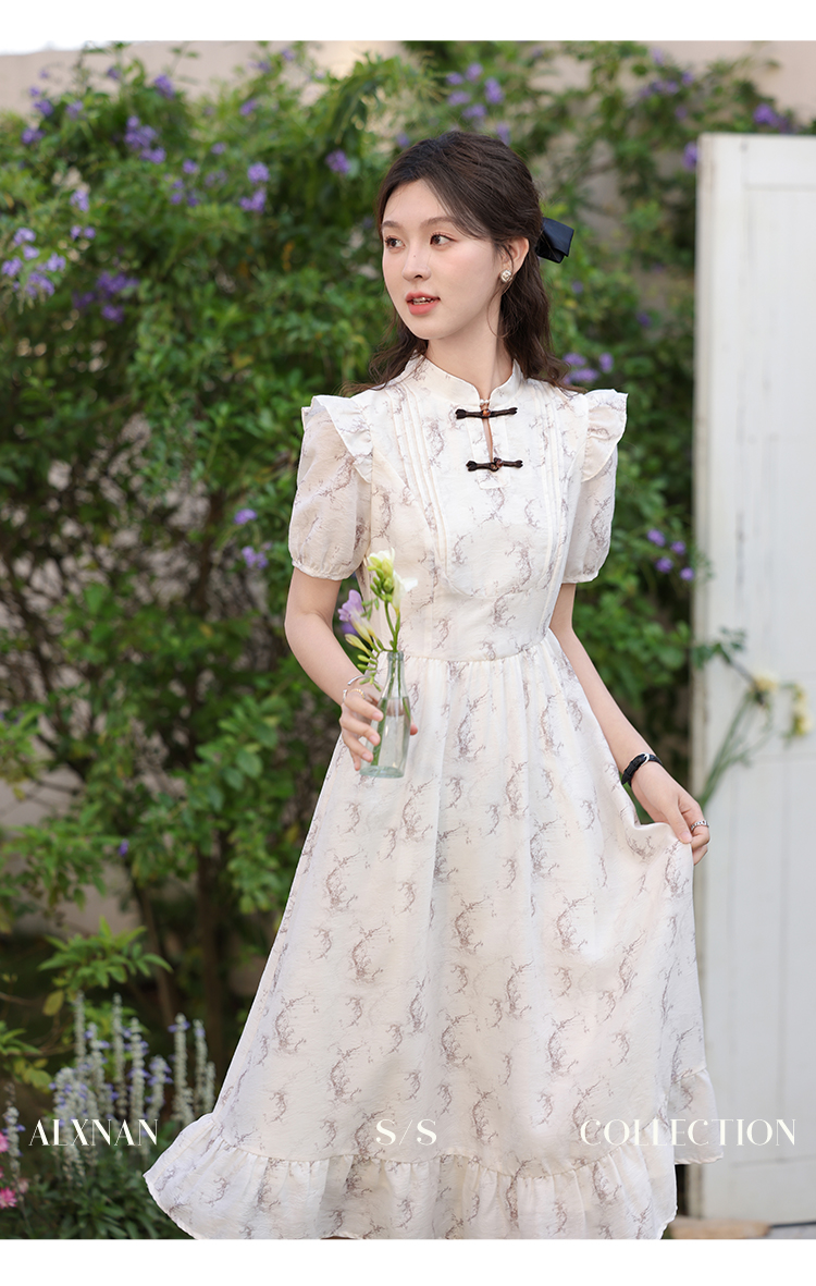 鹿向南《点春枝》新中式印花连衣裙L35265