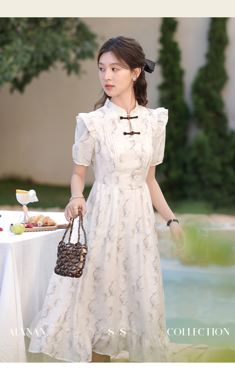 鹿向南《点春枝》新中式印花连衣裙L35265 商品图4