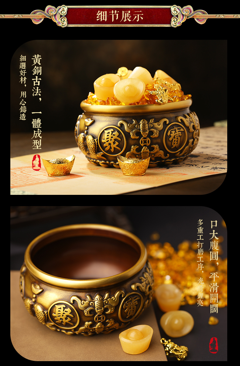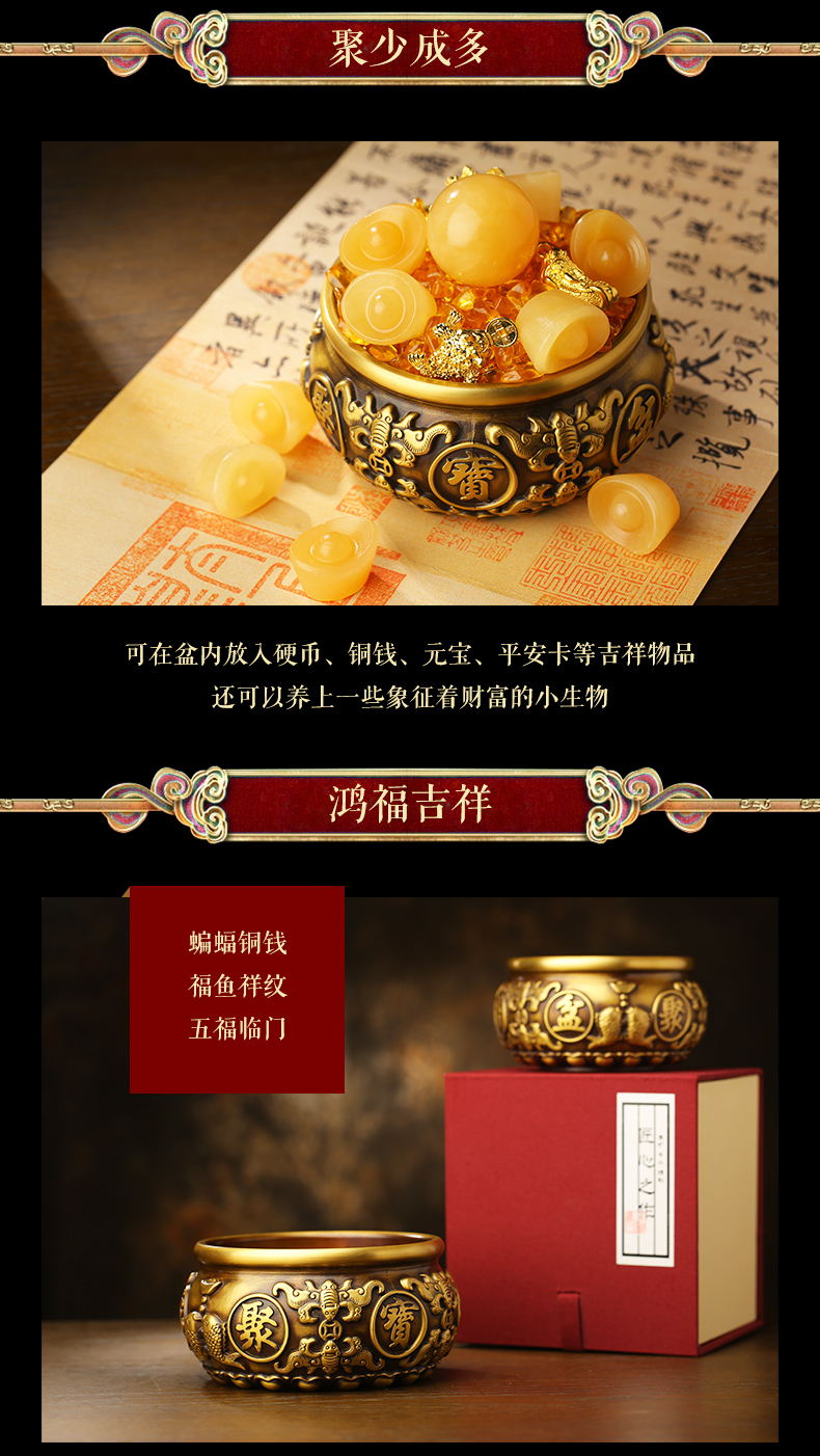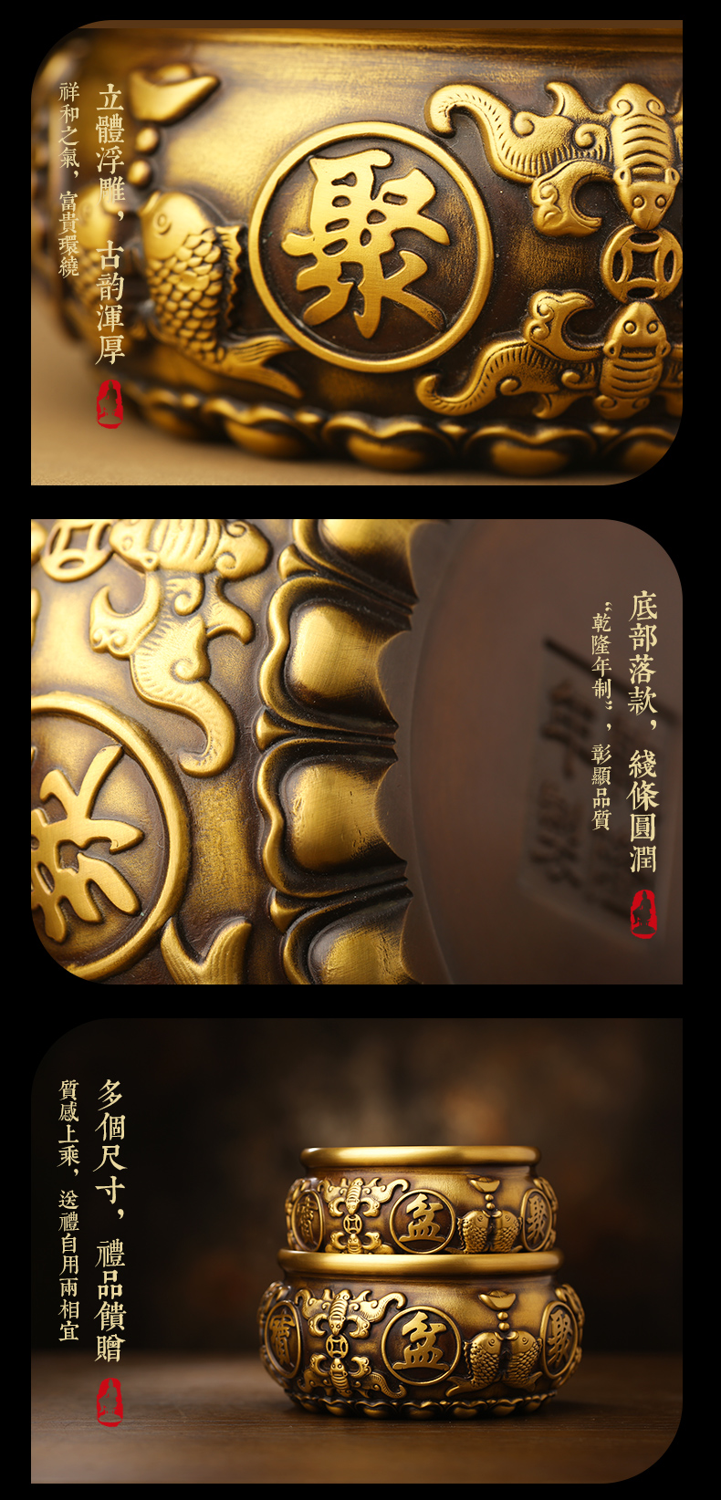 慈元阁黄铜聚宝盆摆件五福临门家用客厅玄关缸装饰礼品