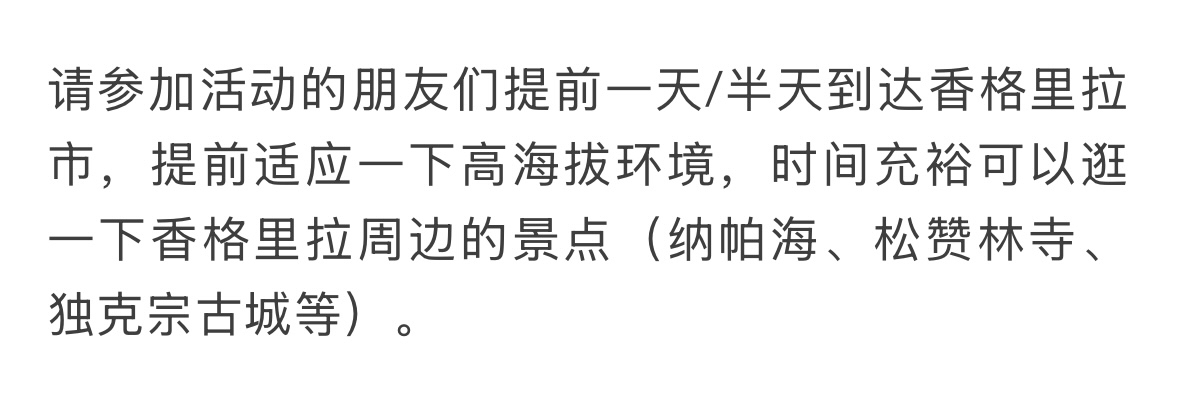 香格里拉出发往返两天行程1180元/人