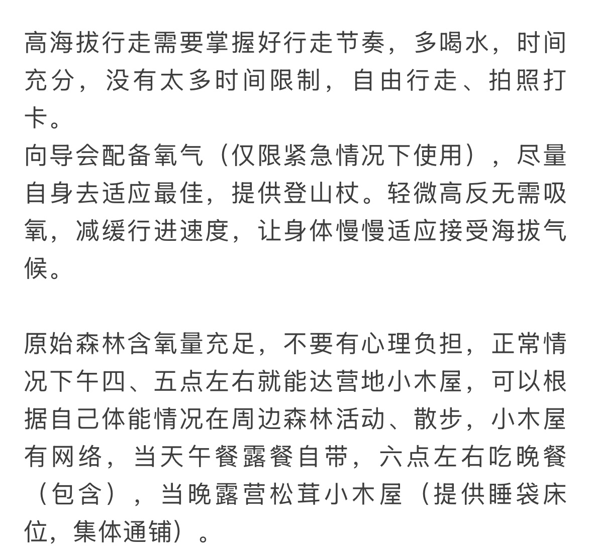 4.高反风险:部分地区海拔较高,易发生高反现象。参与者在攀登或徒步过程中应适应高原环境,避免出现高反症状。