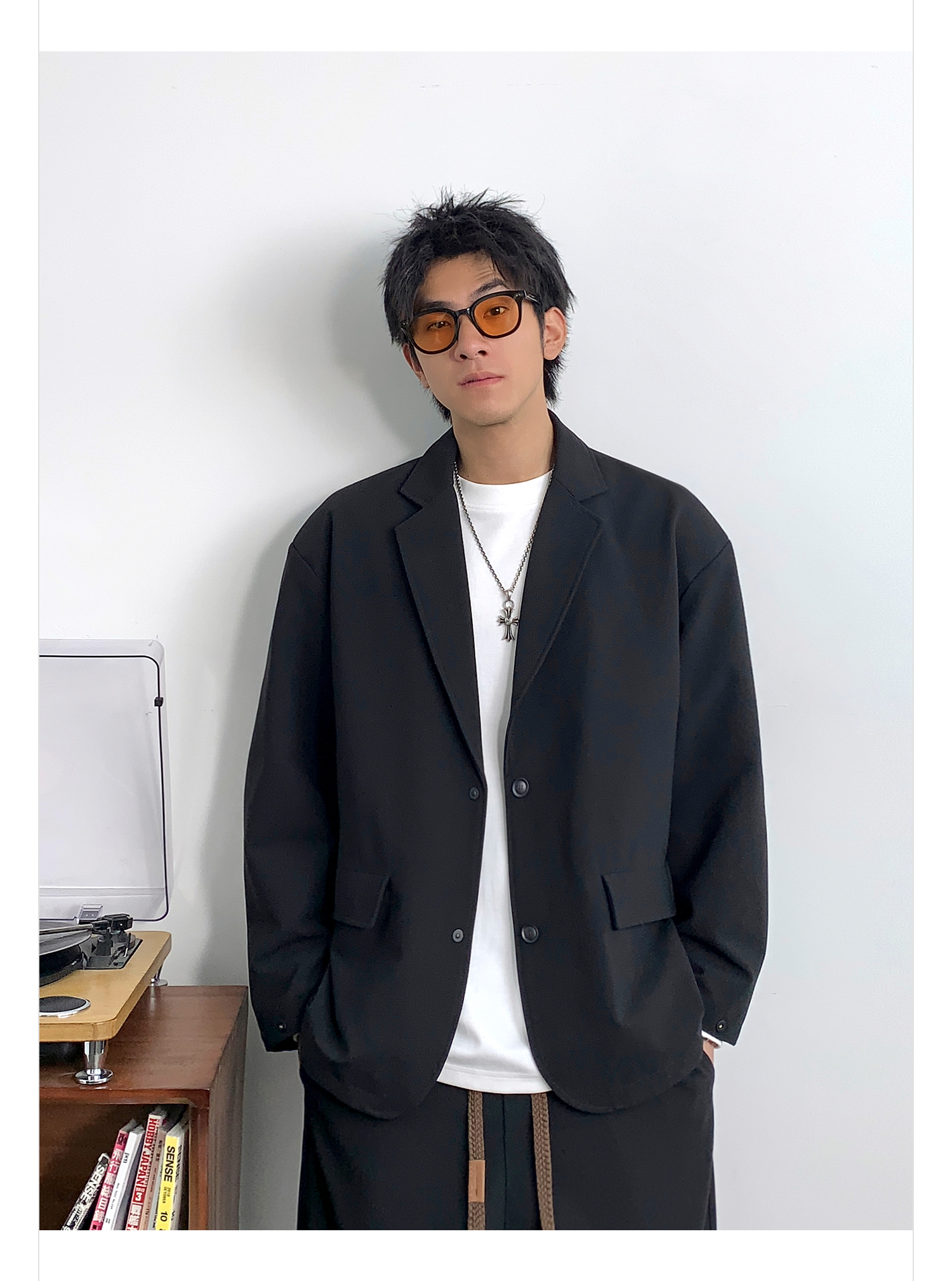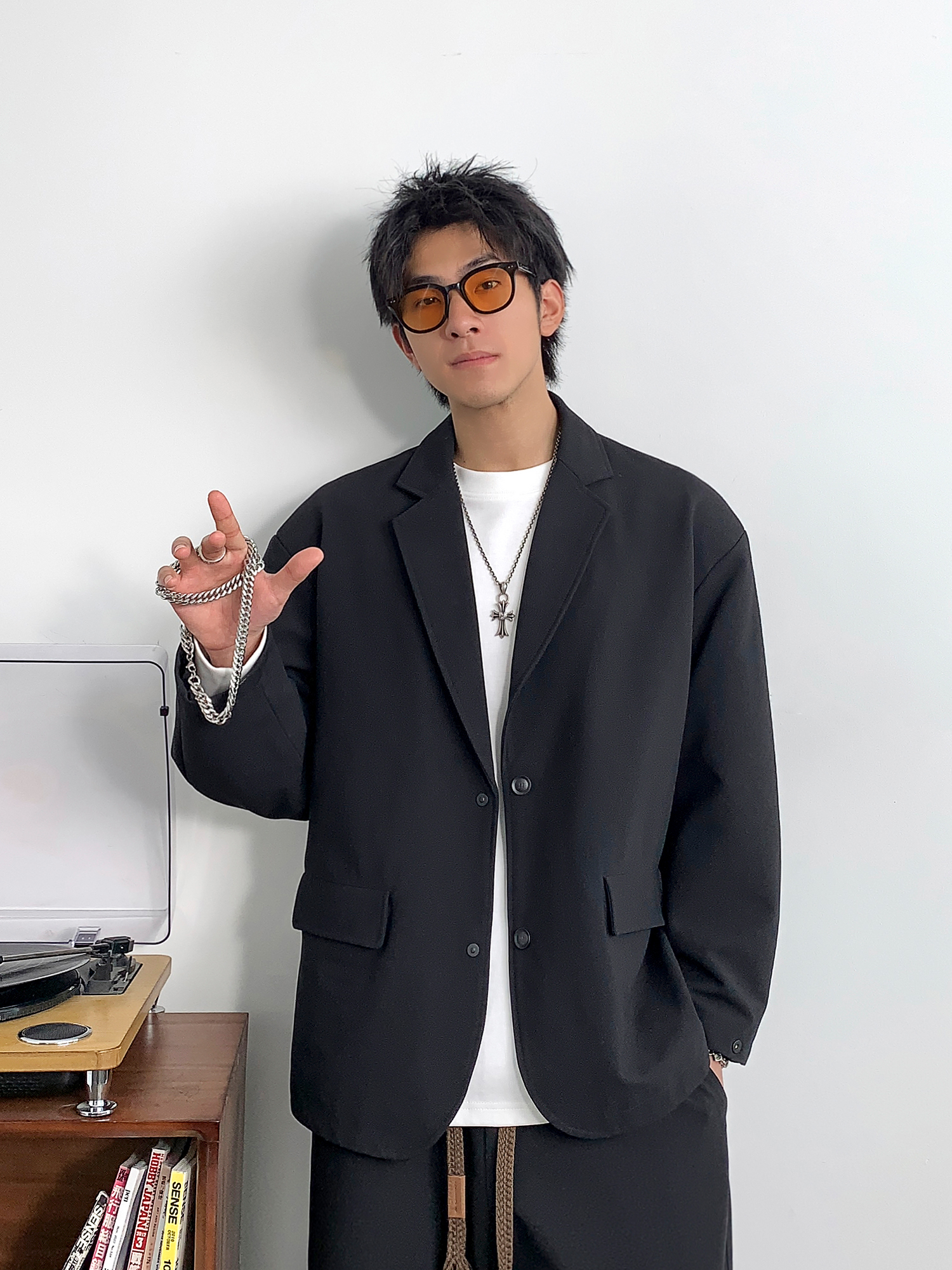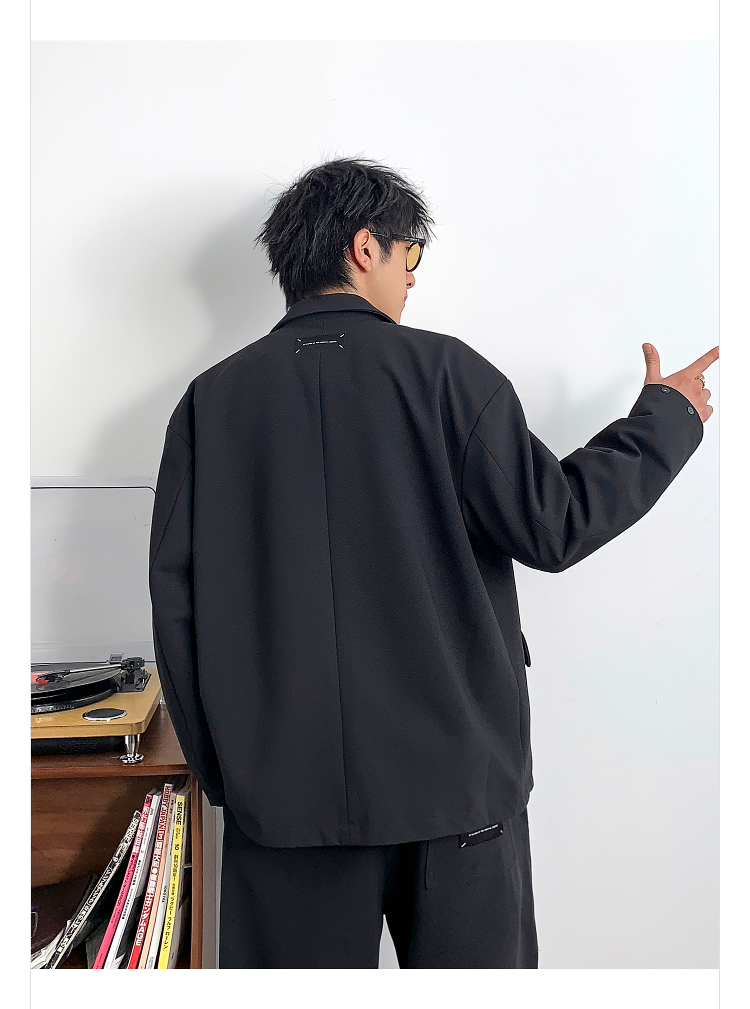 徐太浪黑色时尚便服单西装外套男春季2024新款潮牌单排扣大码西服
