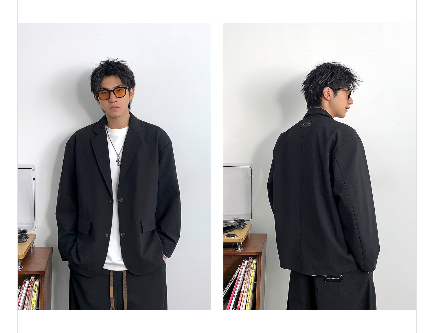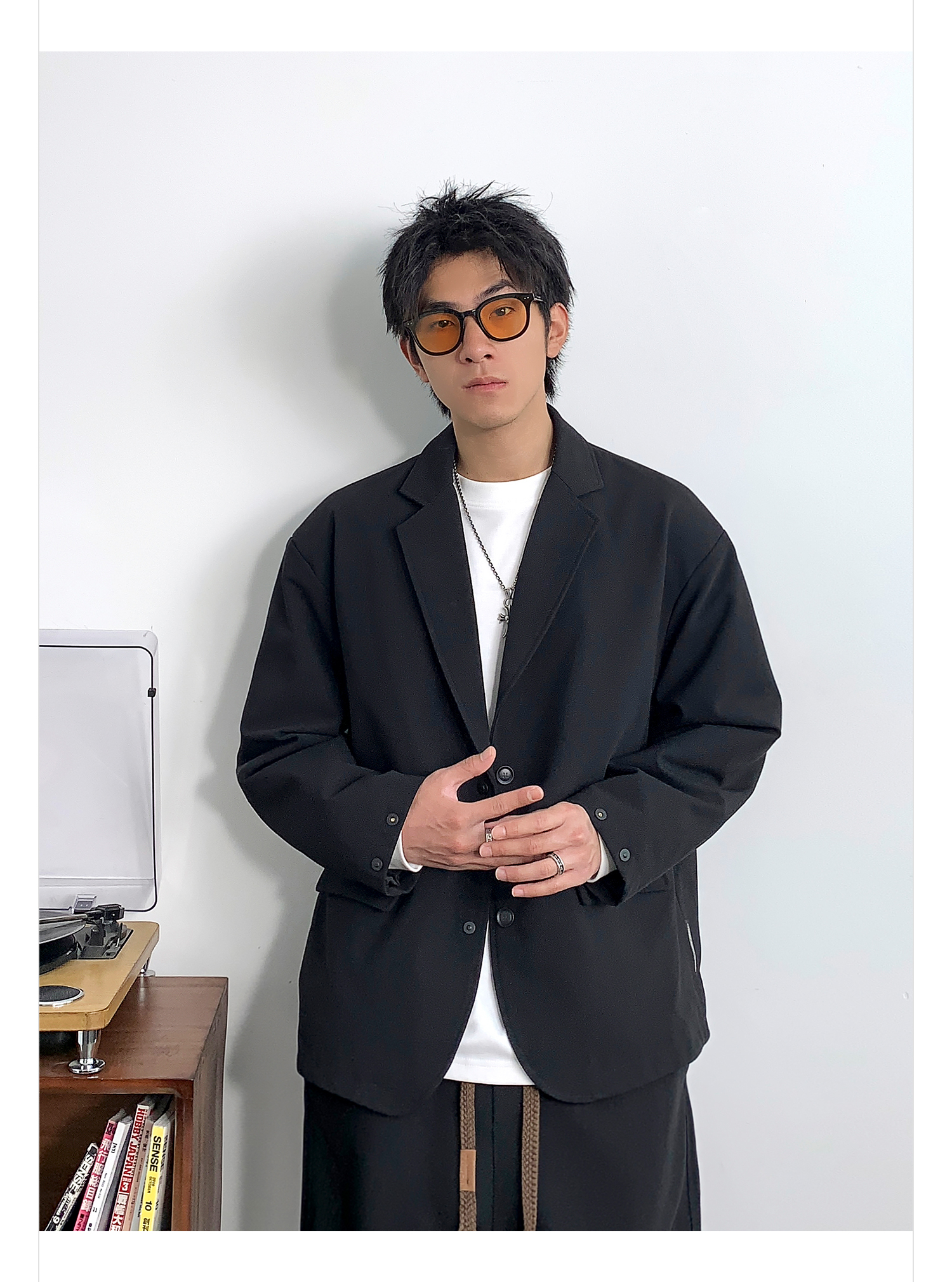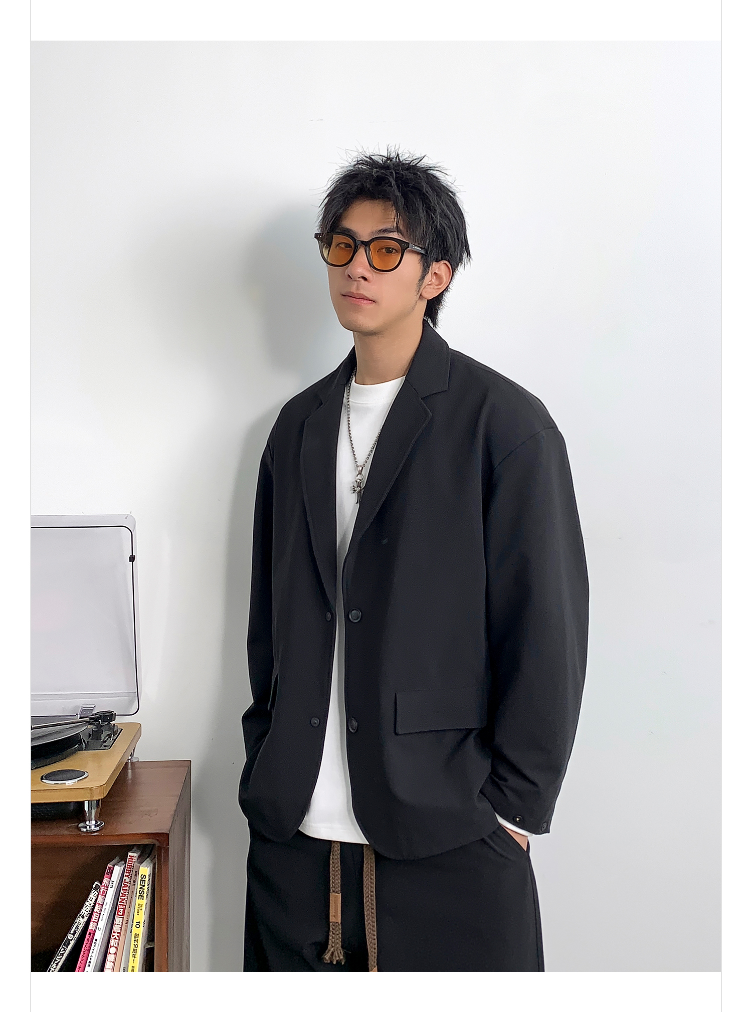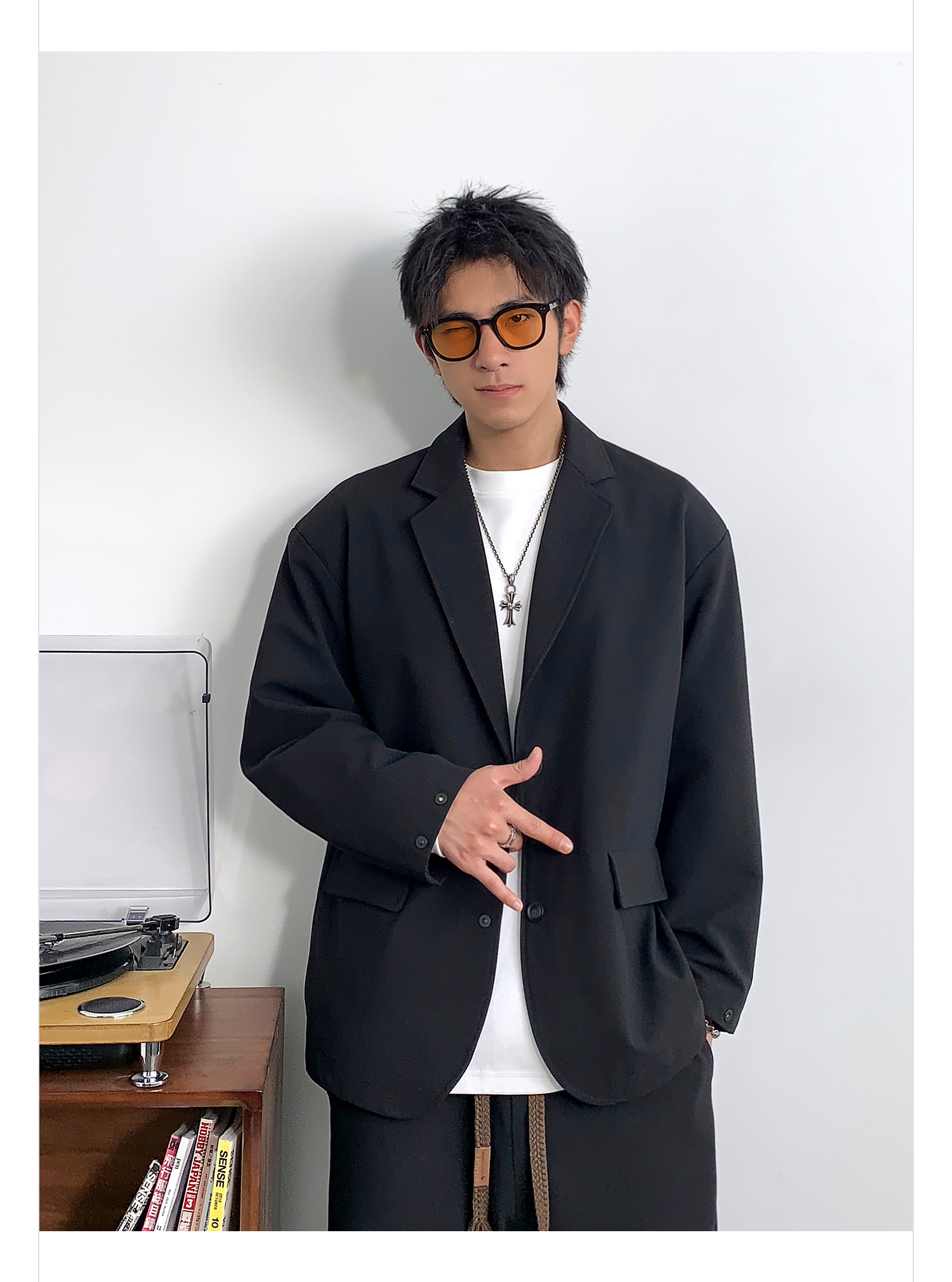 徐太浪黑色时尚便服单西装外套男春季2024新款潮牌单排扣大码西服