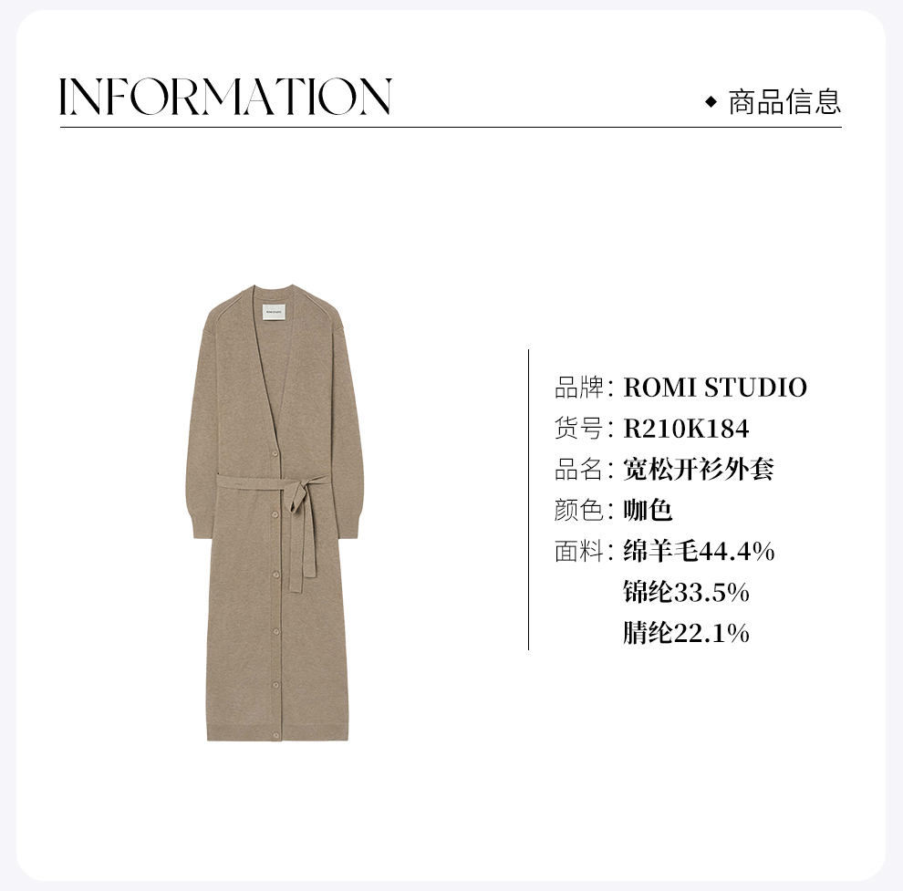 ROMI STUDIO美利奴羊毛混纺休闲薄款针织开衫R210K184