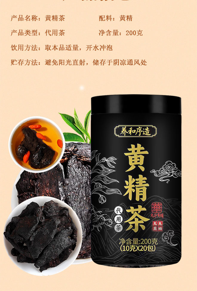 【暖暖专享】黄精茶 真九蒸九晒 九华多花好黄精 200g/罐(10g*20包)