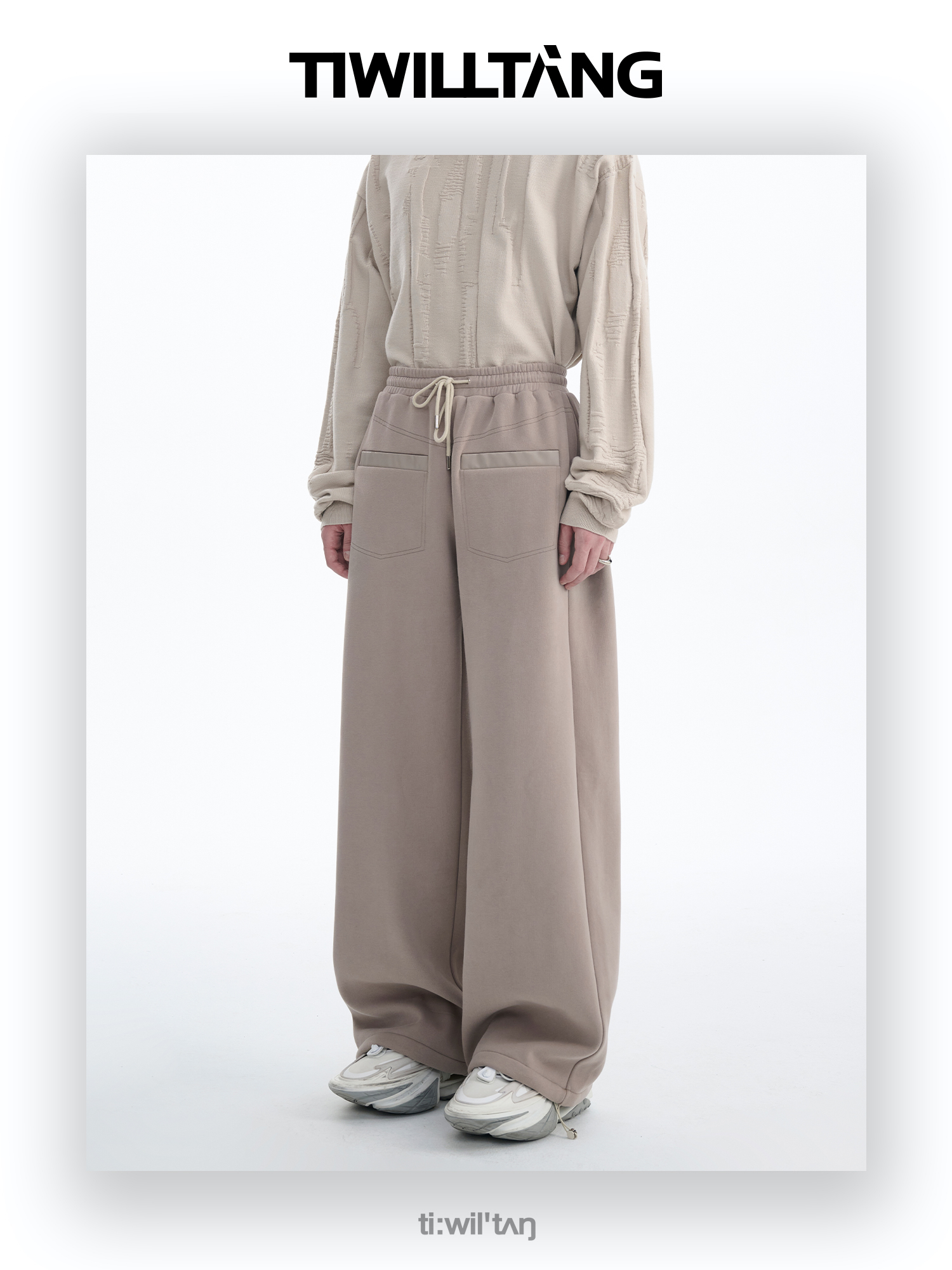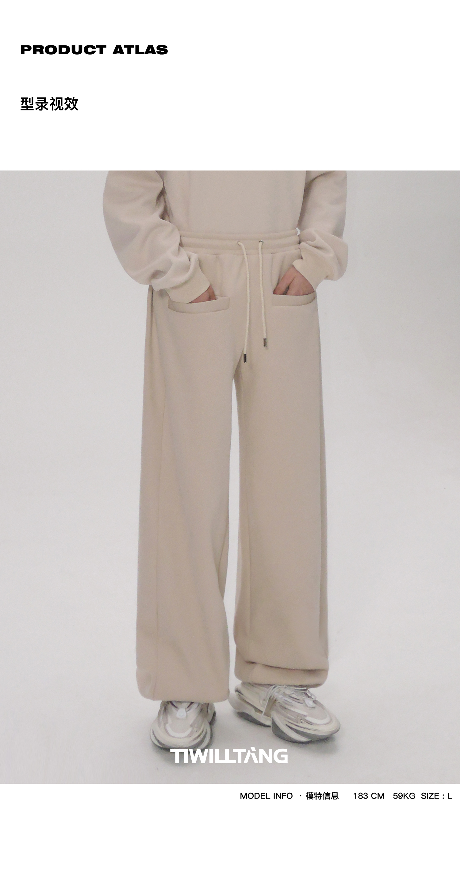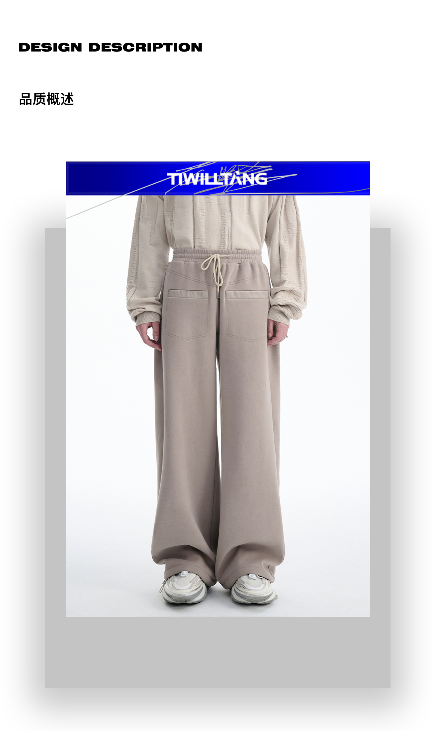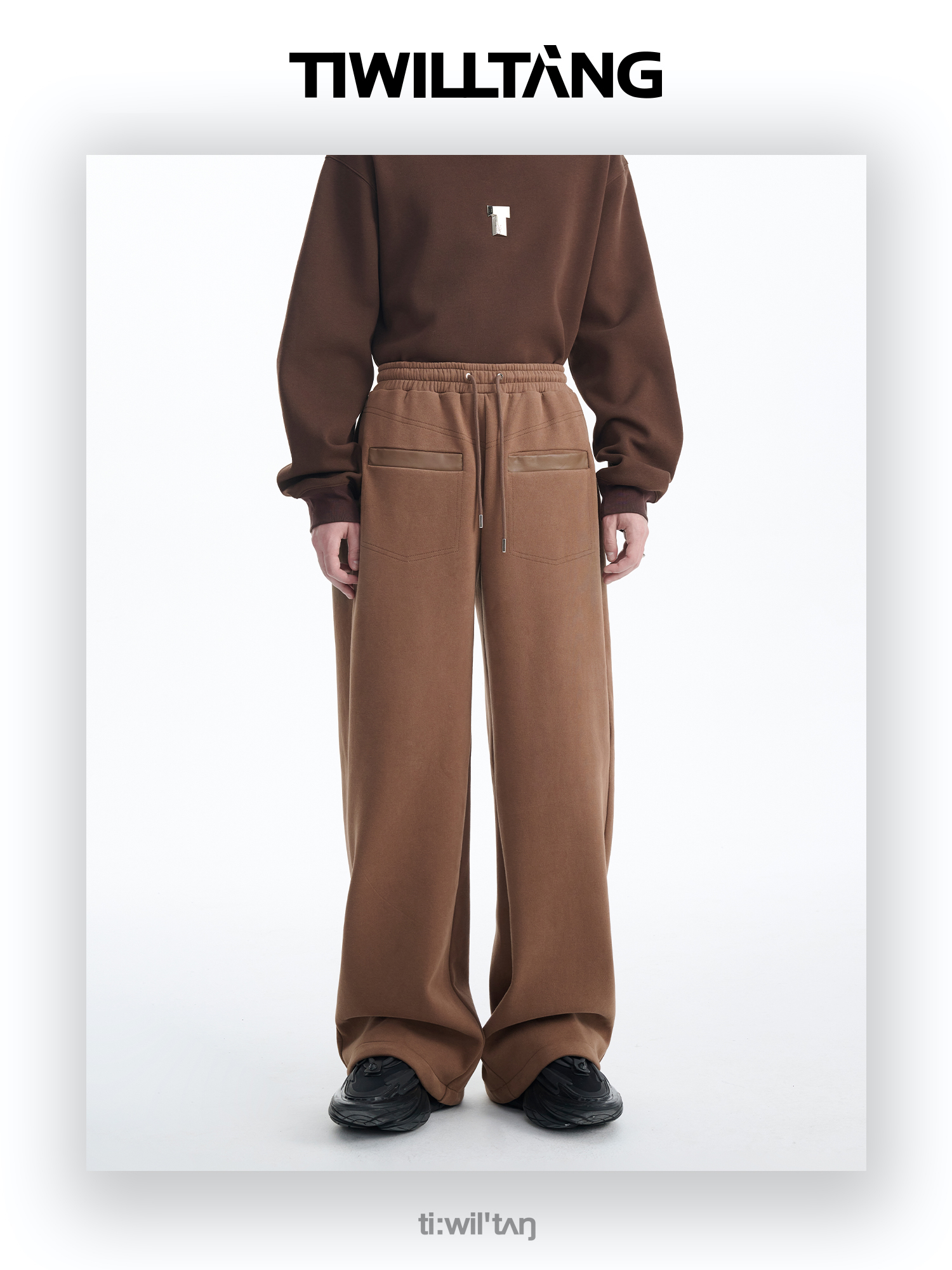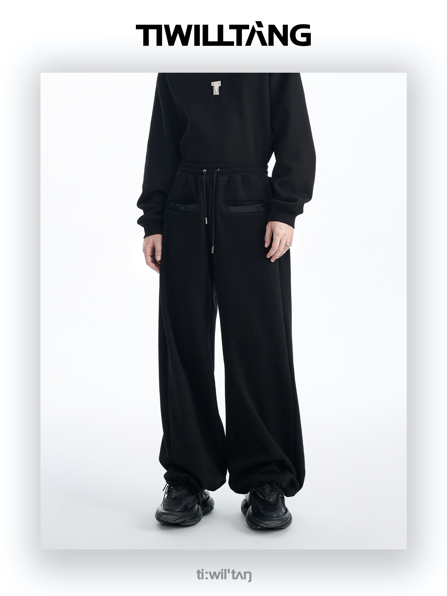 TIWILLTANG启世录“炽奕颂誉”宝藏加绒加厚拼皮抽绳休闲慵懒卫裤