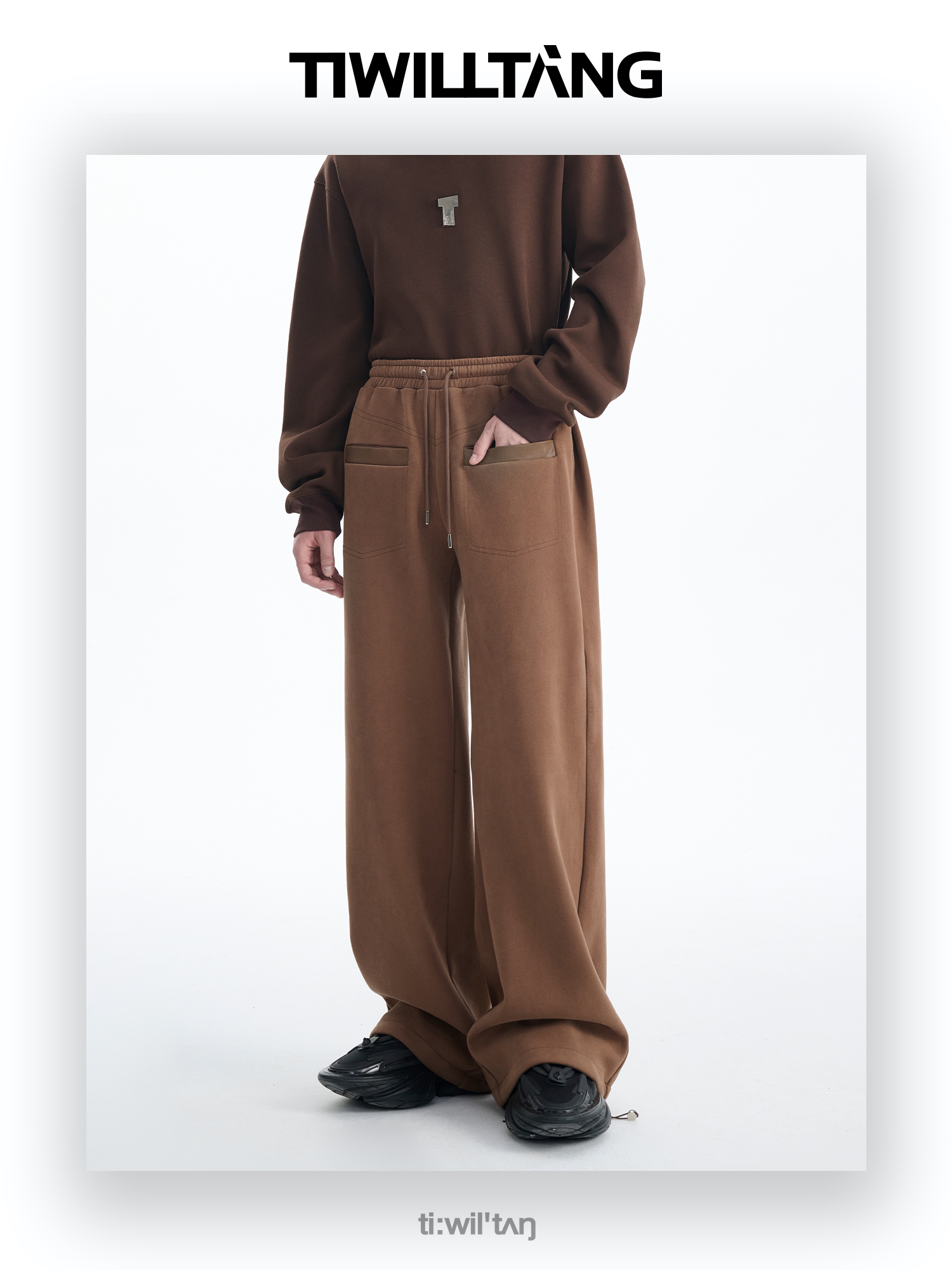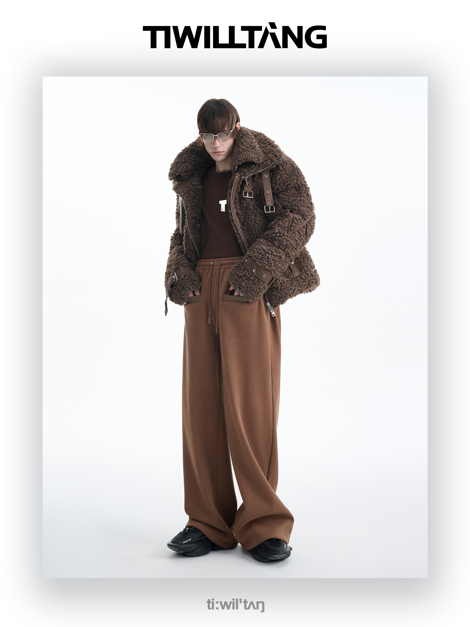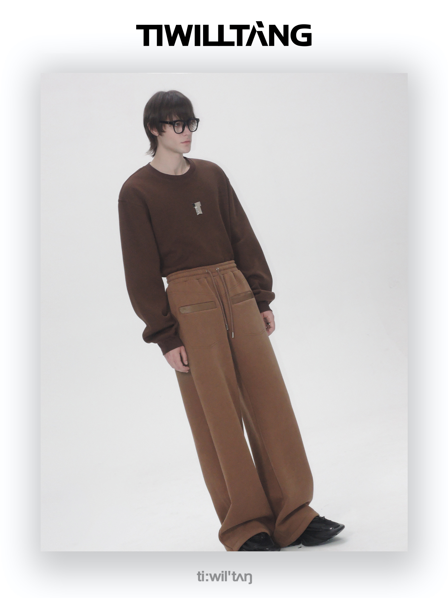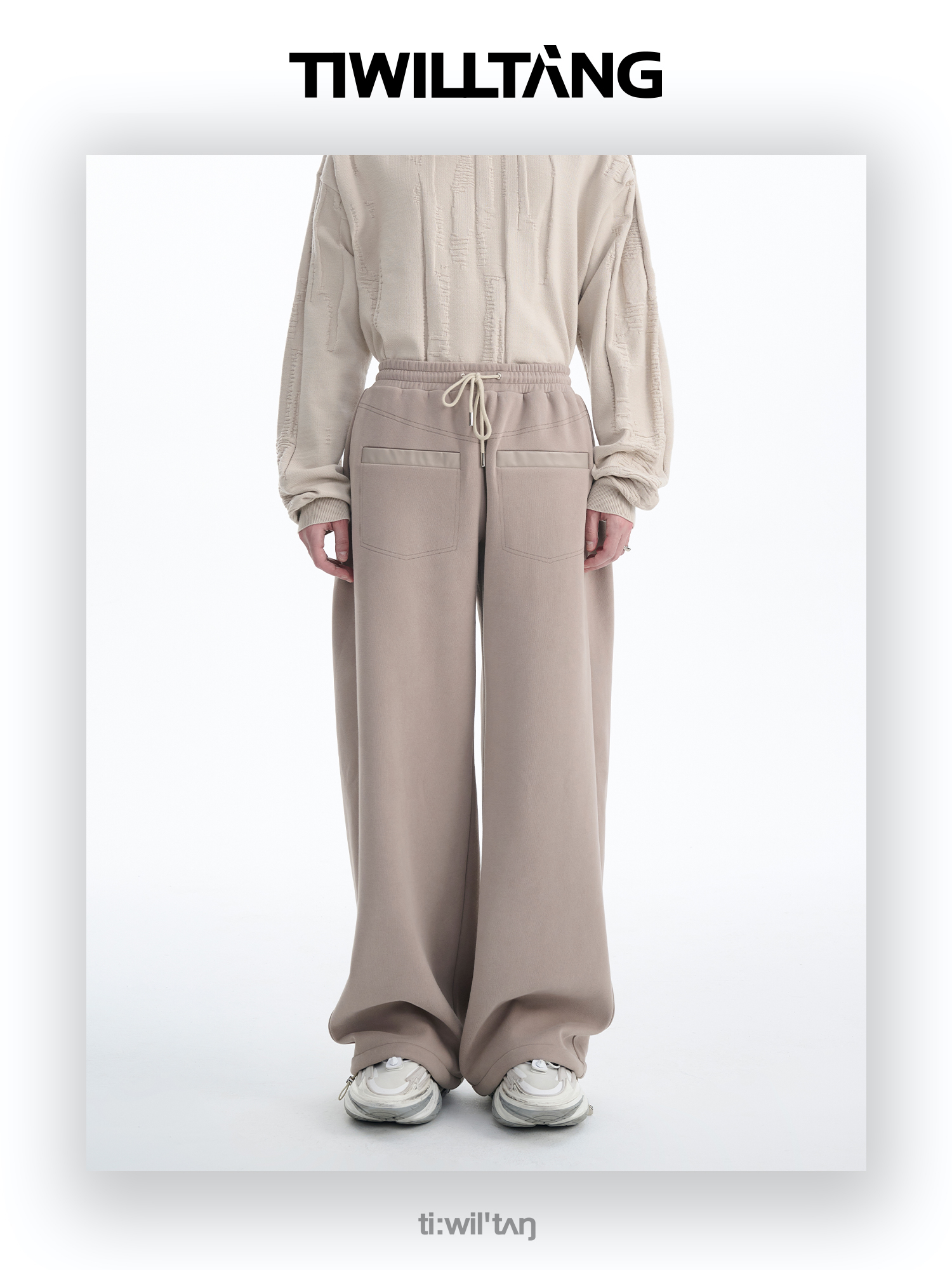 TIWILLTANG启世录“炽奕颂誉”宝藏加绒加厚拼皮抽绳休闲慵懒卫裤