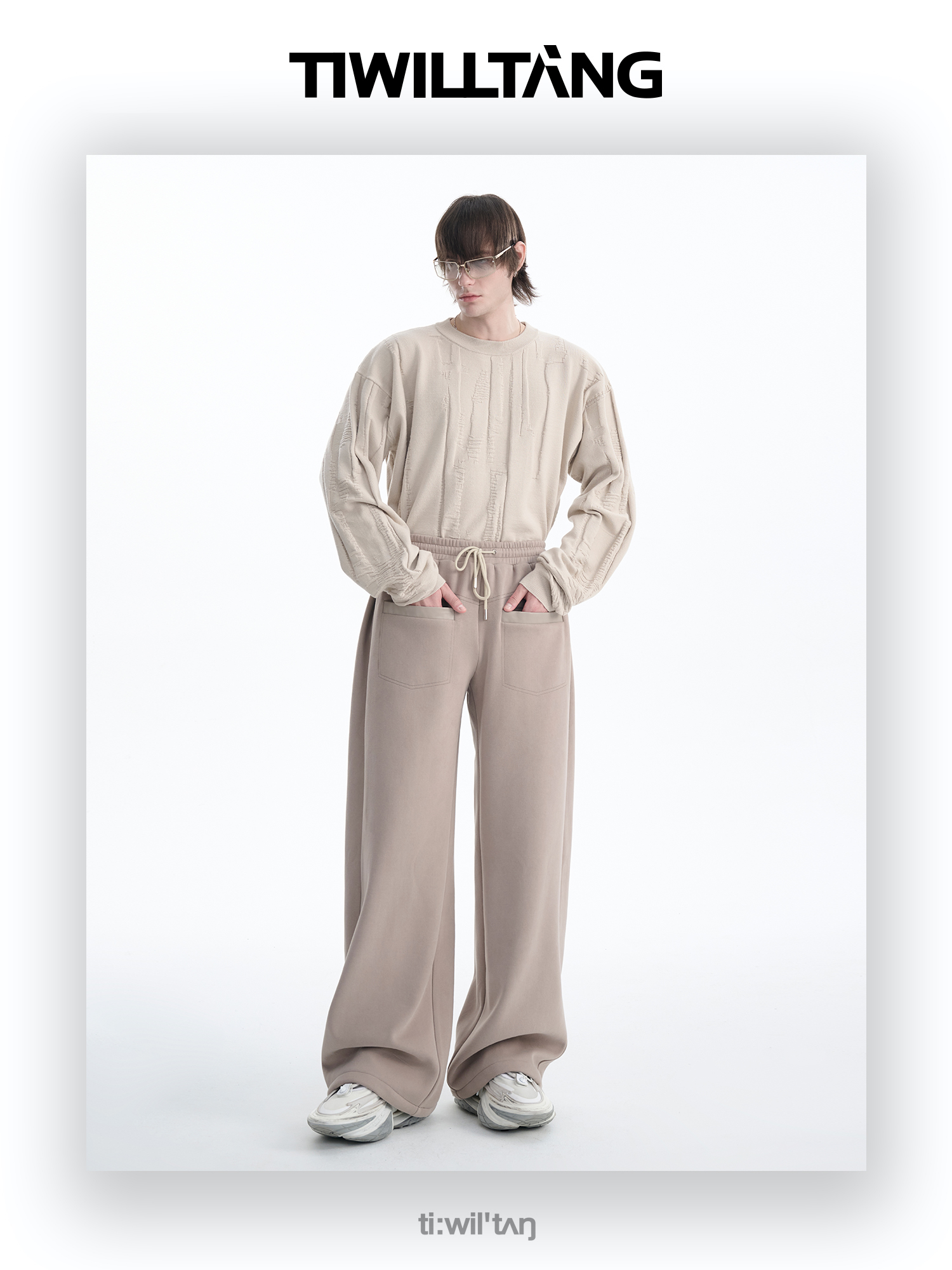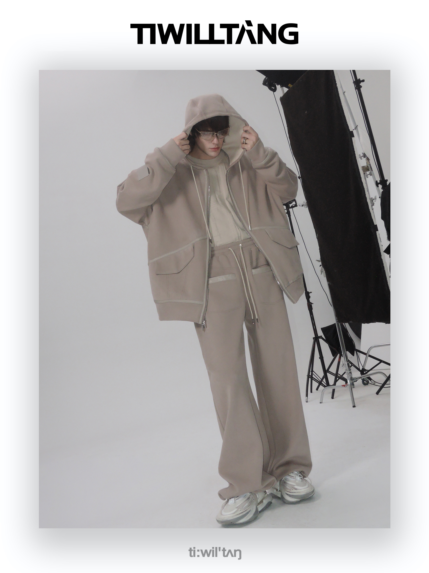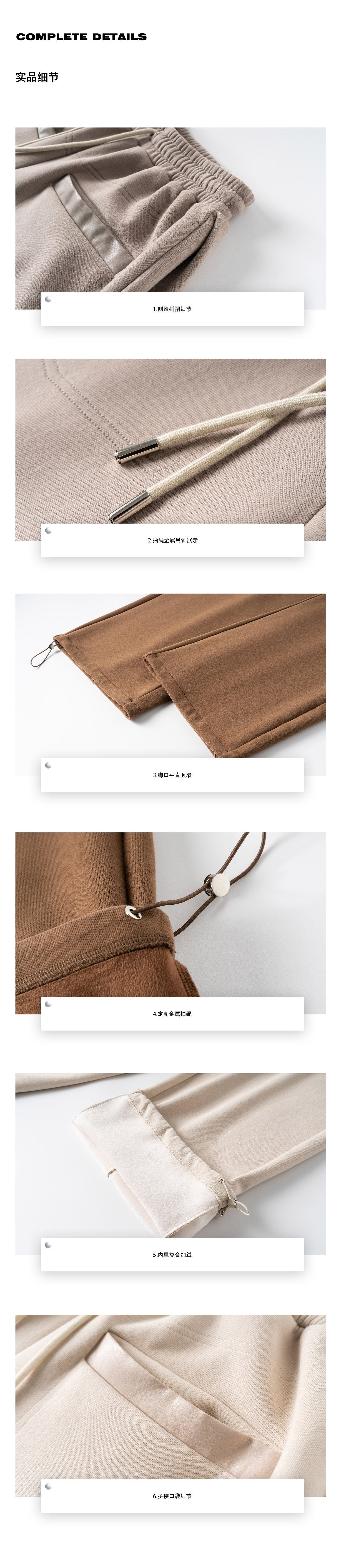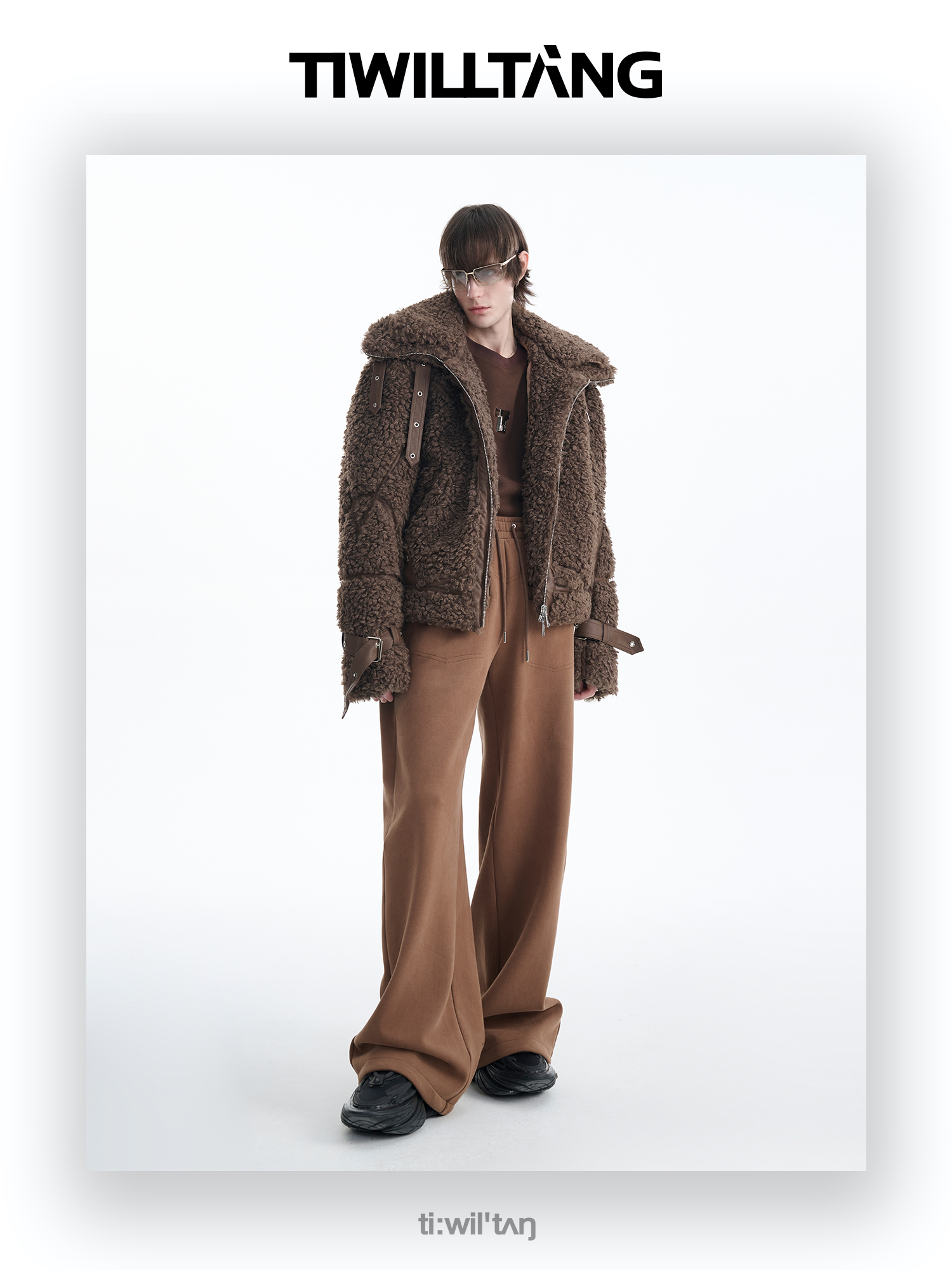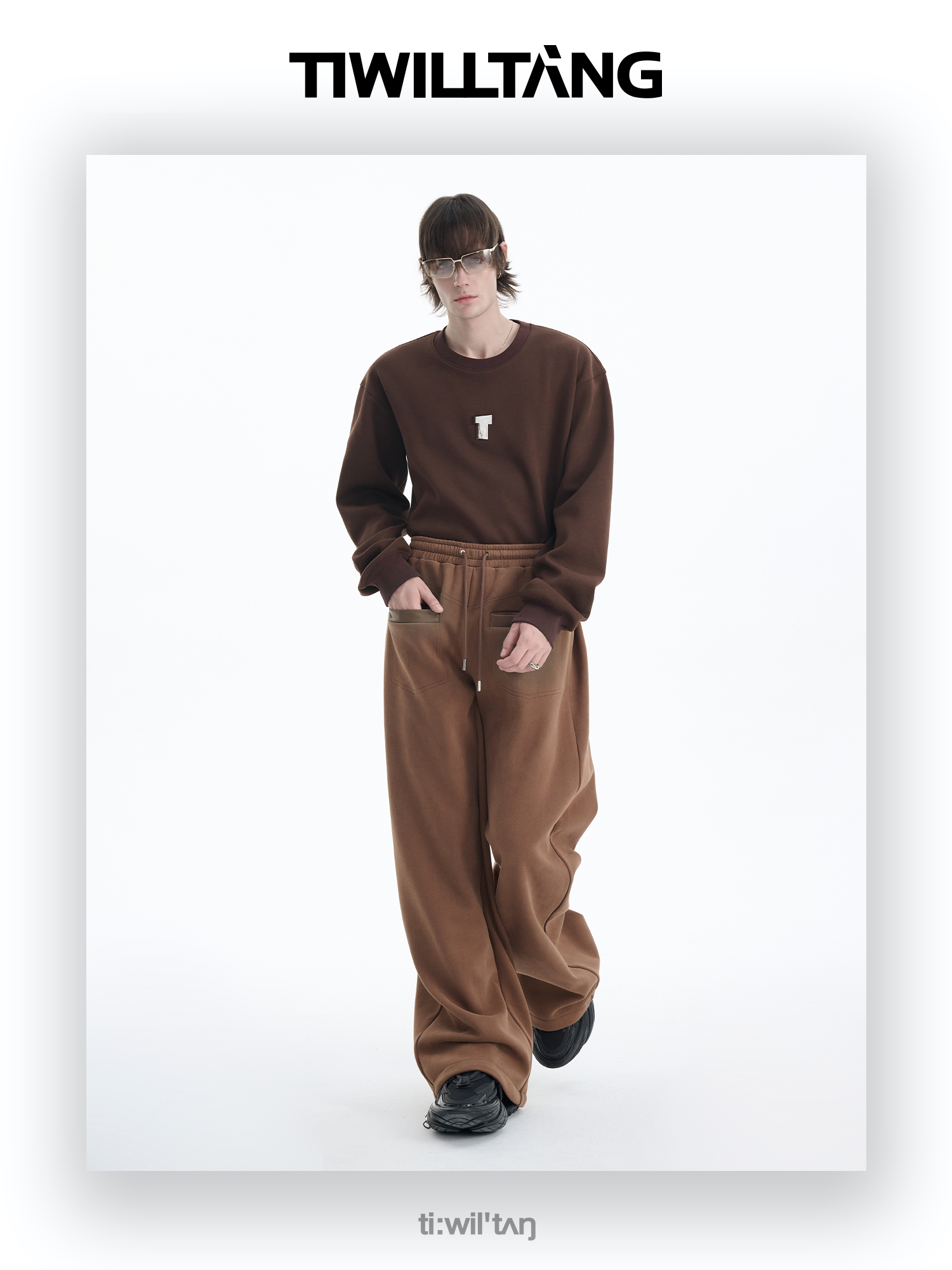 TIWILLTANG启世录“炽奕颂誉”宝藏加绒加厚拼皮抽绳休闲慵懒卫裤