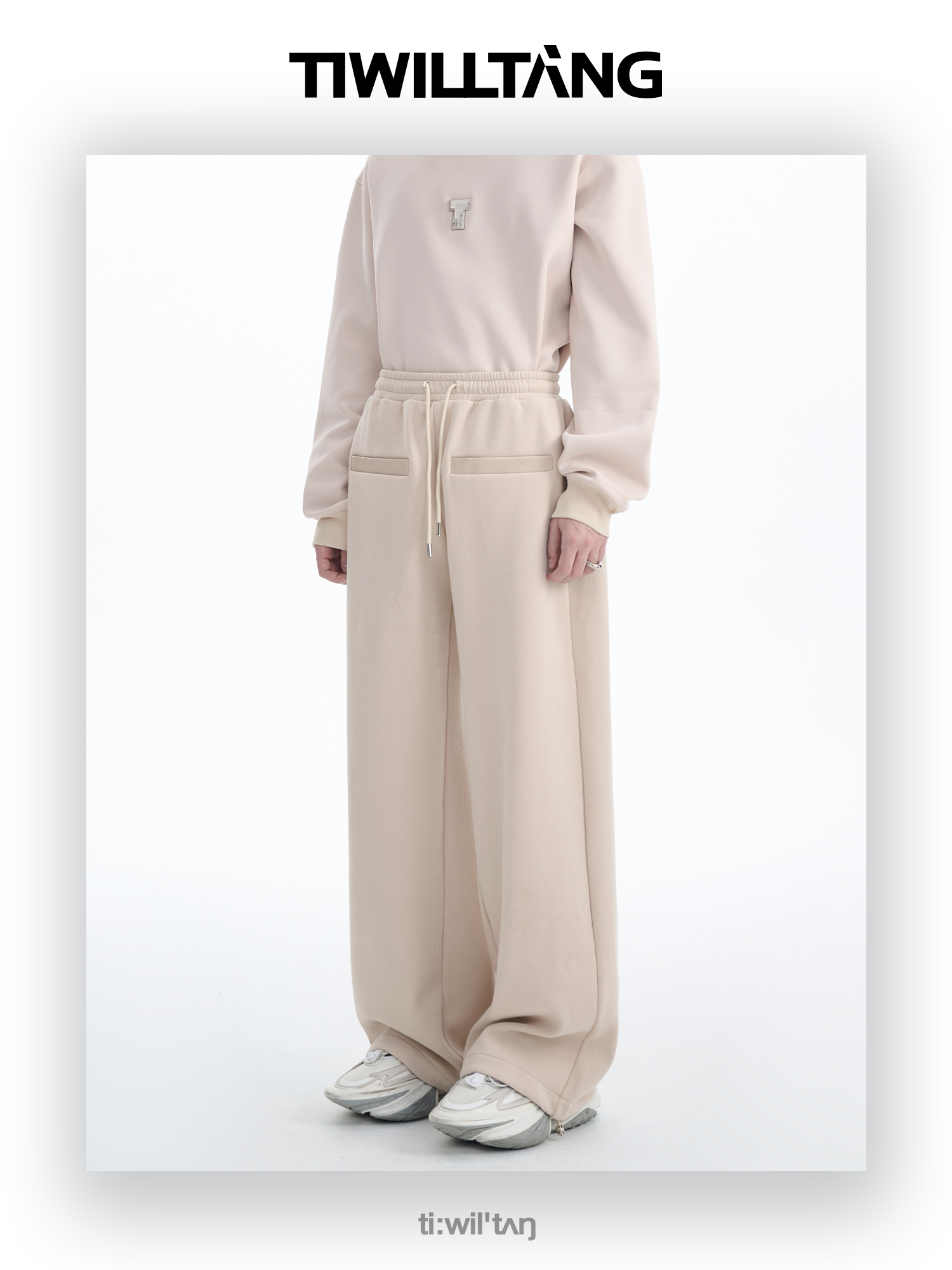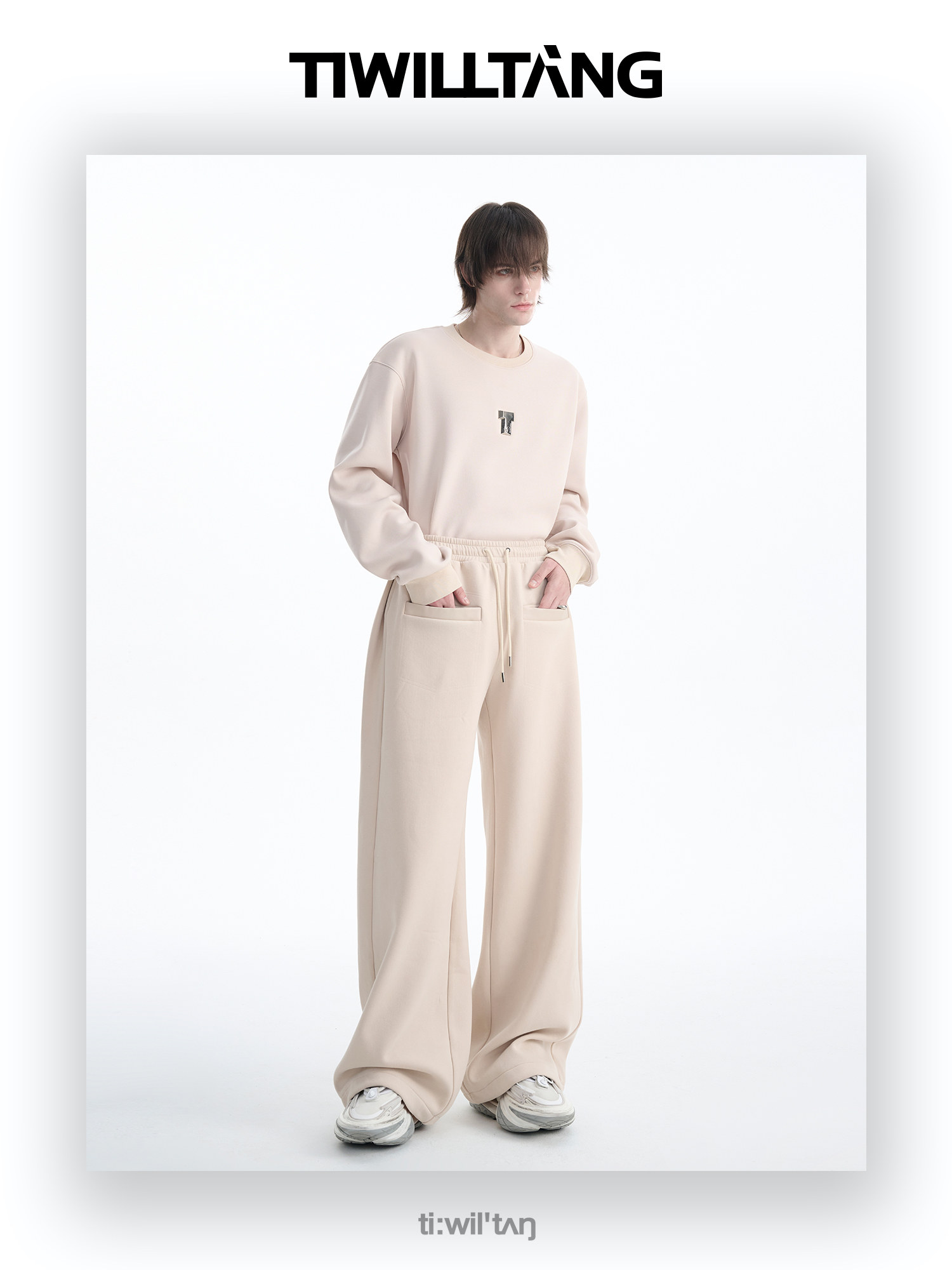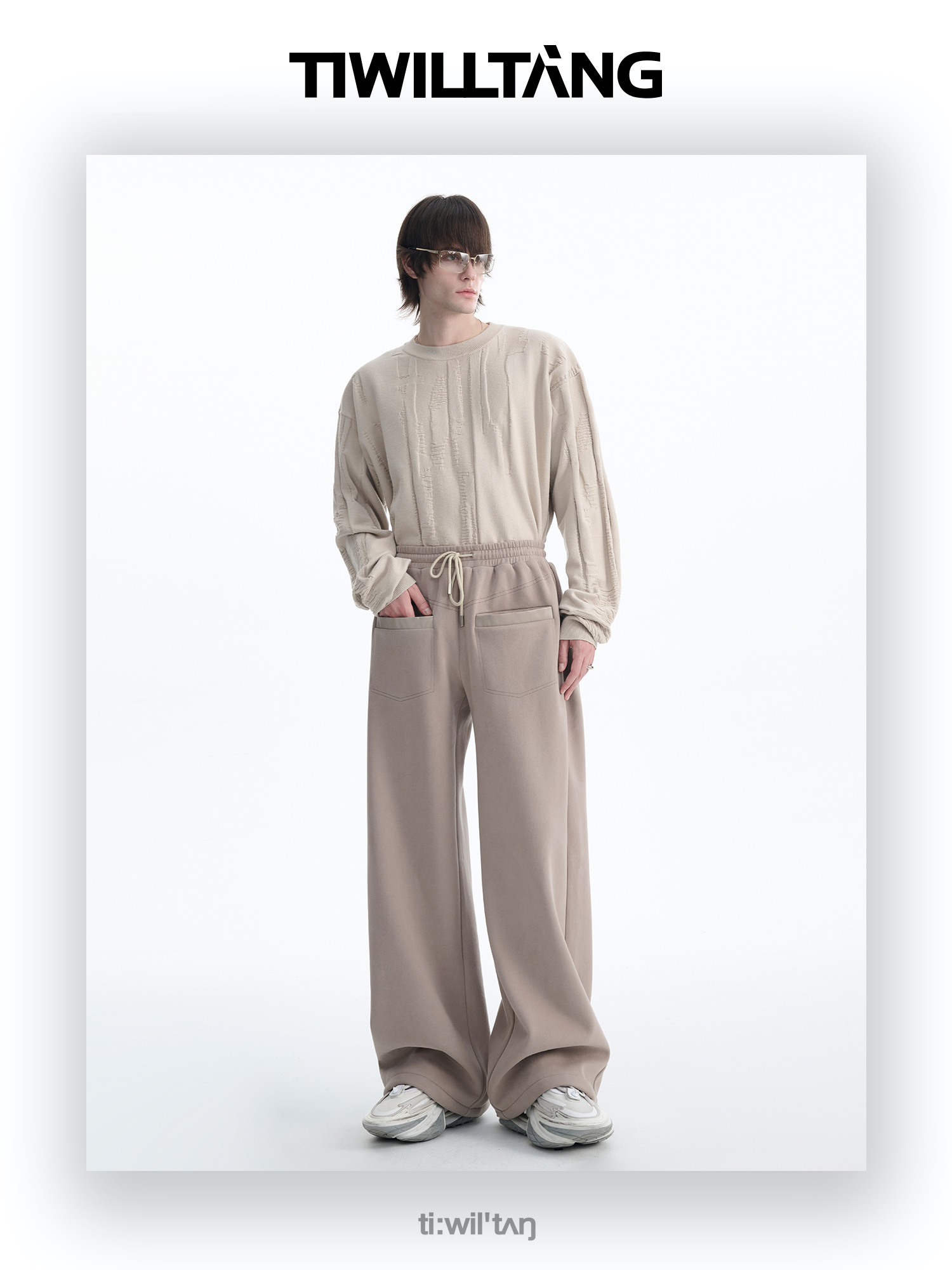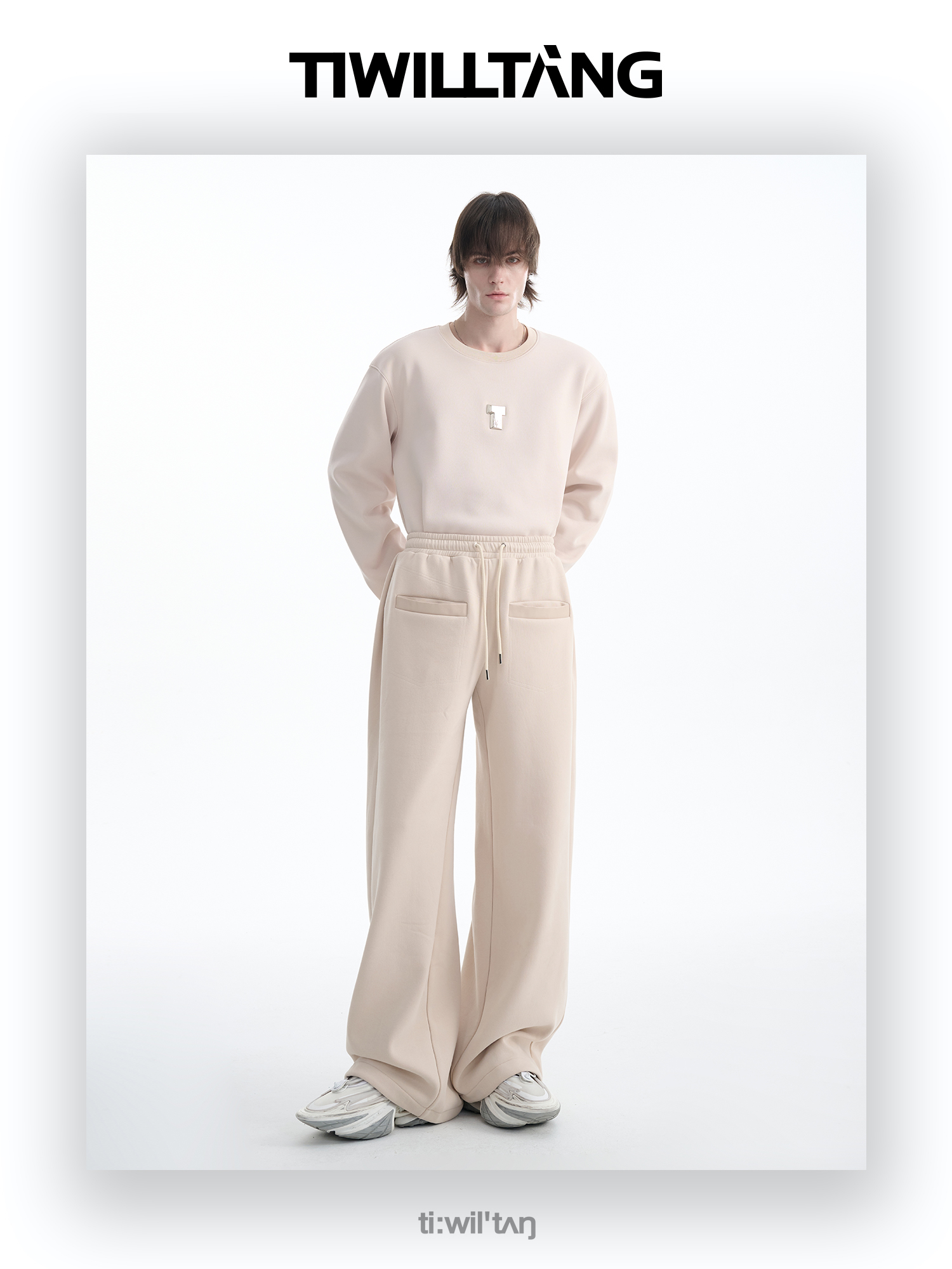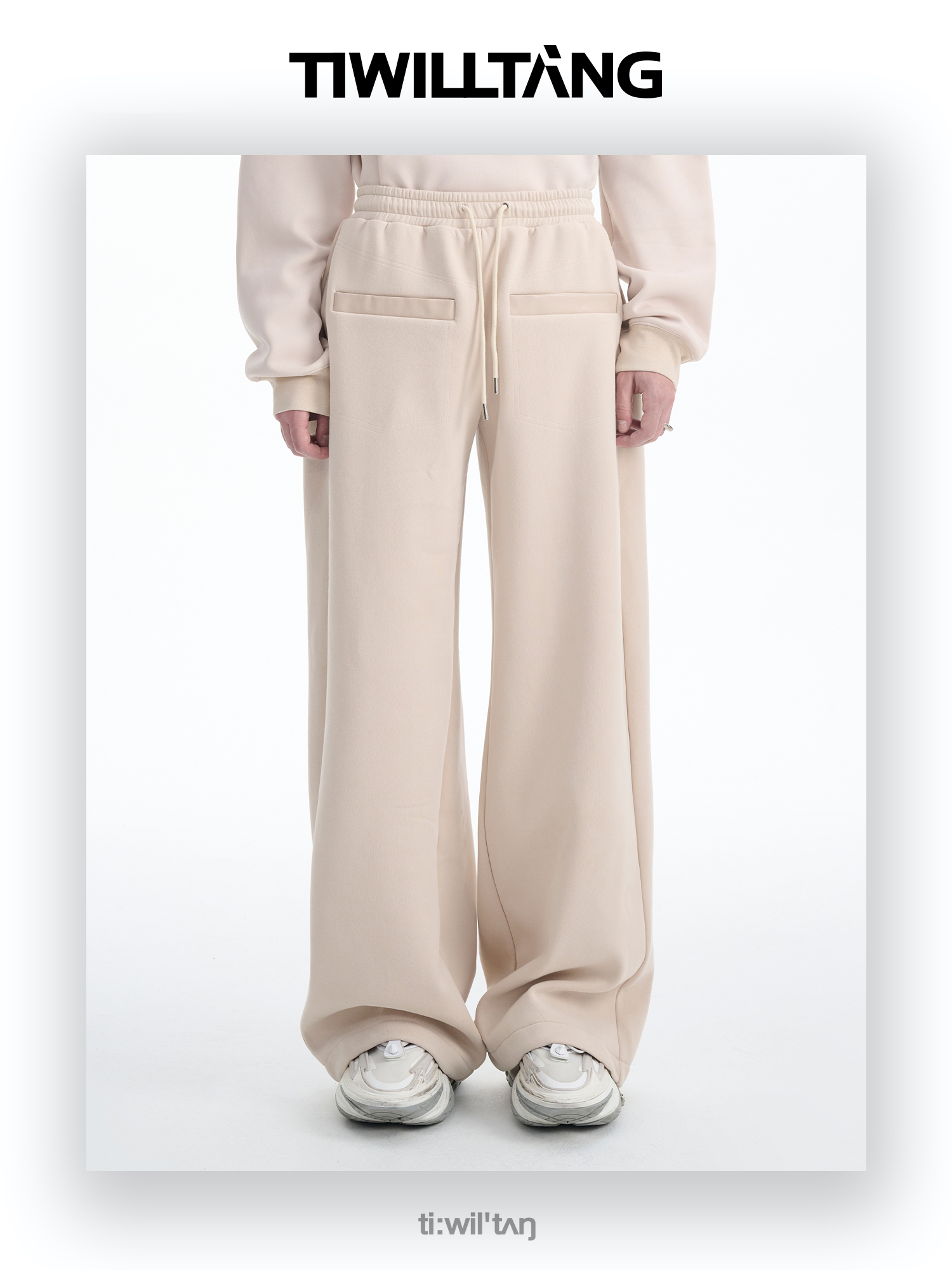 TIWILLTANG启世录“炽奕颂誉”宝藏加绒加厚拼皮抽绳休闲慵懒卫裤