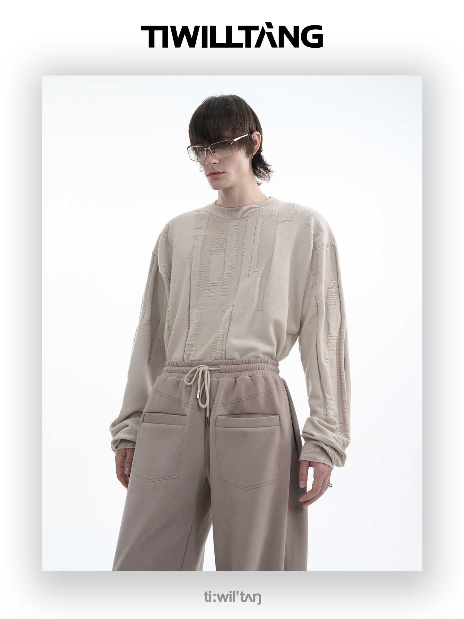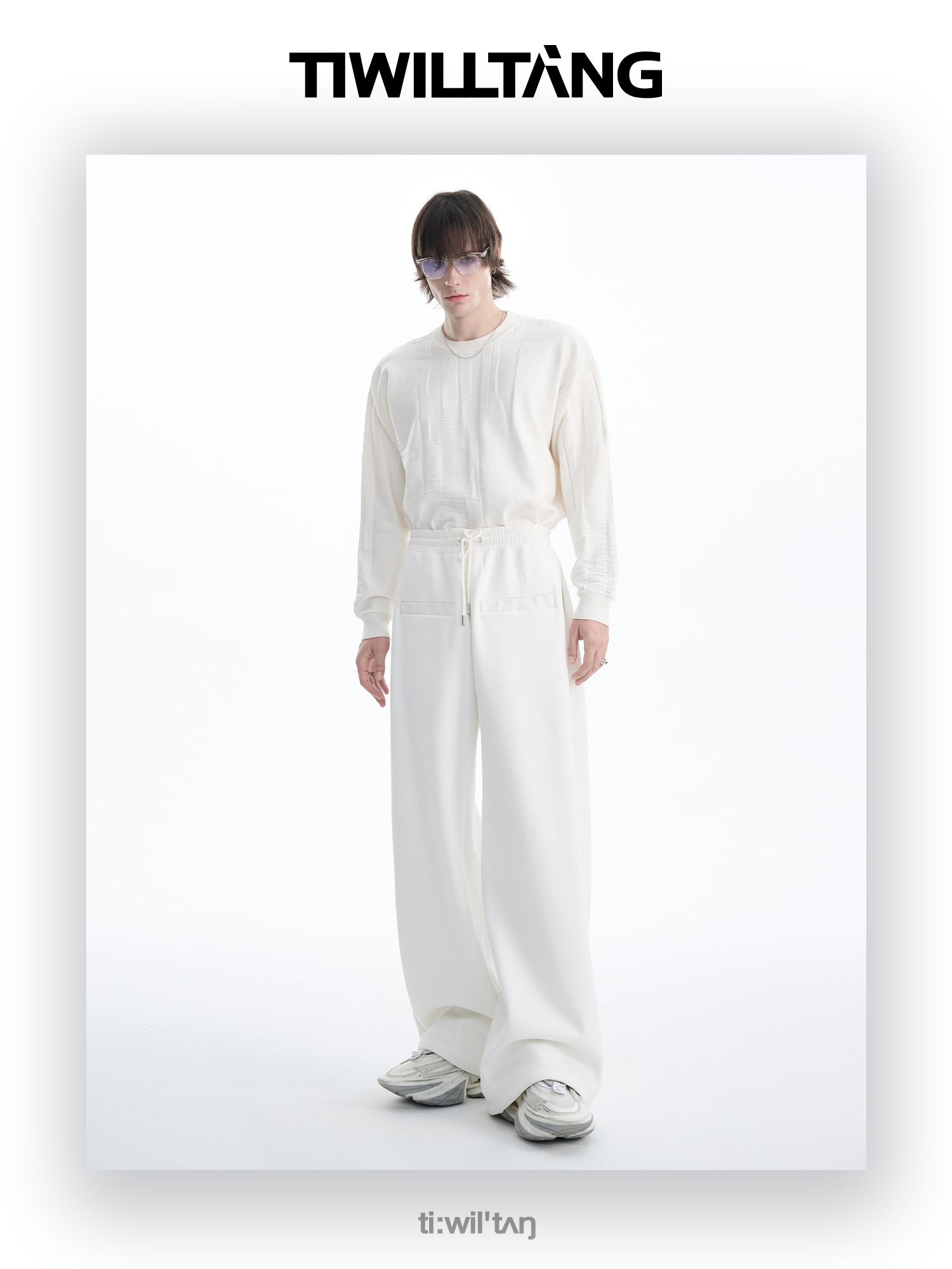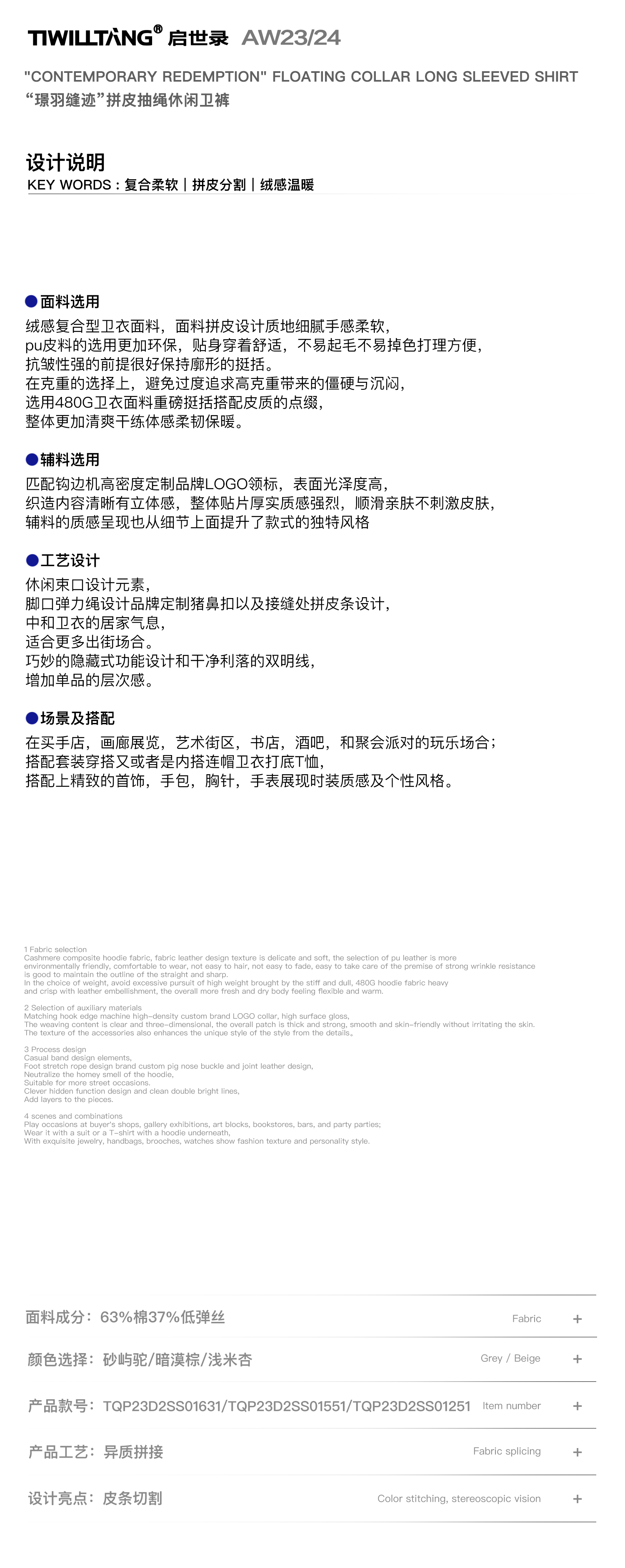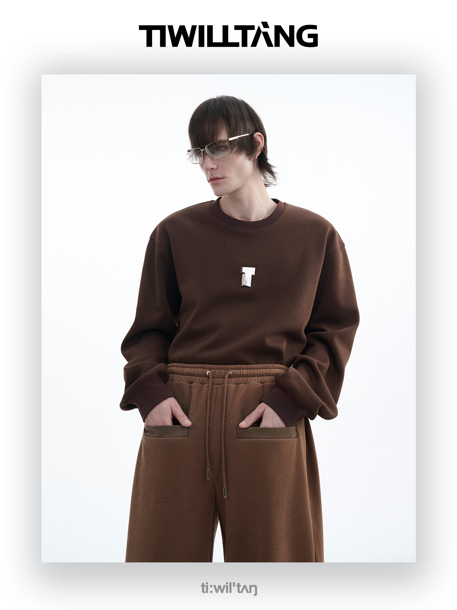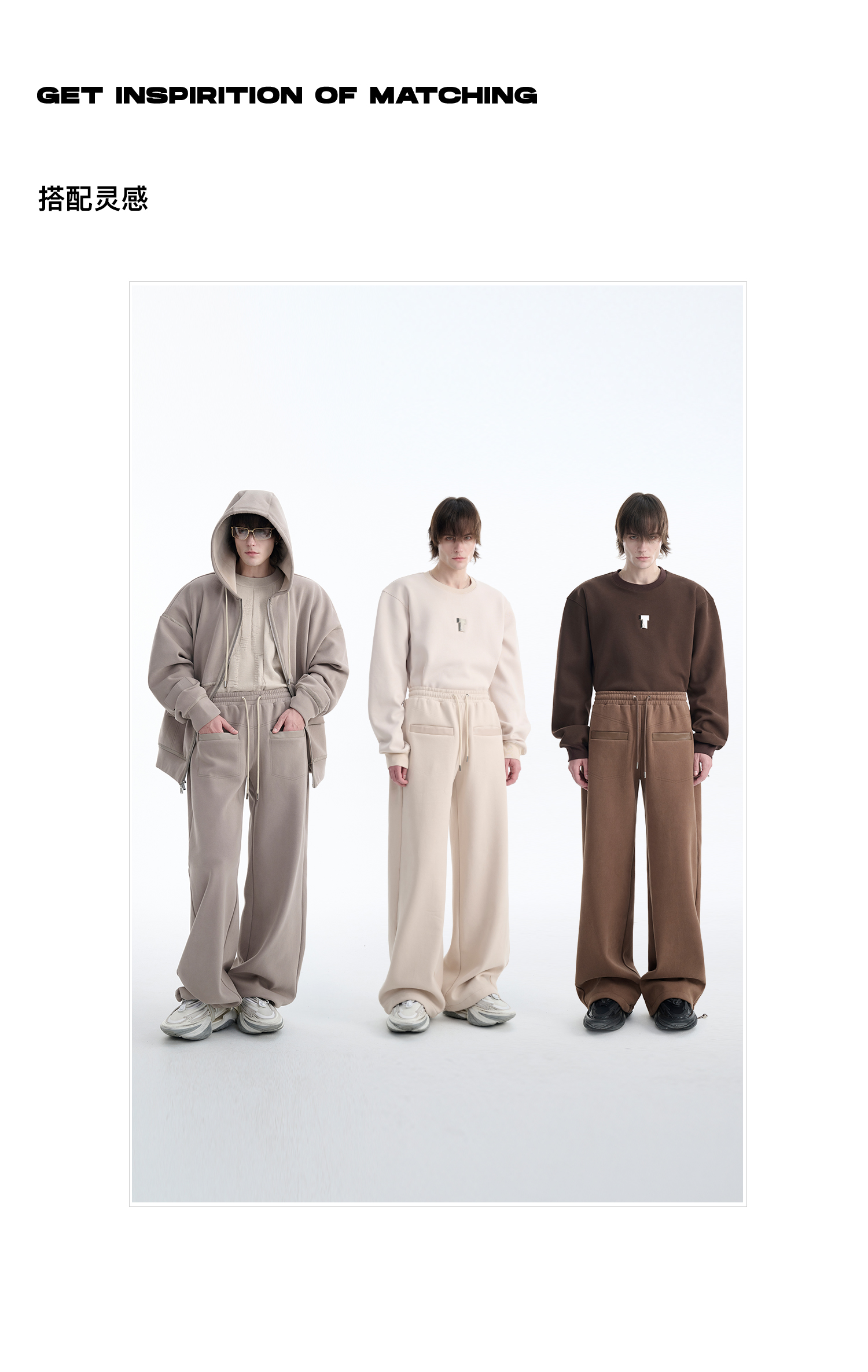 TIWILLTANG启世录“炽奕颂誉”宝藏加绒加厚拼皮抽绳休闲慵懒卫裤