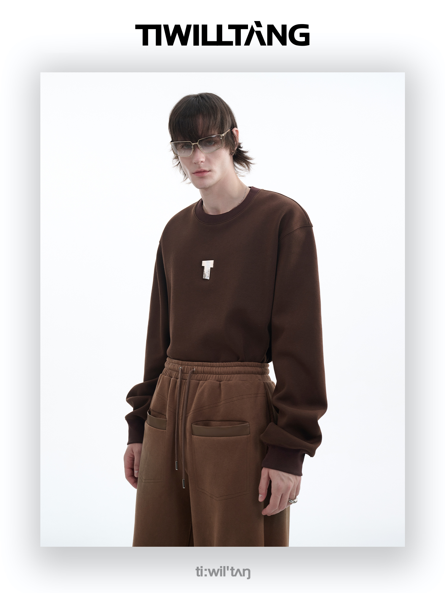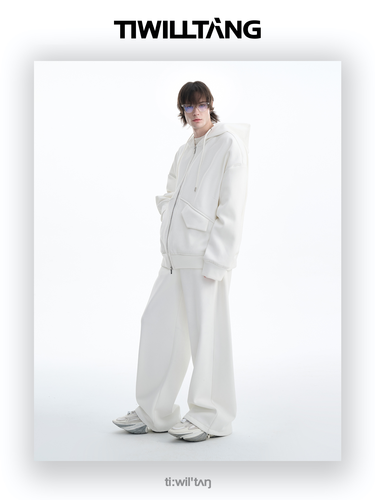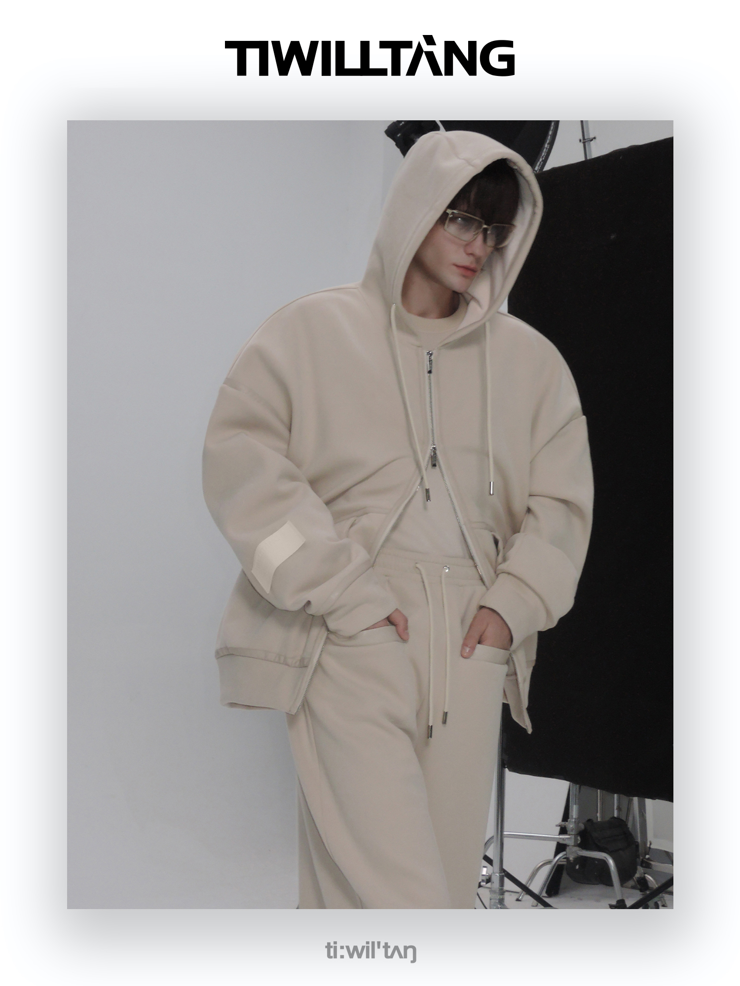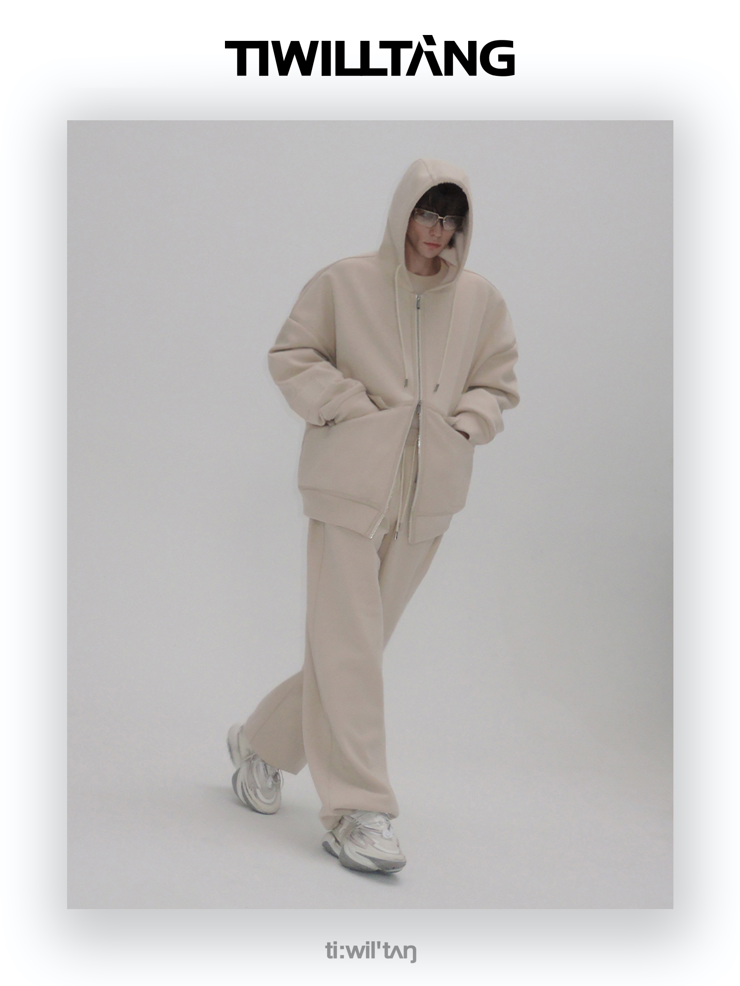 TIWILLTANG启世录“炽奕颂誉”宝藏加绒加厚拼皮抽绳休闲慵懒卫裤