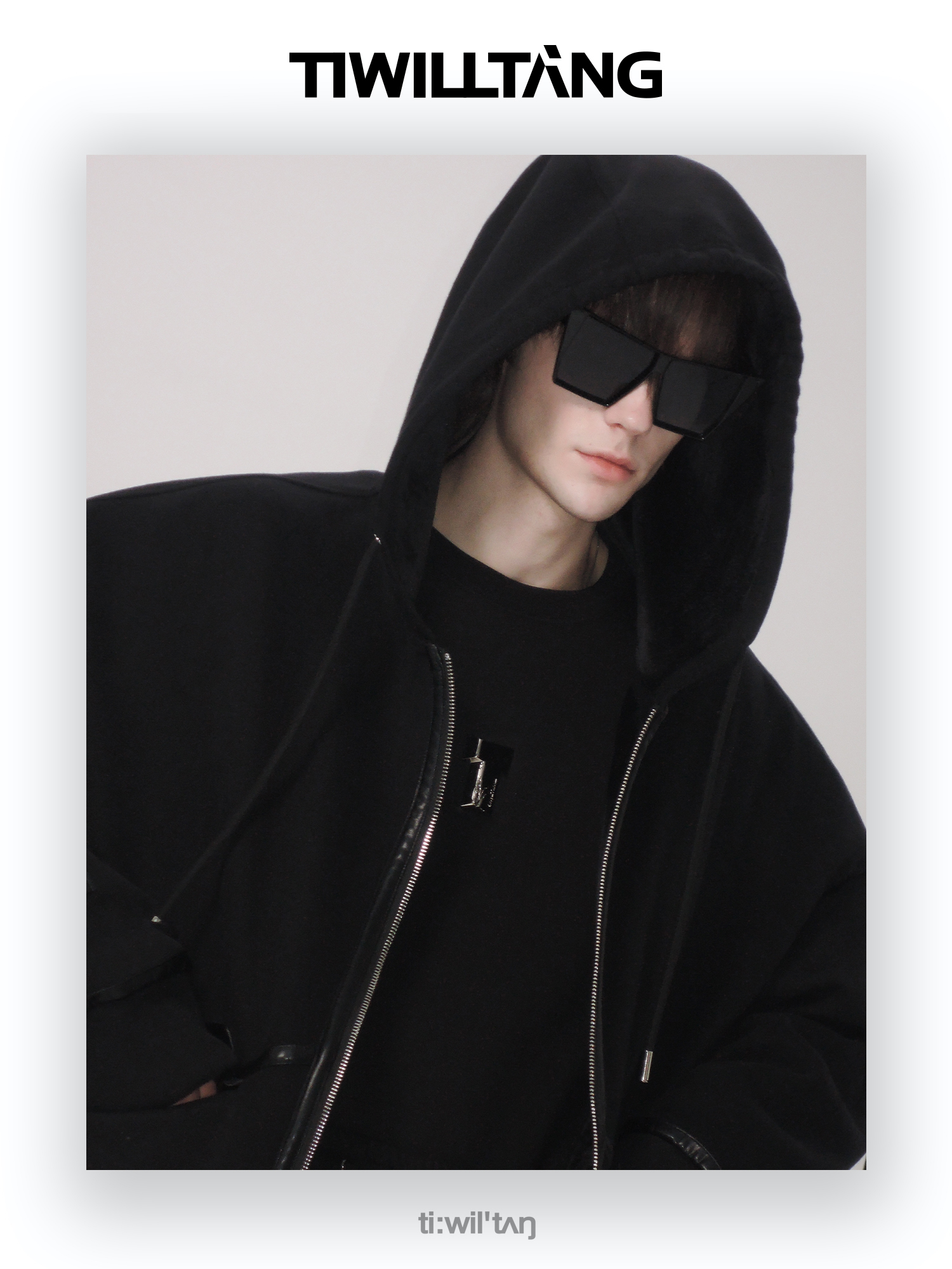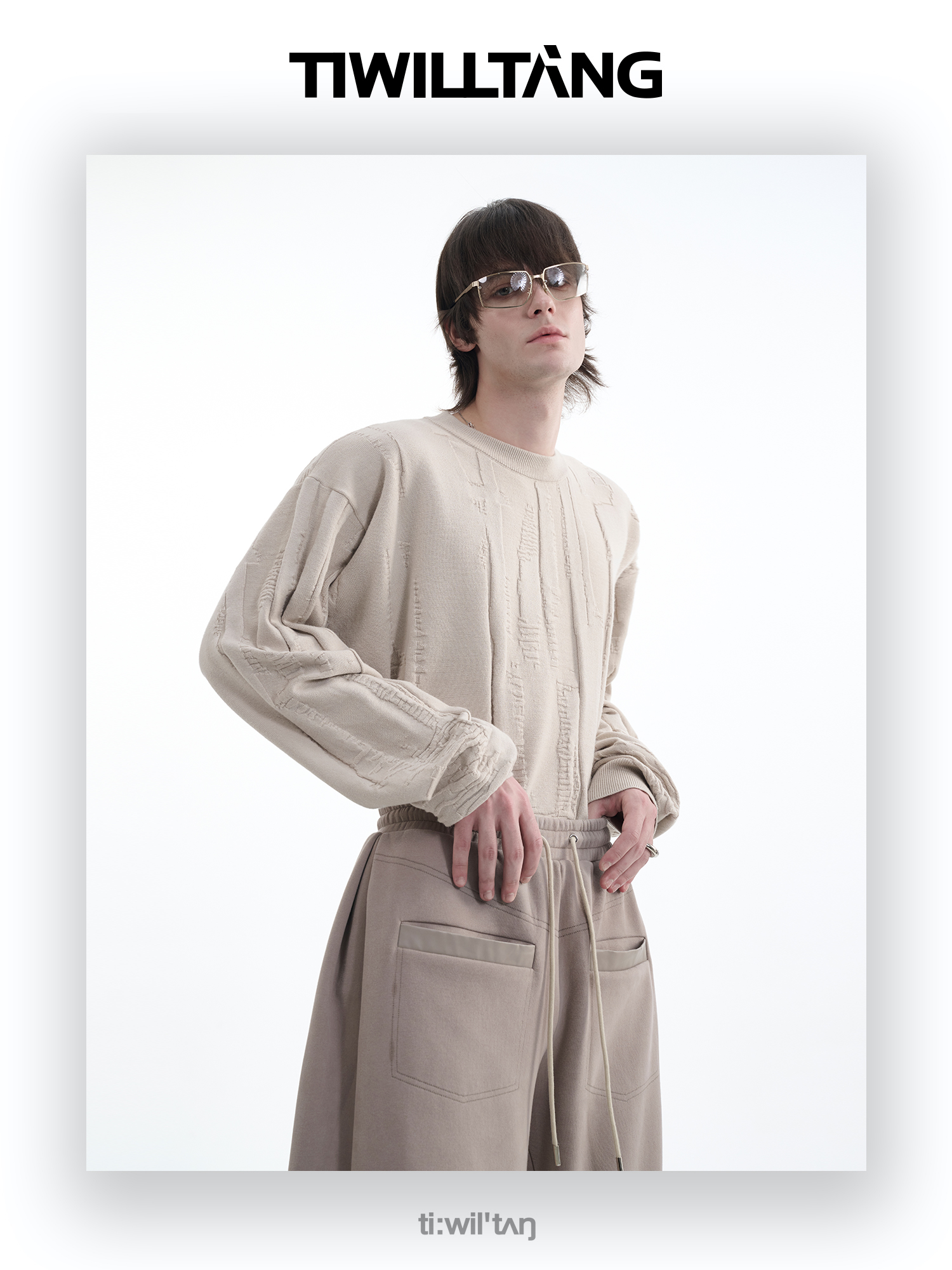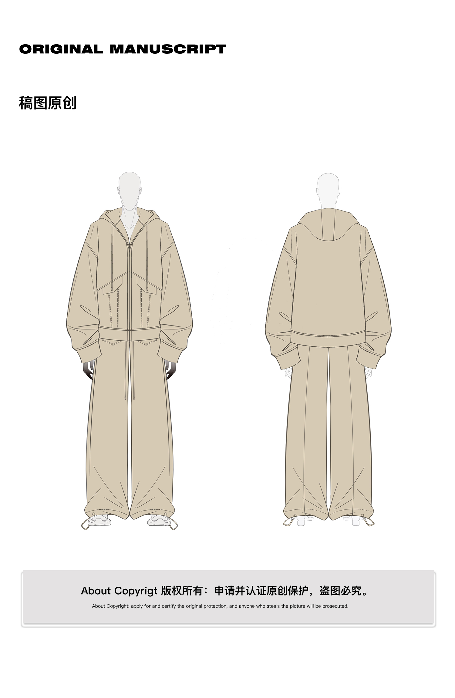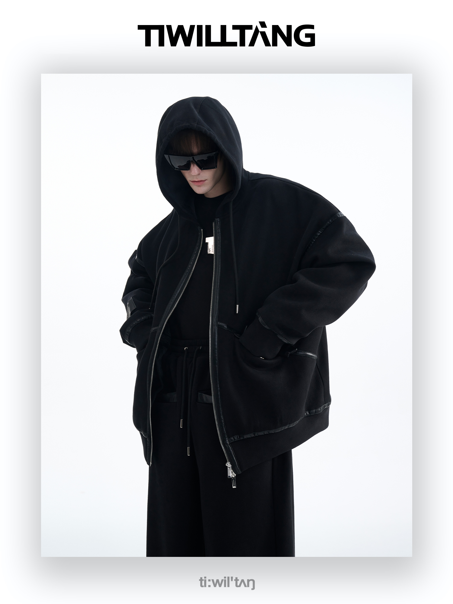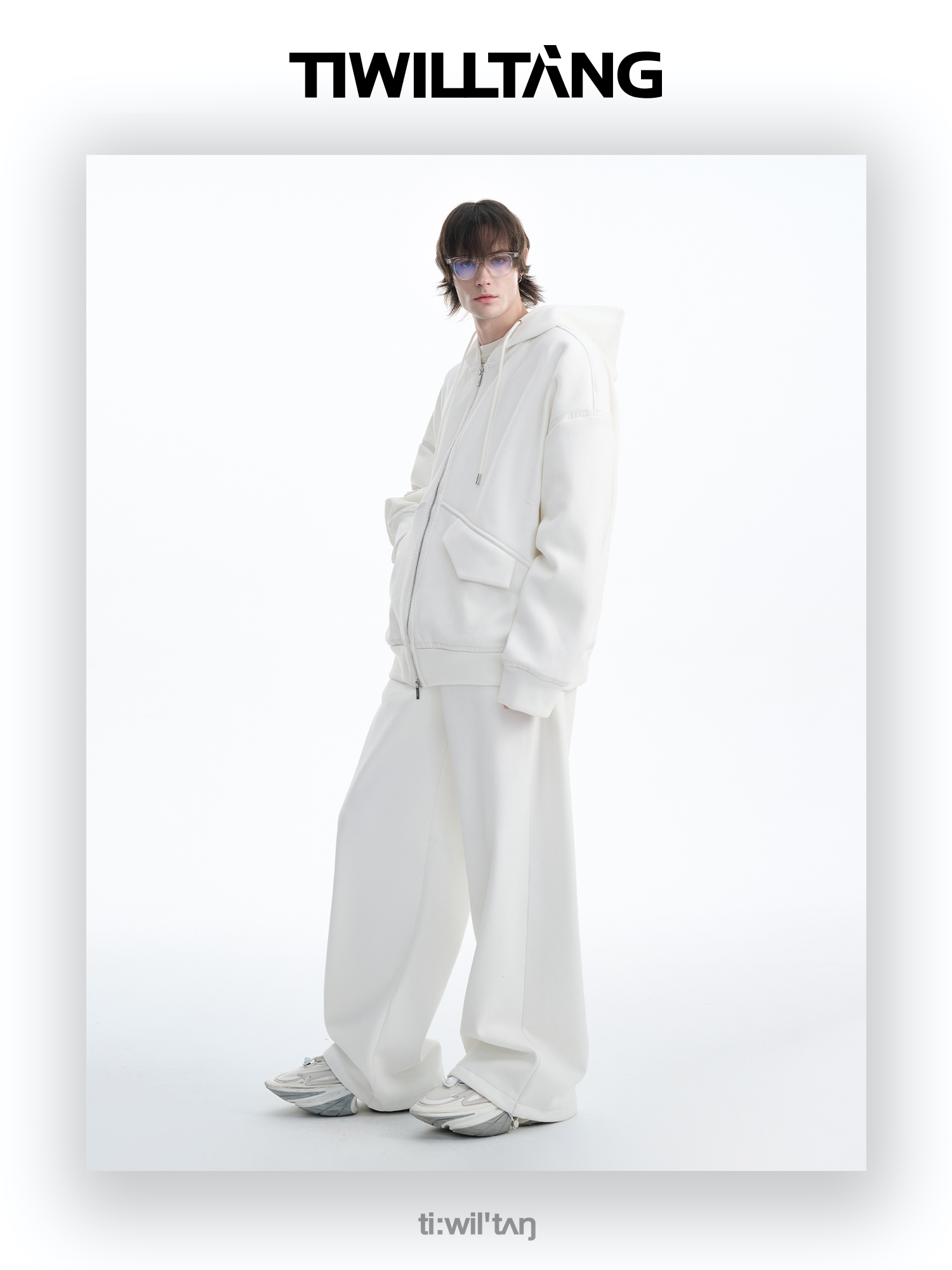 TIWILLTANG启世录“炽奕颂誉”宝藏加绒加厚拼皮抽绳休闲慵懒卫裤