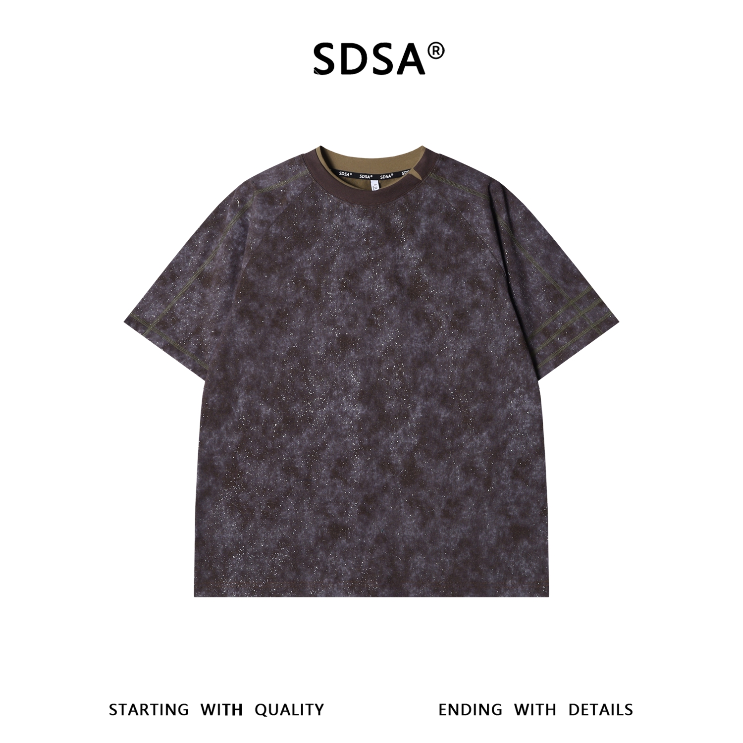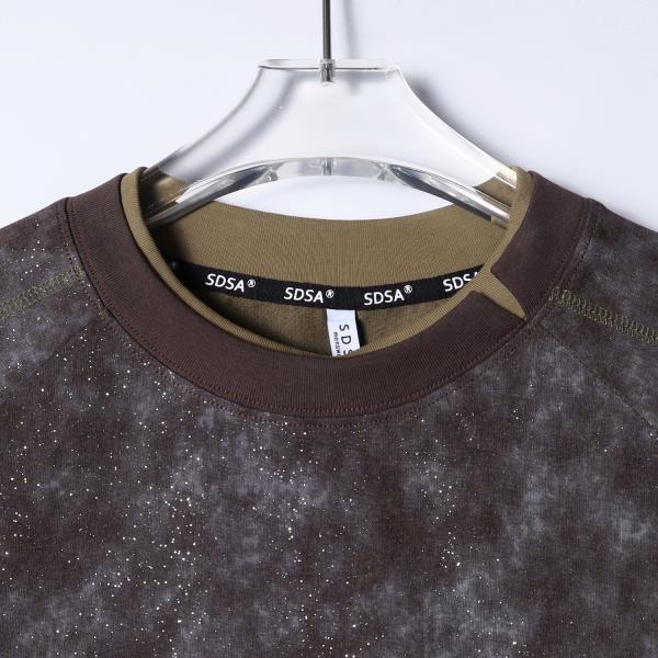 SDSA男装2026新款轻奢个性百搭扎染满天星领口拼接圆领短袖T恤